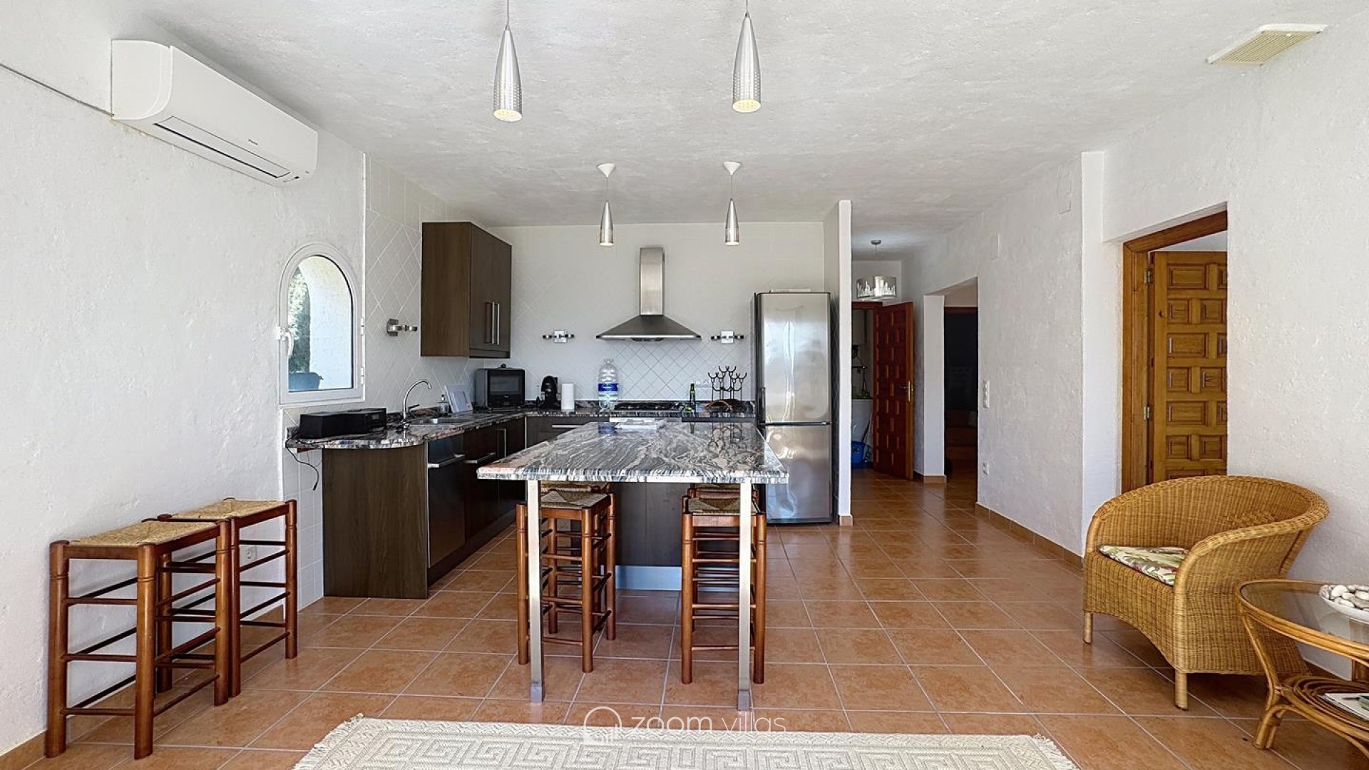 Villa with stunning views of the sea and the majestic cliffs of Cumbre del Sol, located in the coveted Fresnos residential area, within the exclusive Cumbre del Sol development, between Jávea and Moraira, in the charming municipality of Benitachell. This magnificent property has a total constructed area of 210 m², distributed in 168 m² of living space, 34 m² of open terrace and 8 m² of covered terrace. In addition, it has a private parking space of approximately 24 m² and a large outdoor terrace area of about 30 m² at the entrance of the villa, ideal for enjoying the Mediterranean climate all year round. The villa is distributed over two floors and offers a total of four double bedrooms, two full bathrooms, a bright and spacious living-dining room with an open plan kitchen, a second separate living-dining room, a storage room and several terraces from which you can enjoy stunning panoramic sea views. Among its amenities, the property has recently installed hot/cold air conditioning in almost all rooms, as well as a cosy fireplace in the main living room, making it an ideal home for both summer and the cooler months. And to complete this irresistible proposal, a spectacular lagoon-style community pool is located a short distance away, perfect for relaxing and enjoying the privileged surroundings. Are you looking for a property with character, unique views and an unbeatable location on the Costa Blanca? Contact us today and discover everything this villa has to offer. At Cumbre del Sol Pre-Owned, we are here to help you find the property of your dreams. Welcome to Fresnos, an exclusive residential area located in the heart of the prestigious Cumbre del Sol residential development, in Benitachell (Alicante). This charming villa development forms part of the peaceful Pueblo de la Paz enclave, and offers a serene environment, perfect for enjoying the Mediterranean lifestyle at its best. Most of the homes in Fresnos have a south or southeast orientation, which guarantees excellent natural light throughout the day and, in many of them, the possibility of contemplating spectacular views of the sea and the cliffs of the Costa Blanca. The communal areas of the Fresnos residential complex are designed for relaxation and well-being: a spectacular lagoon-style swimming pool, spacious terraces for sunbathing, a cosy social club and lush Mediterranean gardens that invite you to disconnect and enjoy the outdoors. In addition, Fresnos is just a few minutes from the Granadella Natural Park, a natural gem perfect for hiking and nature lovers. Also nearby is a complete sports area, with paddle tennis and tennis courts and a beach bar, ideal for combining physical activity with moments of leisure and relaxation. As for services, everything you need is within easy reach: Less than 500 metres away, you will find the Adelfas Shopping Centre, with the Pepe la Sal supermarket, a maintenance and rental services agency, a café, a spa with massage parlour, the well-known La Cumbre Restaurant, a pharmacy and a medical centre. Just 1 to 2 kilometres away, you can access Moraig beach and Cala de los Tiestos, as well as the renowned Lady Elizabeth School and an equestrian centre for horse riding enthusiasts. 4 to 6 kilometres away, you will find supermarkets such as Mercadona and Mas y Mas, which will cover all your day-to-day needs. And if you are looking for wider and more lively beaches, just 9 to 12 kilometres away are the beautiful beaches of Arenal de Jávea, Moraira and El Portet, ideal for spending the day with the family, practising water sports or simply relaxing in the sun. Living in Fresnos is synonymous with quality of life, tranquillity and proximity to all services. Don't miss the opportunity to discover this unique enclave on the Costa Blanca. Contact us today and let us help you find your ideal home in the Fresnos residential area of Cumbre del Sol. Your new life by the sea is waiting for you!