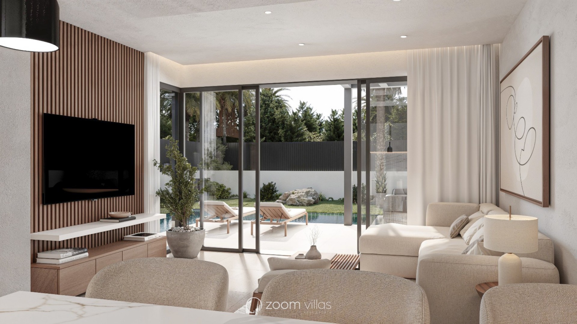 A garden is optional and not included in the standard price, offering flexibility for those who want to design their own outdoor space. However, each villa has several terraces, pergolas and a paved parking area.