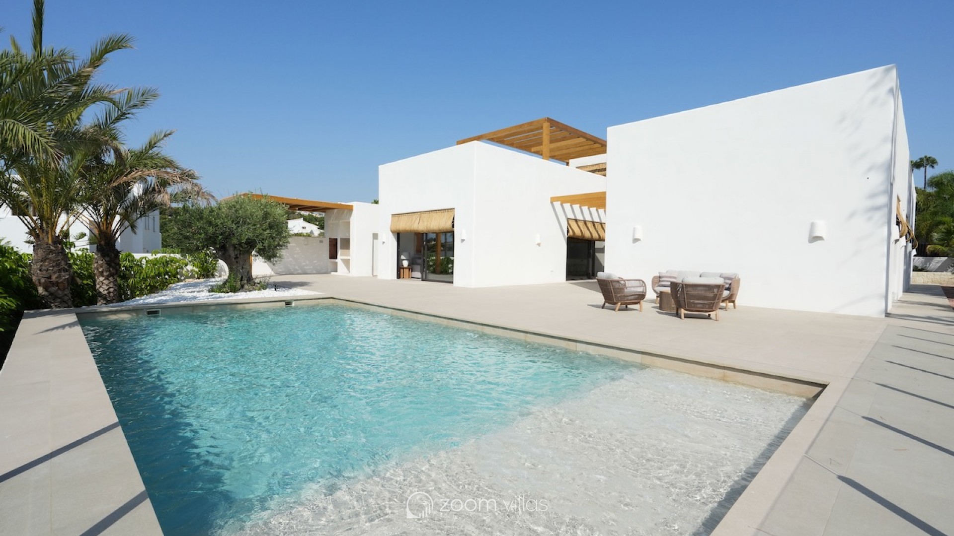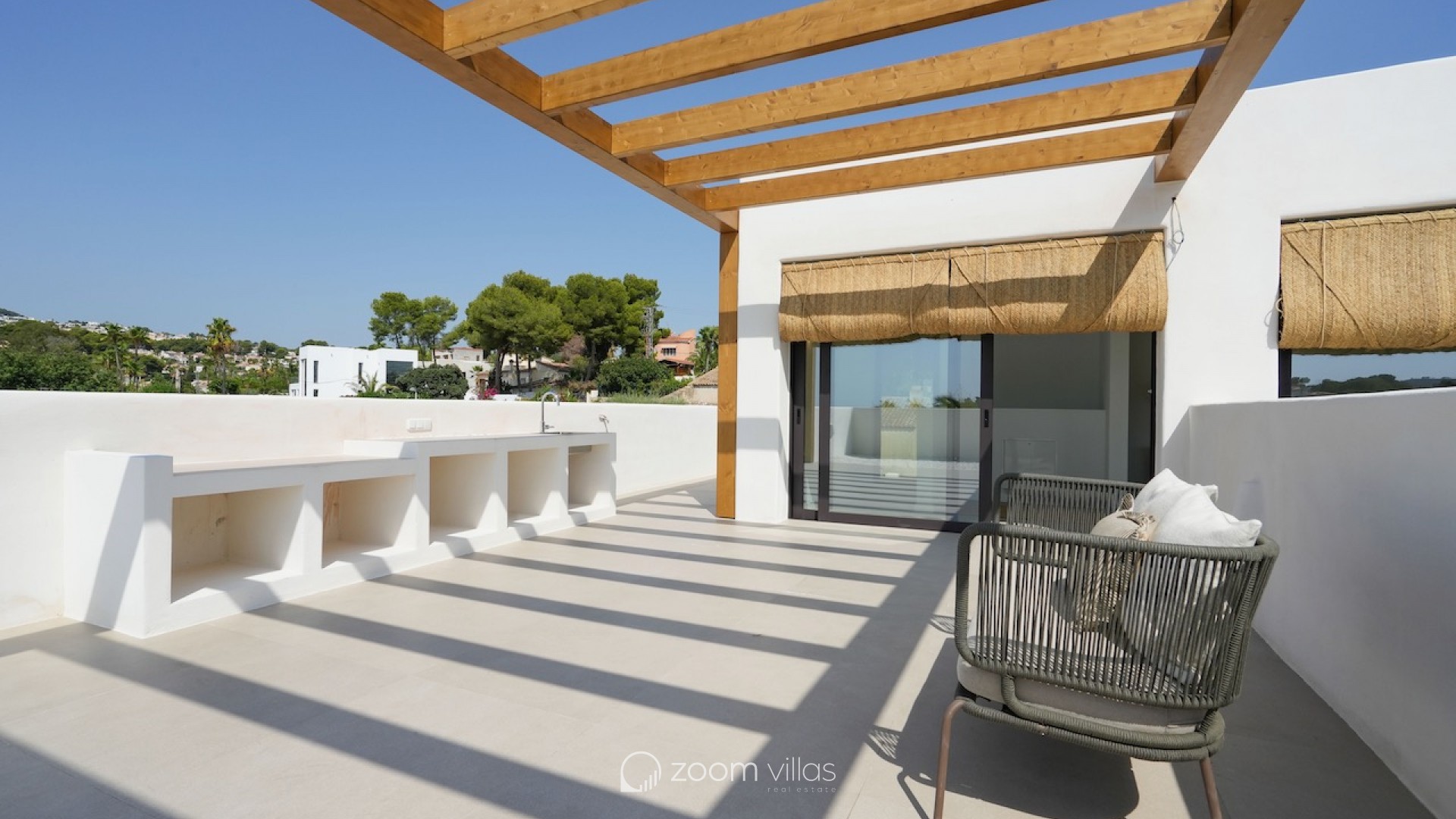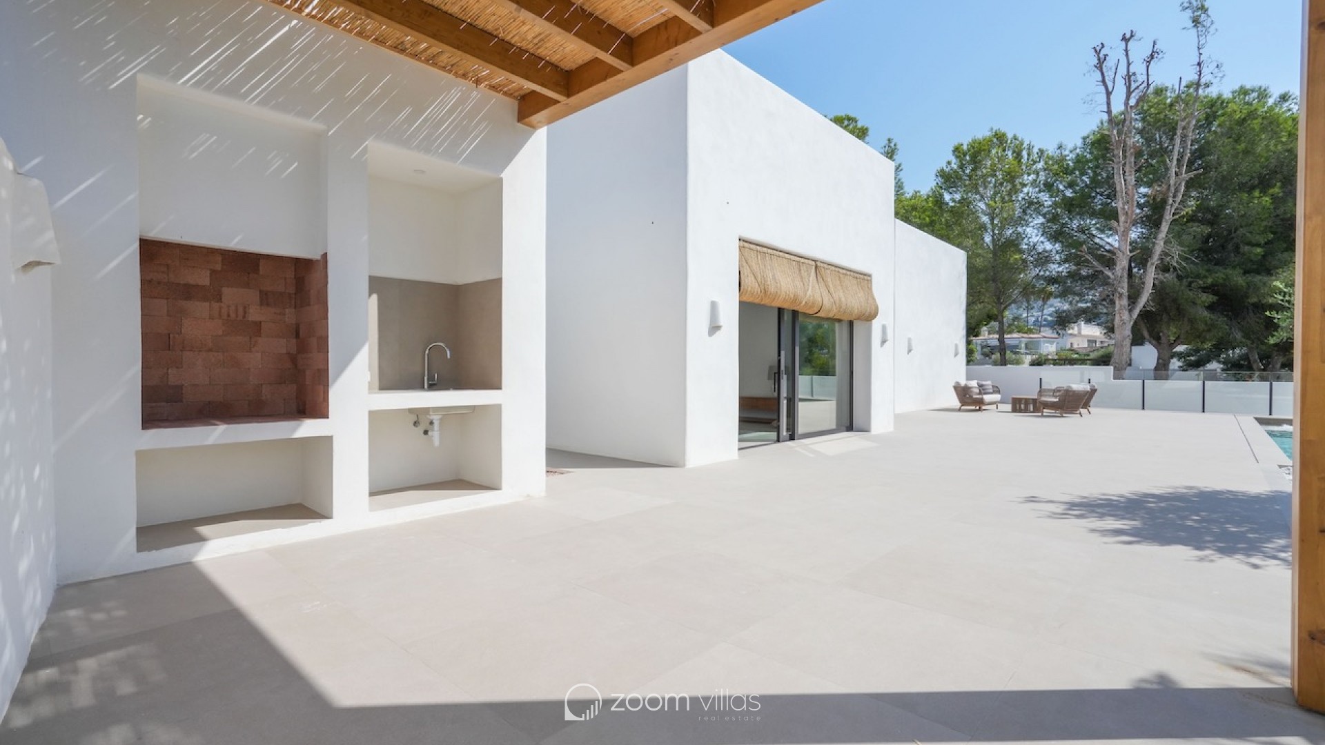 MORAIRA - New build villa for sale in the sought after area of Solpark Moraira! This beautiful Ibiza style villa in Moraira will be finished in February 2025. Enjoy the very latest comfort and feel free to stroll quietly to the village in less than half an hour! Also a pharmacy, bakery, tennis / padel courts and a restaurant are nearby on a 5 minute walk.