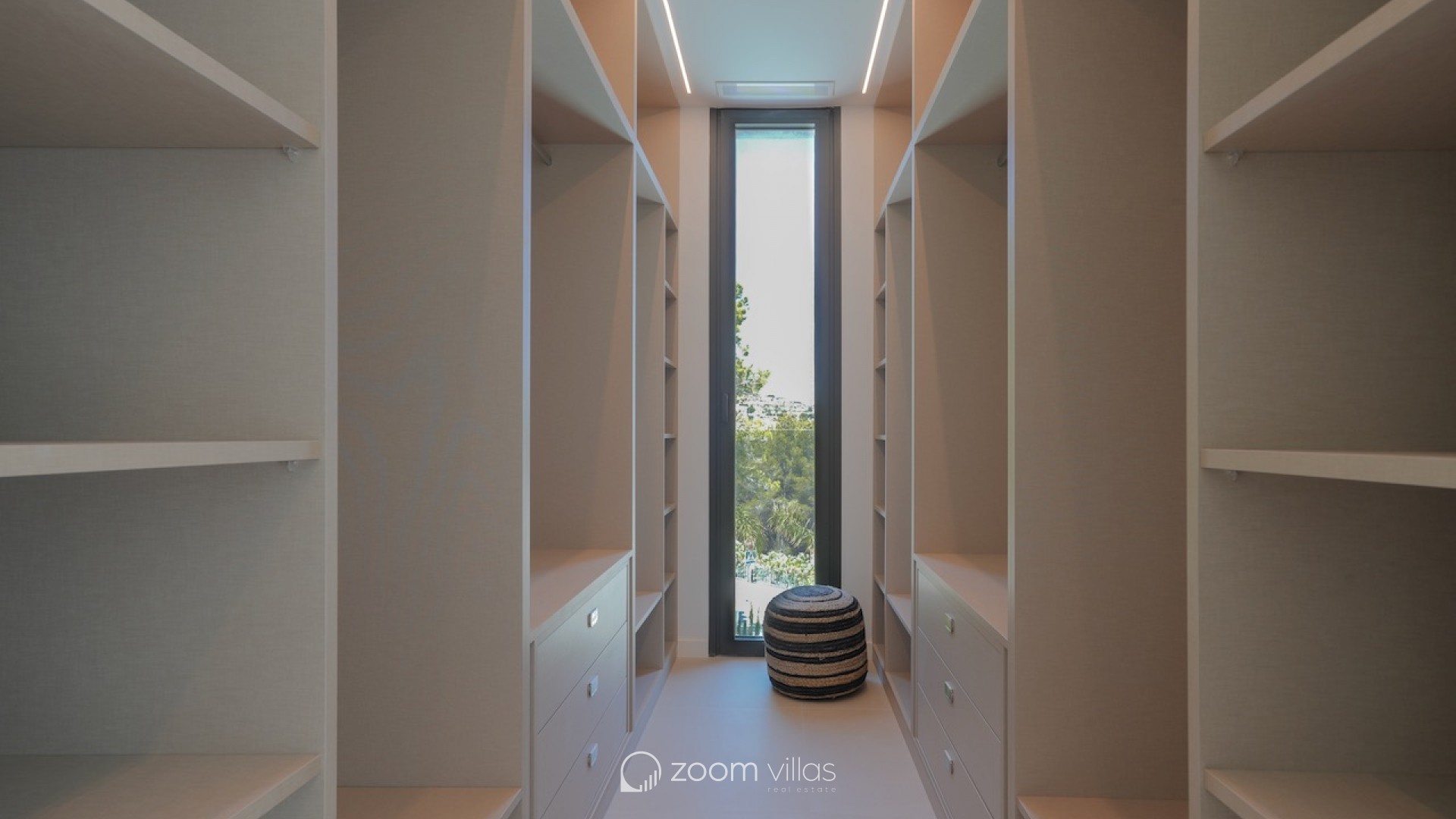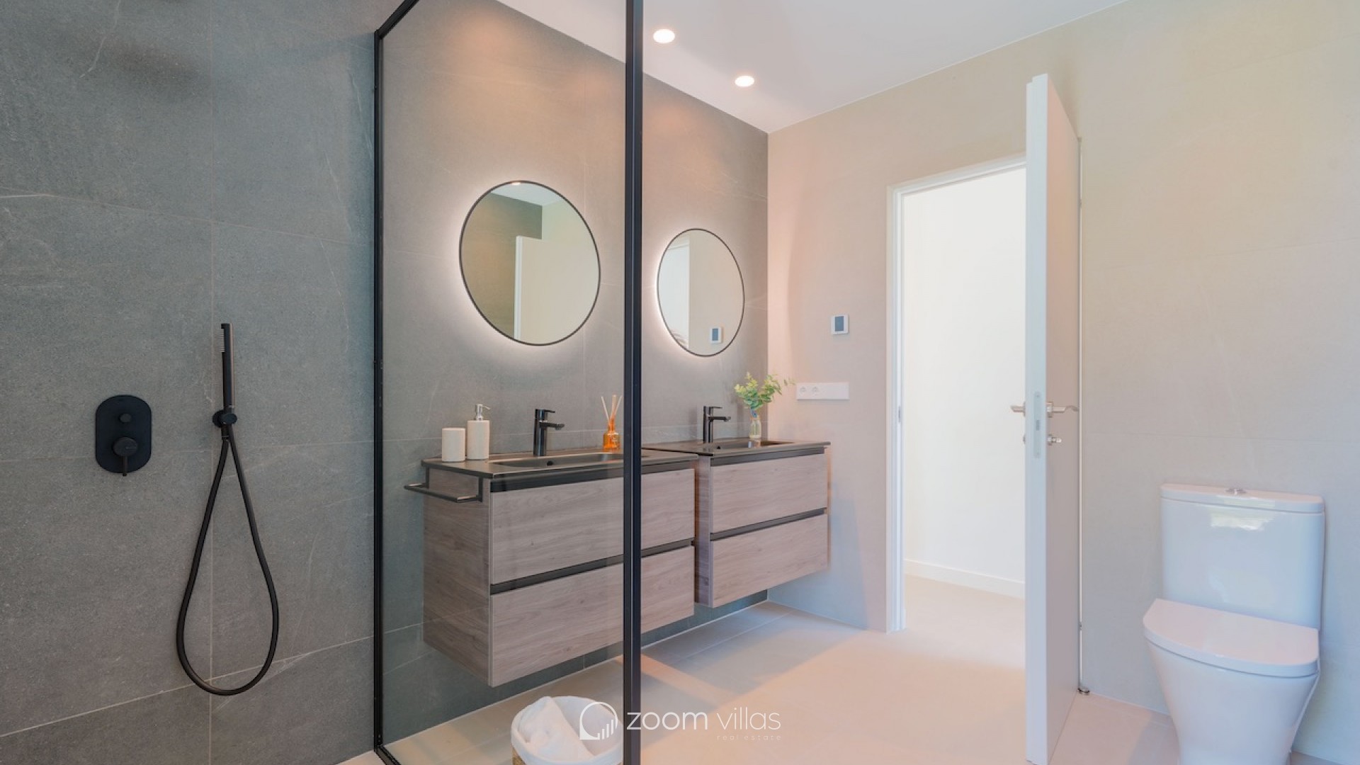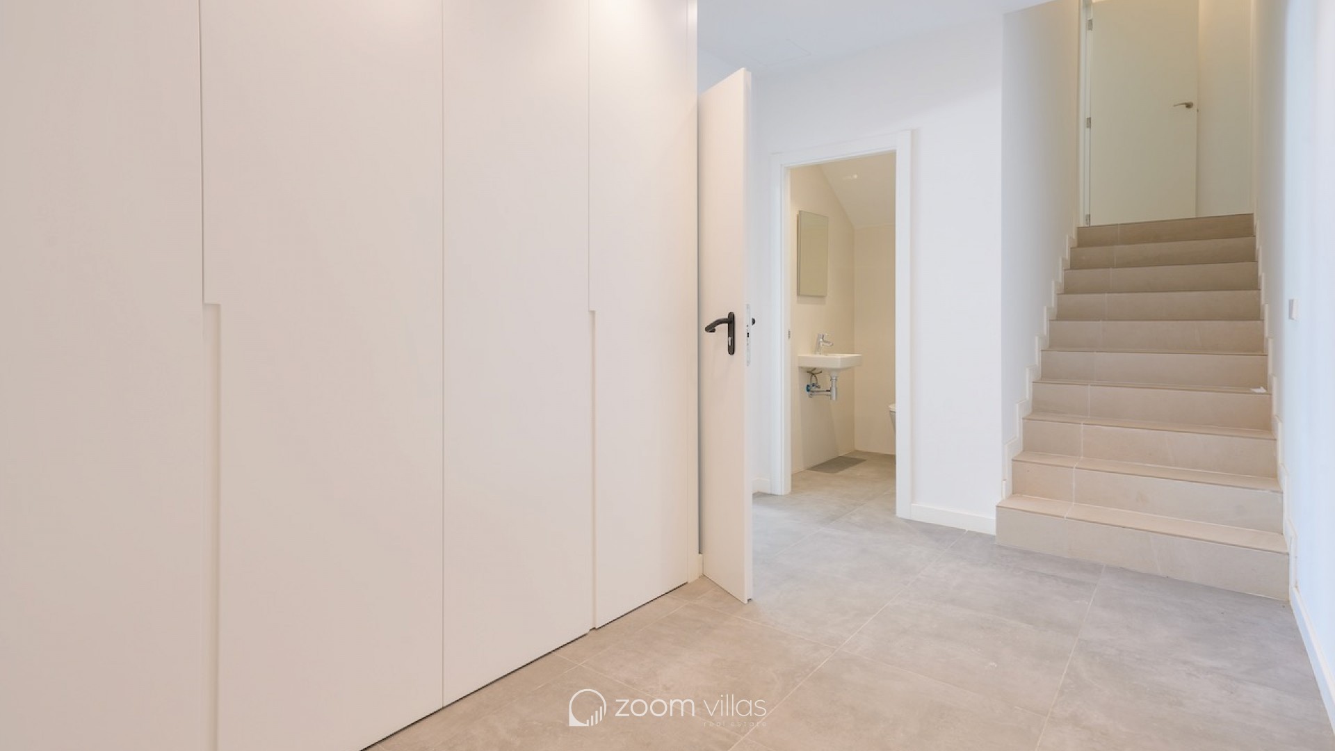 Enter this magnificent villa through the double garage! On this level you will also find a gym, laundry room and storage room. Take the stairs upstairs and enjoy a beautiful fully equipped kitchen that gives out to the living-dining room. On this floor we also find 1 spacious bedroom with ensuite bathroom and a separate guest toilet-bathroom. Step outside and enjoy a beautiful garden, private pool and covered outdoor kitchen. Back inside, we take the spacious staircase to the top level where we find 3 more bedrooms and 2 bathrooms. The master bedroom has a large walk-in wardrobe and an ensuite bathroom. A shared terrace for the three upstairs bedrooms cannot be missed!