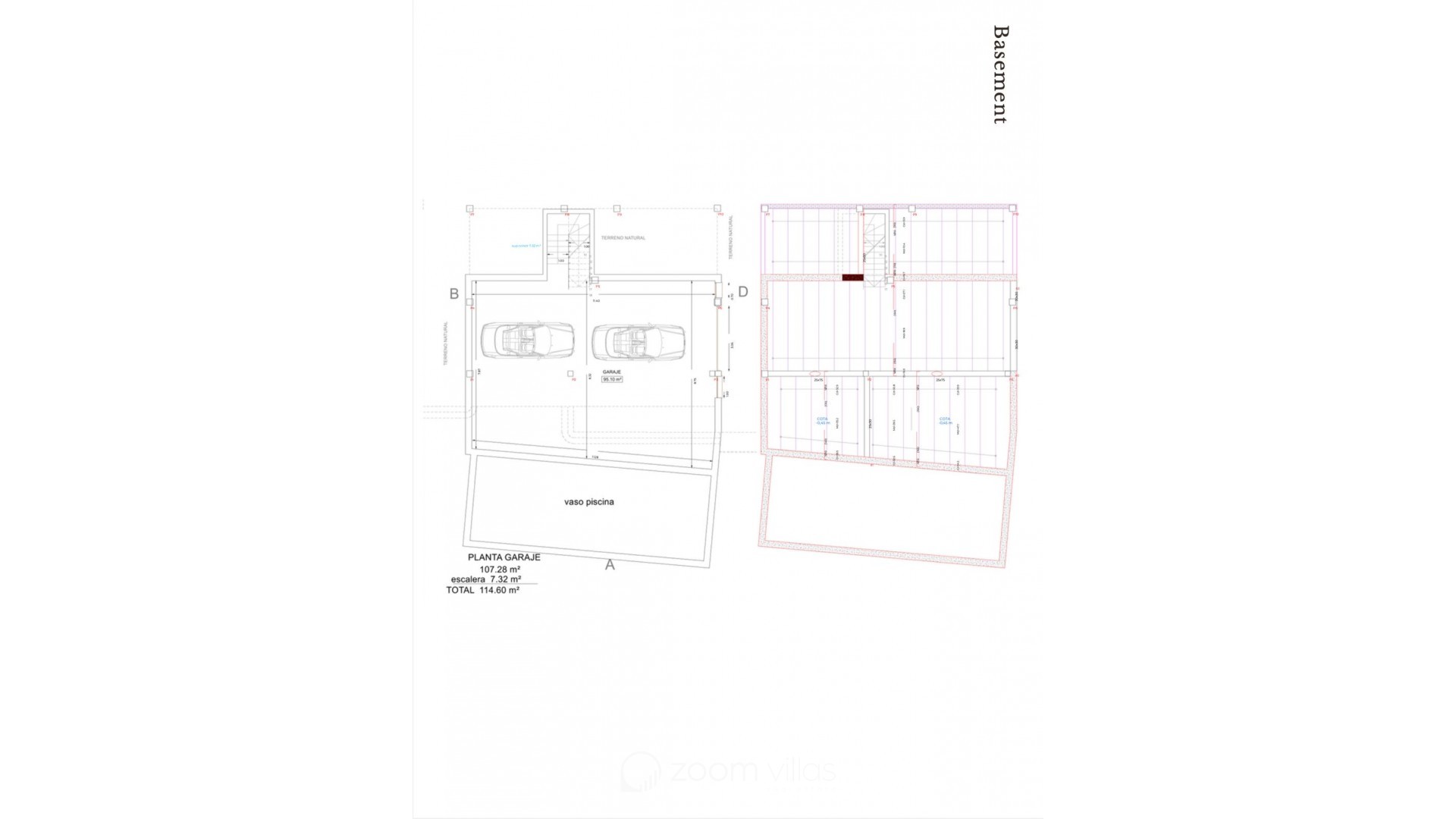 The villa is spread over two floors and has another very spacious garage in the basement.