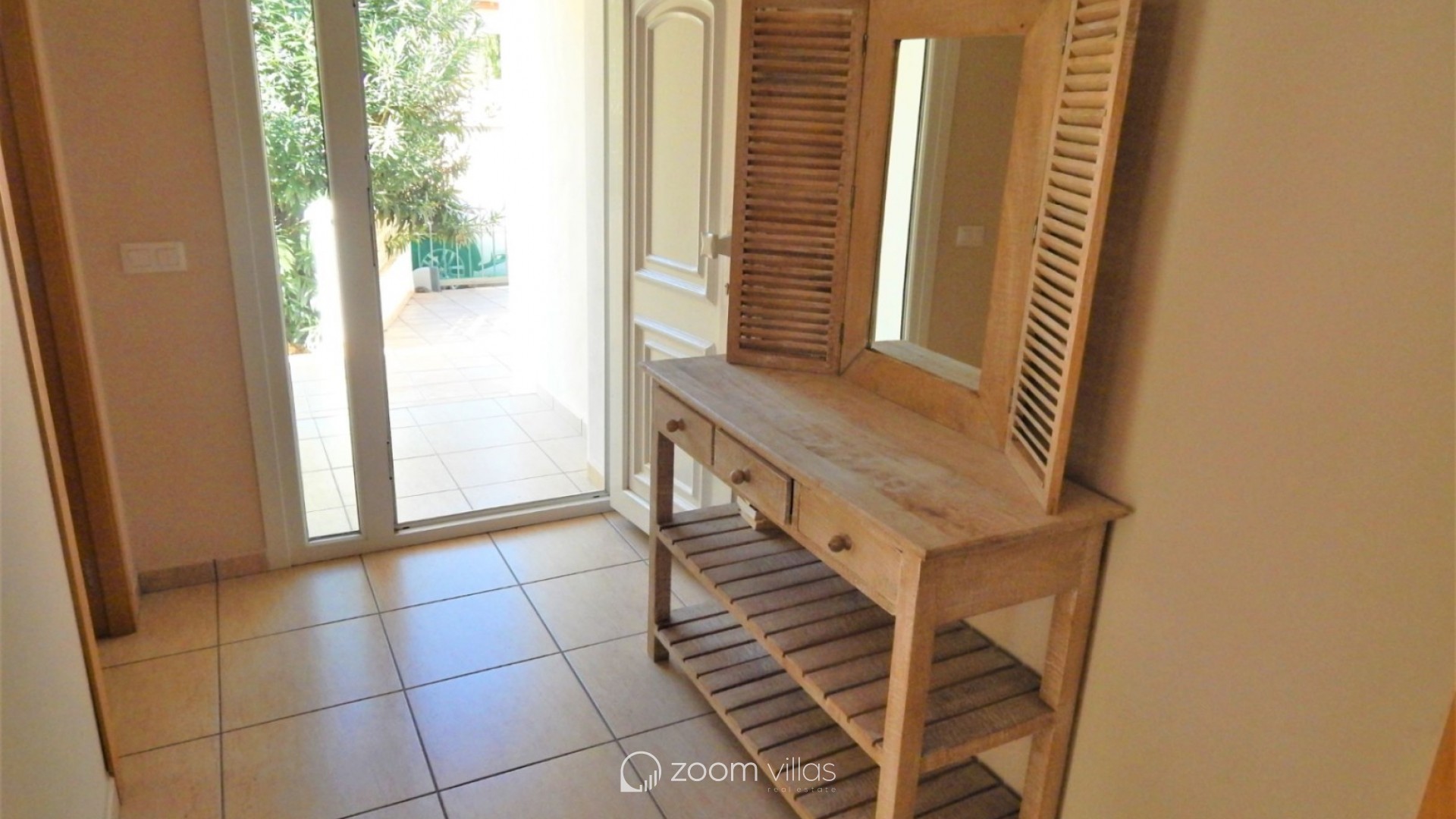 The interior of the villa is equipped with all modern comforts: air conditioning hot/cold, underfloor heating, a fully equipped kitchen and security systems such as alarm, security door and double glazing.