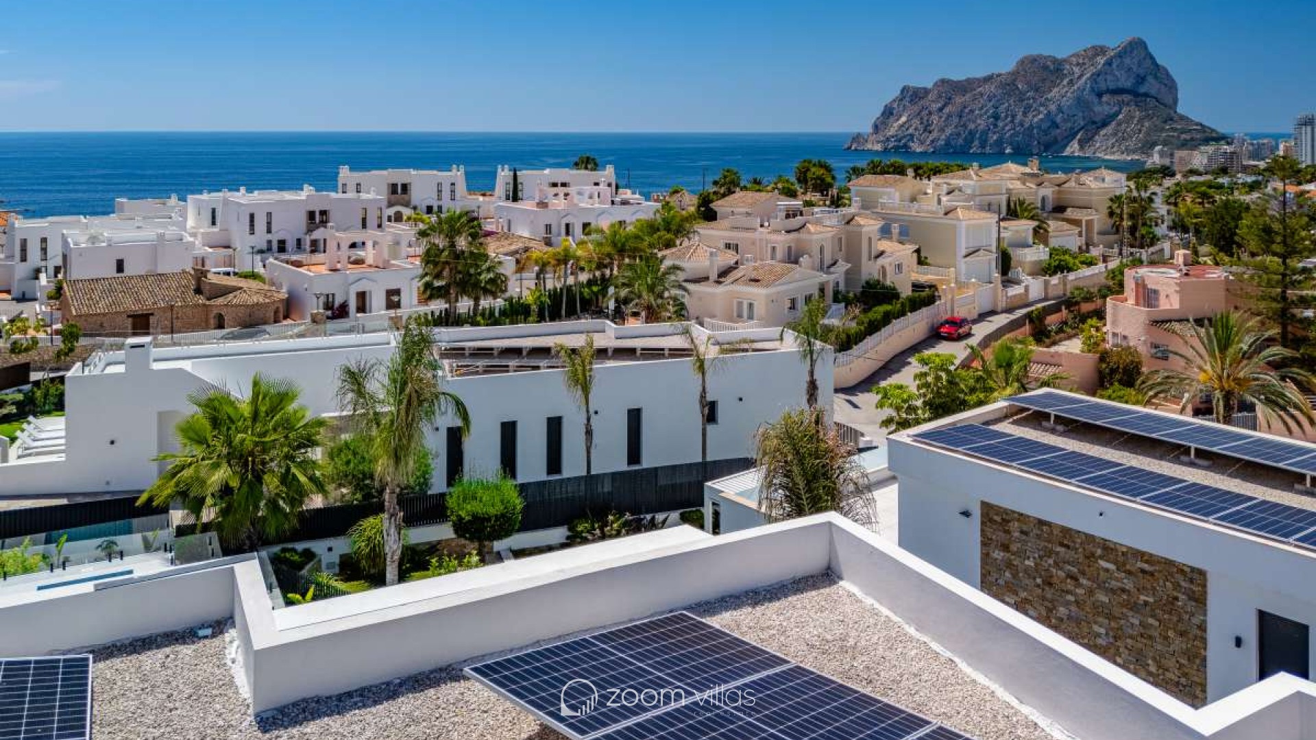 CALPE - Villa for sale in Calpe, Alicante - Spain. This impressive villa in Calpe, with 4 bedrooms is built on a single floor. Its innovative design orients all main rooms southeast, ensuring exceptional light and a constant connection with the idyllic landscape, without losing the authentic Ibizan essence. Enjoy every setting year-round, adapting to your needs.