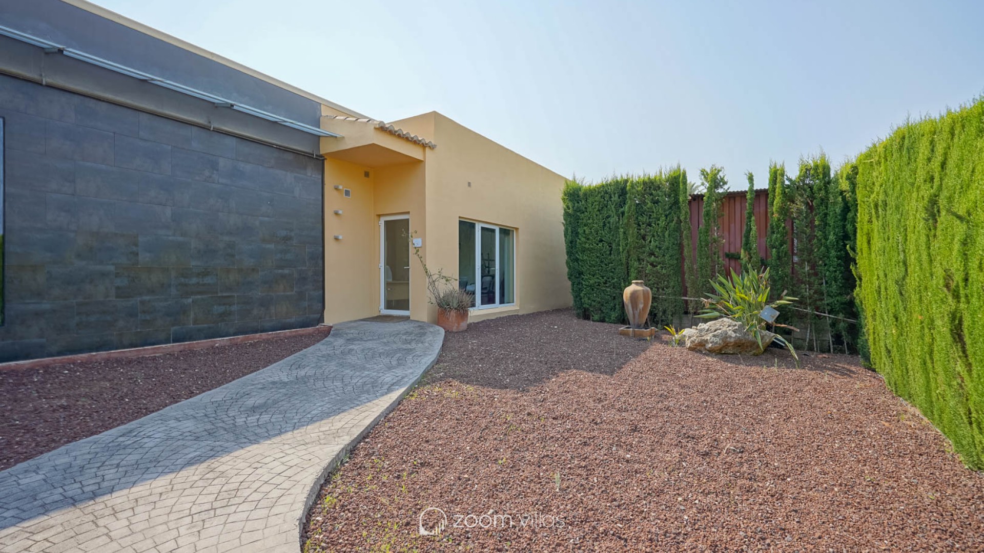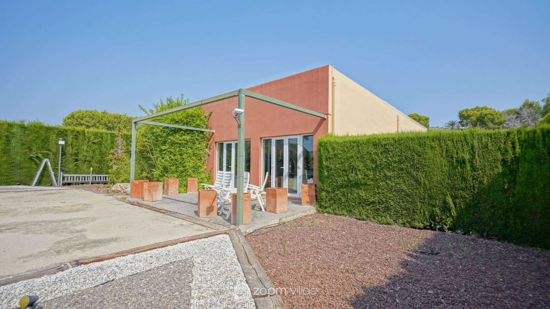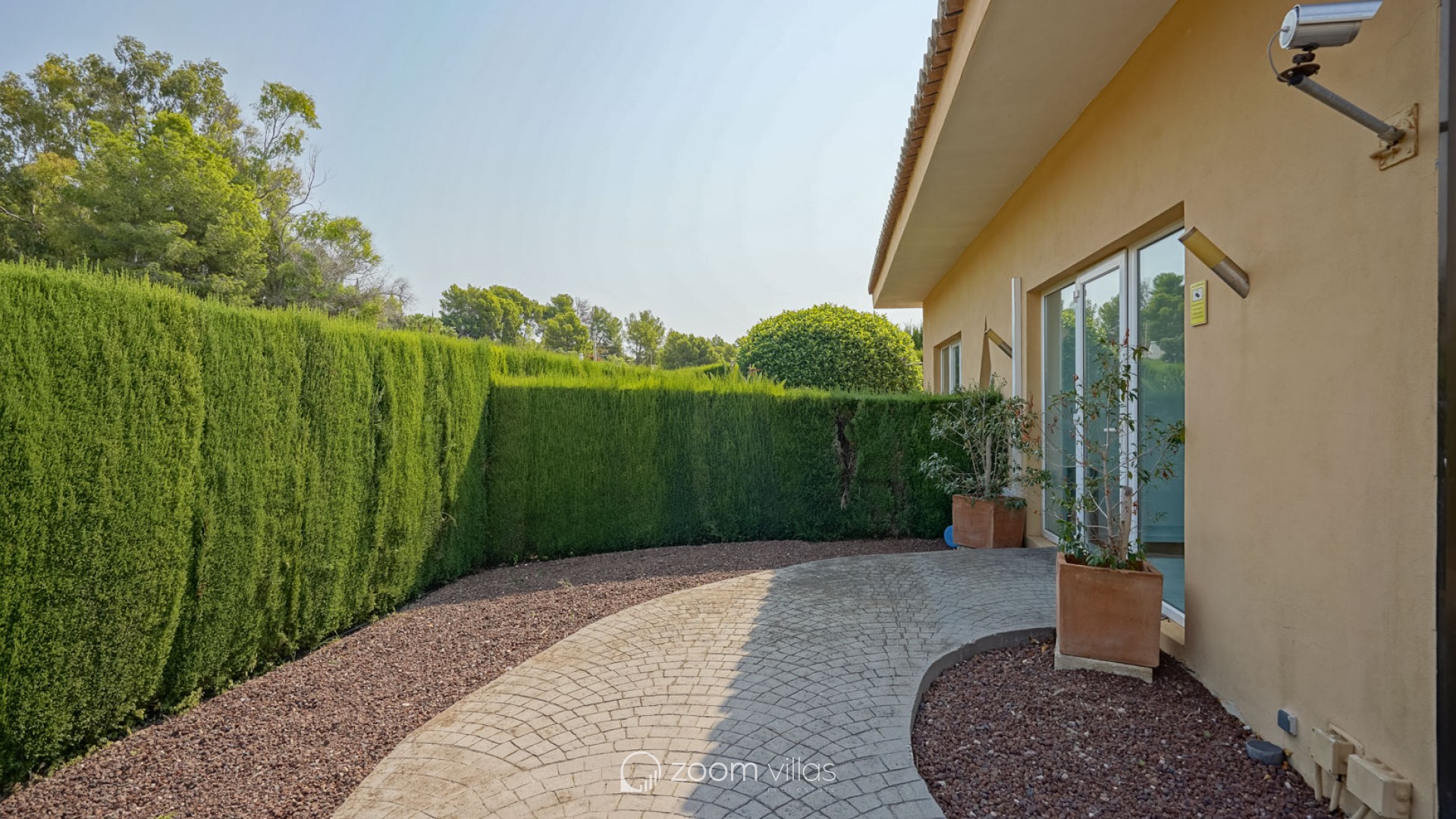 Outside, you will find a spacious south-facing terrace that invites you to relax in the sun, while the north side of the plot offers a beautiful view of the Montgó. The garden surrounding the property and the multiple private parking spaces complete the picture.