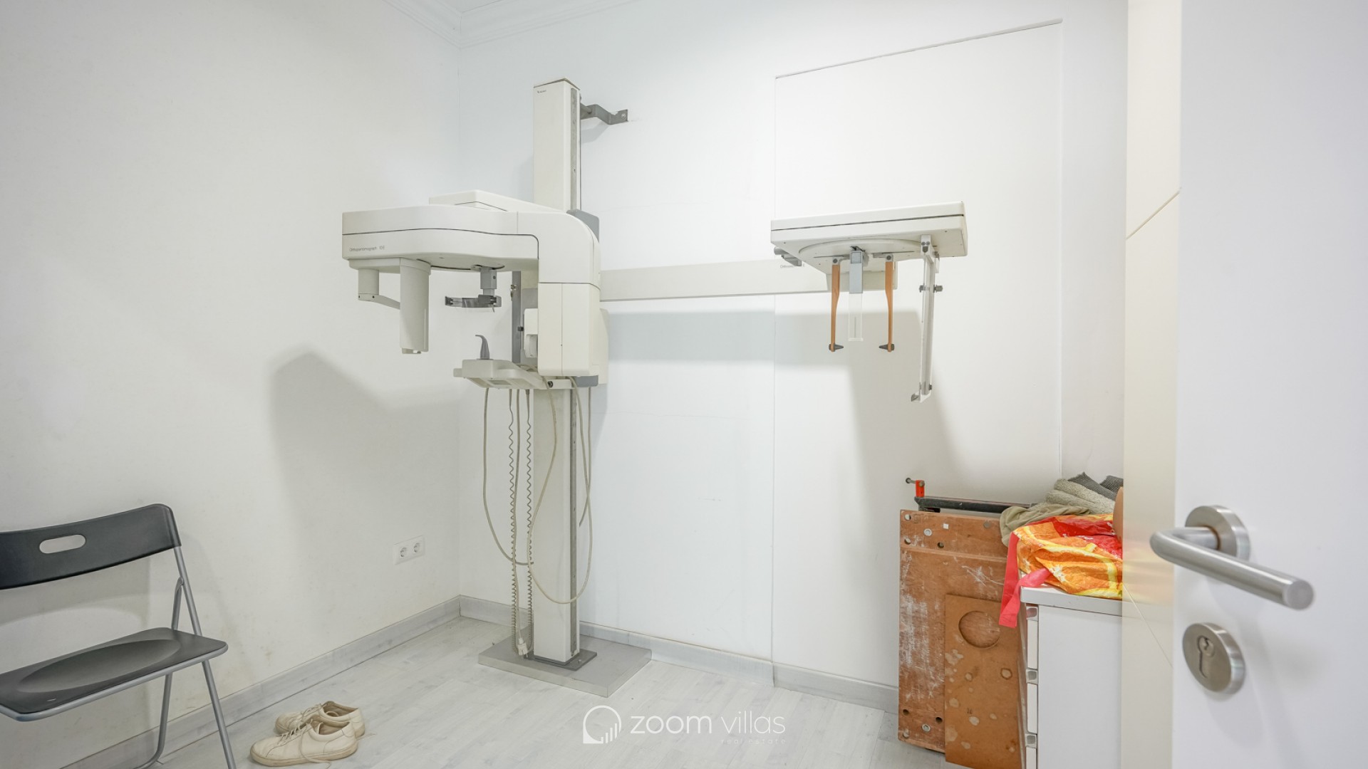 The current layout includes a reception area, a waiting room, three treatment rooms, a radiology room, a toilet, two changing rooms, each with a full bathroom, and two storage rooms. The absolute heart of the property is the very large rehabilitation room: thanks to the high ceiling and numerous windows, this room has an exceptional feeling of space and light. This space is perfect for conversion into a spacious living room with direct access to the outdoor terrace.