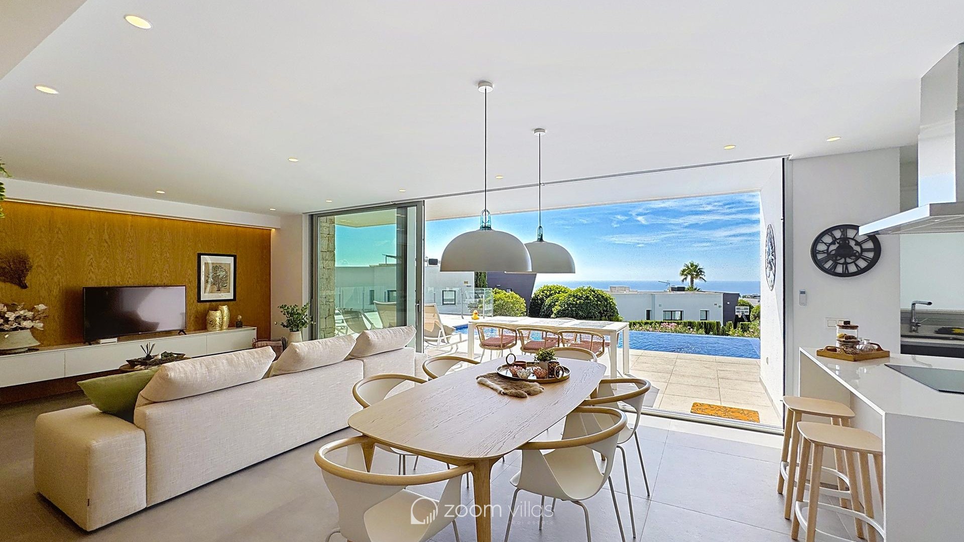 Contemporary villa for sale in the residential area Magnolias, Cumbre del SolA modern and functional property on the Costa Blanca NorthThis contemporary style villa is located in the prestigious Magnolias residential area, within the Cumbre del Sol residential development, between Jávea and Moraira, in the charming municipality of Benitachell. A privileged enclave where tranquillity, views and design come together to offer an unbeatable quality of life. Main characteristics of the villaTotal constructed area: 244 m²The property has 139 m² of living space.77 m² of terrace28 m² of covered parkingPlot: 830 m²Distribution on one floor3 double bedrooms2 full bathroomsSpacious living/dining room with open plan kitchenUtility room and technical roomFrom the master bedroom and the living room there is direct access to the outdoor terrace, where the infinity pool with unobstructed views invites you to relax and enjoy the Mediterranean climate. Recent construction and high efficiency equipmentBuilt in 2021, this villa is in excellent condition and has state-of-the-art installations: Underfloor heatingDucted air conditioning with aerothermal system, which also supplies domestic hot water.Mechanical ventilation system with heat recuperator and flow exchangerConsolidated Mediterranean garden, which surrounds the property and provides a natural and welcoming environment.All this makes this property efficient, comfortable and ready to move into. An exclusive lifestyle in Cumbre del SolLiving in this villa means enjoying a modern, bright and well-connected residence, perfect both as a permanent home and as a second home. Its location in the Magnolias residential area ensures tranquillity and, at the same time, proximity to all essential services, beaches and charming coastal towns. Magnolias residential area at a glanceThe Magnolias residential area is located within the Cumbre del Sol residential development in Benitachell, very close to the Lirios and Jazmines areas. It is characterised by its spacious, private plots, with ideal orientation to make the most of the natural light and the Mediterranean climate. Surrounded by nature and just a few minutes drive from exclusive coves such as Moraig, Llebeig or Los Tiestos, Magnolias is a perfect place for those looking for a quiet environment without giving up the proximity to Jávea, Moraira and all its services. Contact us atIf you are looking for a contemporary villa ready to enjoy in Cumbre del Sol, please do not hesitate to contact us. We will be delighted to provide you with more information and arrange a personalised visit to this unique property.