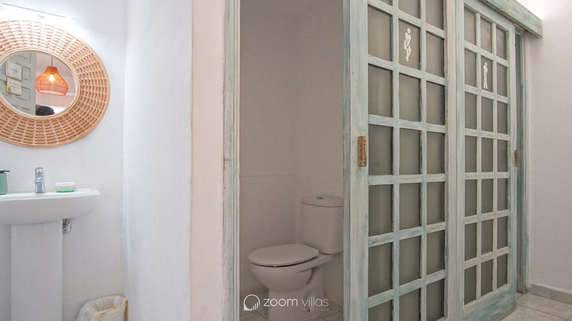 • The ground floor is used as a restaurant, equipped with a commercial kitchen and pantry, a barbecue with direct access to the garden, a bar, and a charming porch with a seating area that blends perfectly into the relaxed and sunny atmosphere of the Costa Blanca.