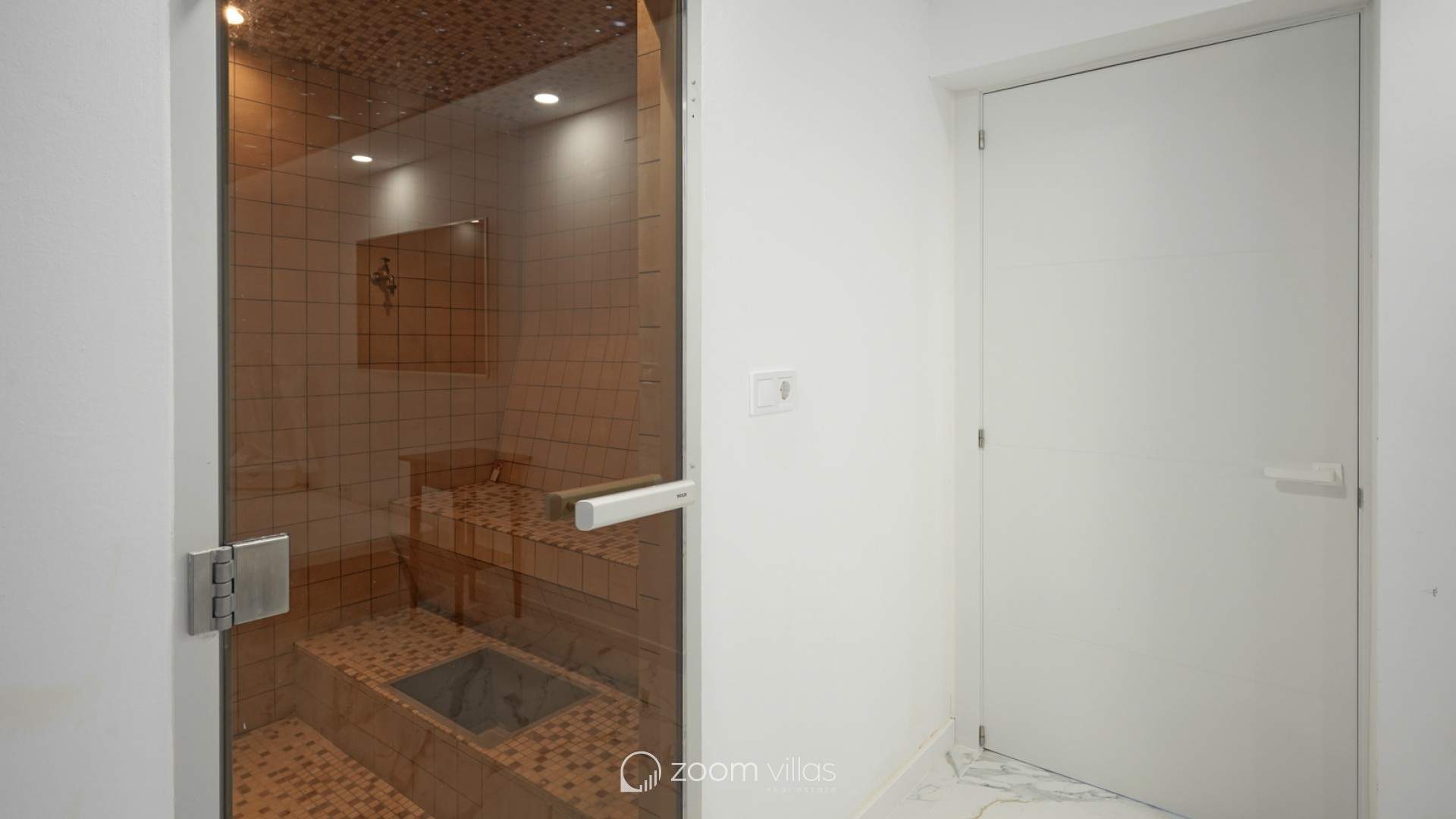 The villa also has a garage, currently furnished as an extra kitchen and storage space. Furthermore, the property is equipped with air conditioning, double glazing (Climalit), a solar water heater and a sauna.