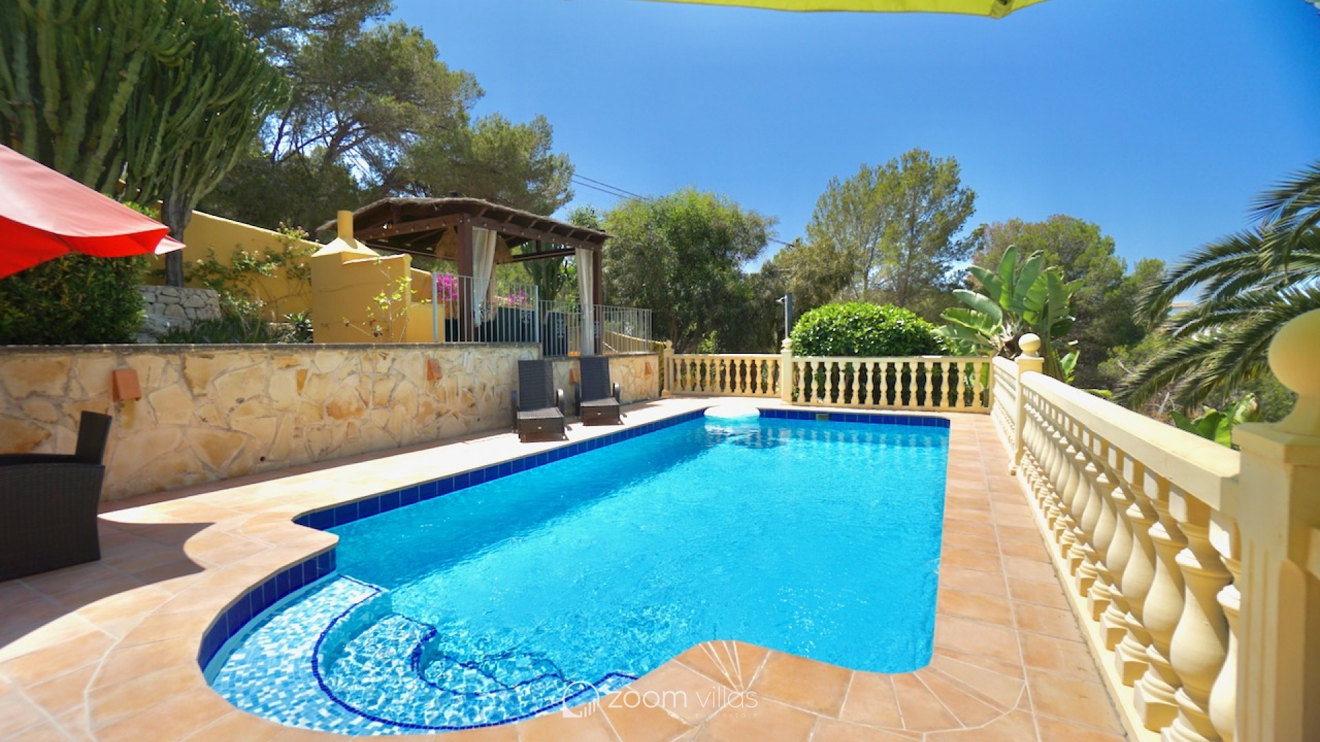 Located in the peaceful and highly sought-after Paichi area of Moraira, this beautifully renovated traditional villa blends Mediterranean character with modern comfort. Fully refurbished in 2017, it offers an ideal setting for relaxed living on the Costa Blanca. The main floor features three bedrooms, including a spacious master suite with a private bathroom and walk-in dressing room, as well as two additional bedrooms that share a modern family bathroom. A bright and inviting dining room leads to a generous living area with a wood-burning fireplace, seamlessly connected to a large kitchen-diner with direct access to the outside terrace. Surrounding the villa, you’ll find numerous seating and lounging areas to enjoy the outdoor lifestyle. The property boasts a large private pool measuring 4.5 x 8 metres, surrounded by sunny terraces, a shaded pergola with dining area, and a summer kitchen - offering the perfect setting for entertaining guests or unwinding in complete privacy. On the lower level, a fourth en-suite bedroom provides excellent accommodation for guests, or the option of an independent living space. Comfort is assured throughout the year thanks to full air conditioning, a ceiling fan in the living room, electric radiators, a practical laundry room, and open parking. All of this is set within a lush, tranquil environment, just minutes from Moraira town centre with its sandy beaches, and a wide range of amenities. Key Features: Traditional villa, renovated in 20174 bedrooms, including a master suite with private bathroom and walk-in dressing roomSpacious living room with wood-burning fireplaceLarge kitchen-diner open to the living areaBright dining room with garden viewsLarge private pool (4.5 x 8 m) with sunny terracesShaded pergola with dining area and summer kitchenAir conditioning throughout and electric heatingOpen parking spaceQuiet, green residential settingClose to Moraira town centre, beaches, and local amenities Contact us today to arrange a viewing.