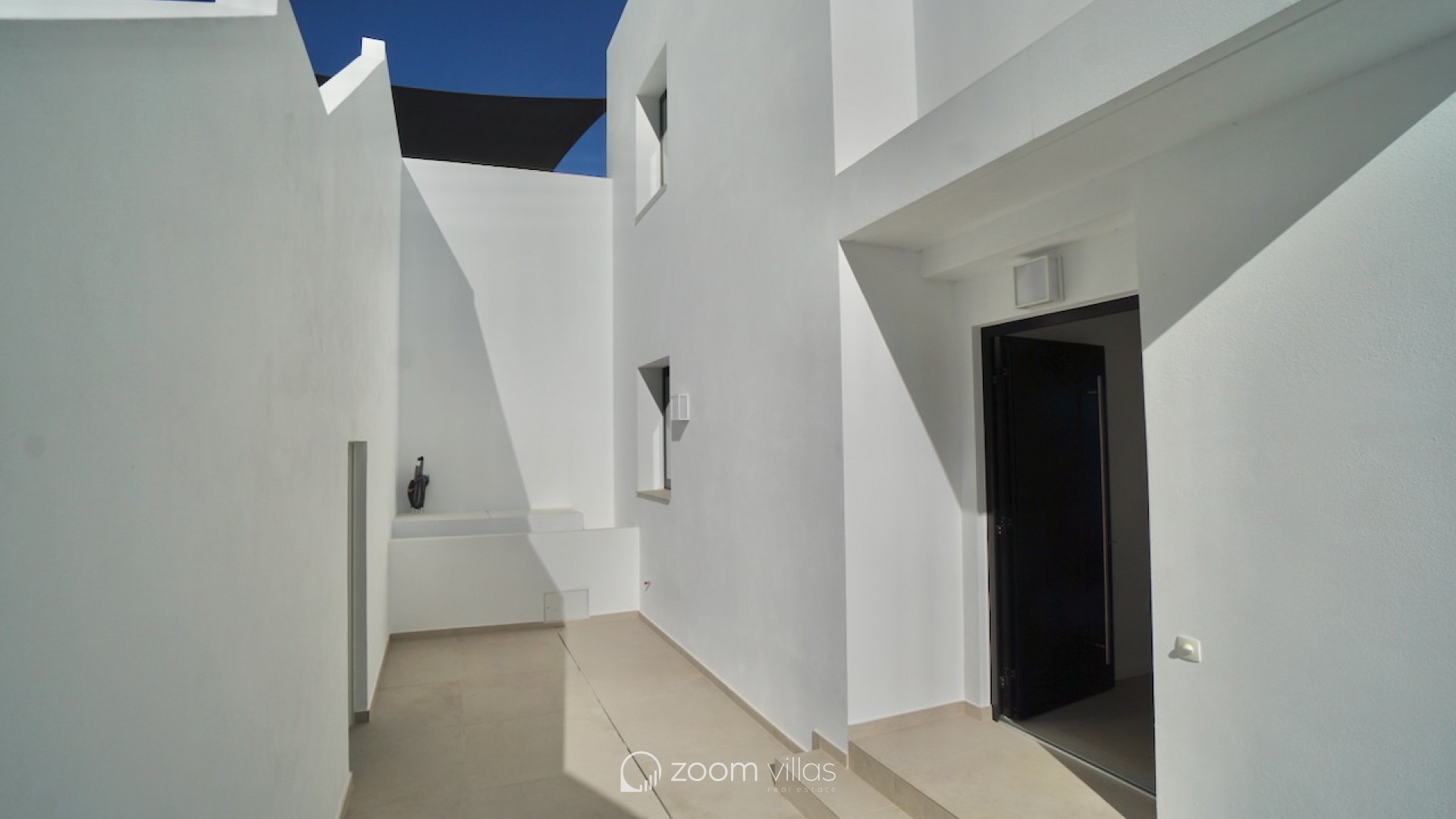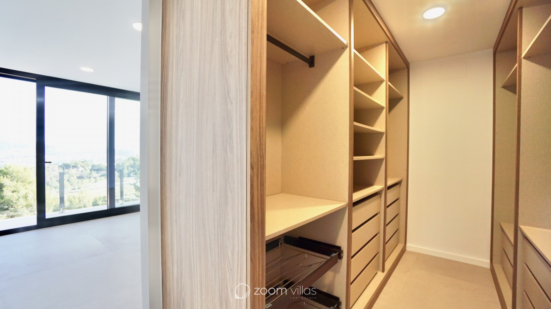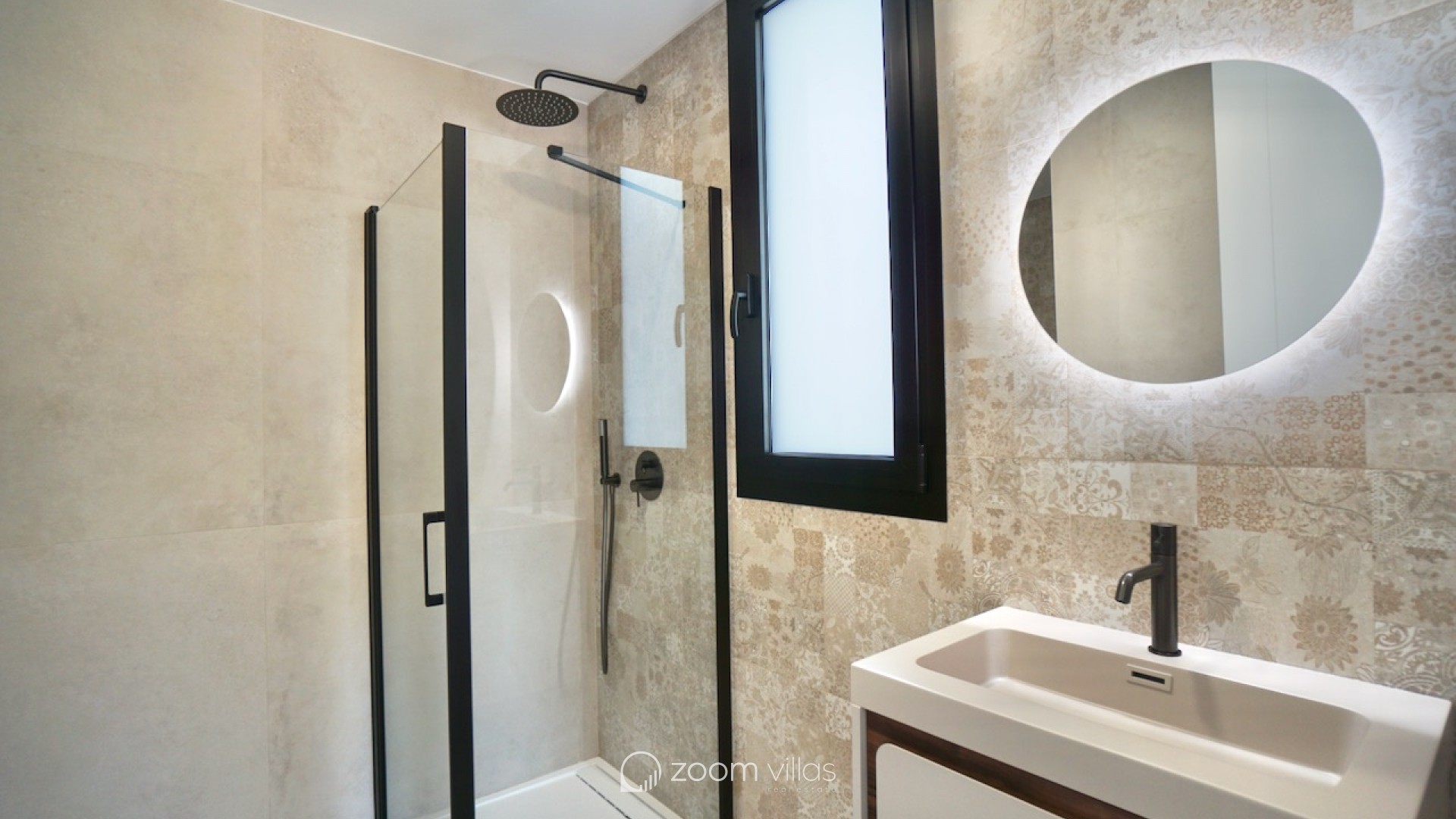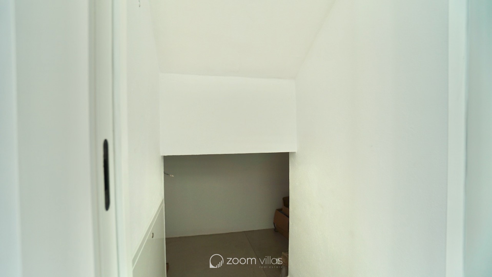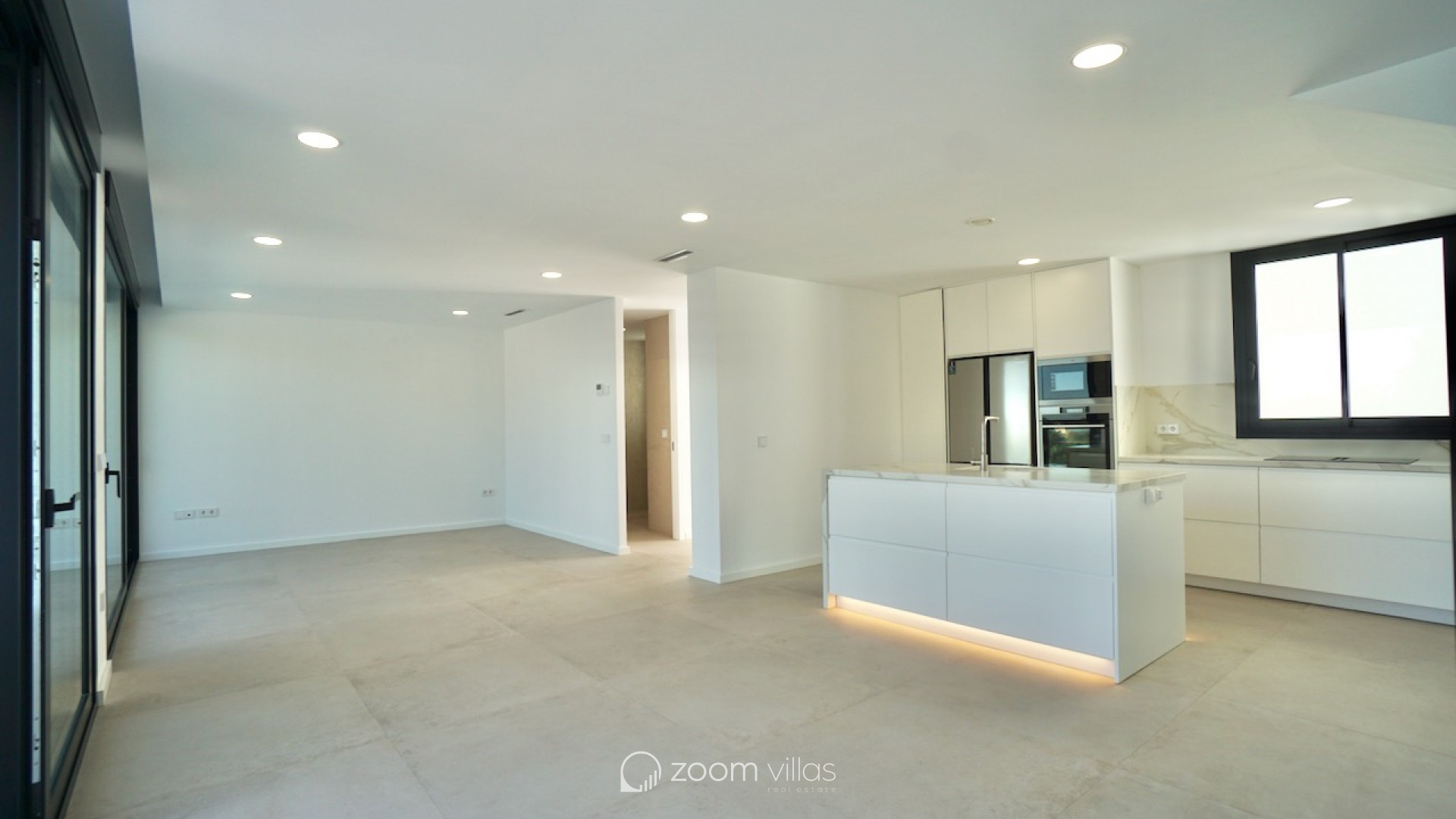 Stylish semi-detached villa for sale in Benimeit, Moraira. In a quiet circular street with footpaths we find this beautiful semi-detached house with private pool. Right in the quiet of a new neighbourhood in Benimeit and less than 10 minutes' drive from Moraira as well as Teulada. So you can choose where to go for shopping as you are in between! Just under 2 km away you will find restaurants, a supermarket and a bar and 4km from the property is the beach. Entry is via the electric gate with intercom that can also be managed via a remote app. The property offers parking for 2 cars under a modern shade tarpaulin. Steps down lead to the villa's main entrance. Here you will also find a convenient storage room and space to place beautiful plants such as the banana plant. This can add a green touch to the new home! In the entrance hall, we find an extra-large guest toilet with sink and space to store things. Then we enter the very bright living room with as many as 3 windows opening onto the swimming pool and terrace and the surrounding garden! Here one already enjoys the sun from early morning and the views towards the mountains. One can even see a bit of the sea! Back in the living room, we finds an open-plan kitchen with an island. All appliances are installed and of the highest quality! The marble top completes it all! A door in the kitchen leads to another extra large cupboard for storing food items, for example. The staircase with glass railing leads us to the first bedroom. Spacious and bright with fitted wardrobe and ensuite shower room! The same fantastic tiled floor is throughout the house and the window and door finishing is the same everywhere. This offers unity and tranquillity! The views from this bedroom are also very nice. A few stairs up we find 2 more bedrooms, also with ensuite bathrooms. The master bedroom has a walk-in closet and an extra large bathroom with double washbasin, separate bathtub and shower! The rooms on this floor share a balcony with views towards the sea. Last but not least, the house stands on a plot of 508m2, the garden can be laid out to your own taste. The private pool is infinity and there is a solar shower to rinse off after a great swim! There is centralised air conditioning throughout the whole house. One can set a temperature per zone. There are also 12 solar panels generating 5kw, located on the flat roof of the villa. And also pre installation for a heat pump for underfloor heating throughout the property and a ventilation system. The windows have black profiles and enjoy electric shutters. There is possibility to connect to fibre optic internet. Key features: Semi-detached villa of 2024 Private infinity pool Quiet location but not far from the village and beach Sea glimpse3 bedrooms 3 bathrooms Carport for 2 cars Centralised air conditioning, pre-installation for heat pump and underfloor heatingSolar panelsElectric shutters Do not wait any longer to make your appointment and come and see this beautiful 2024 new build with your own eyes now!