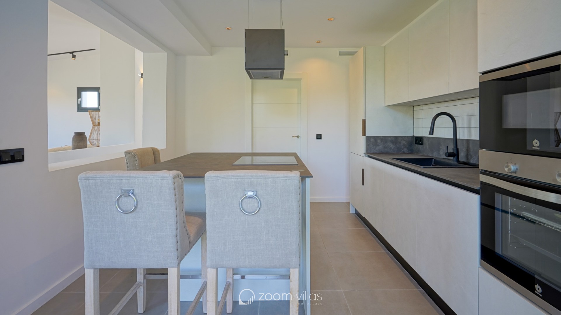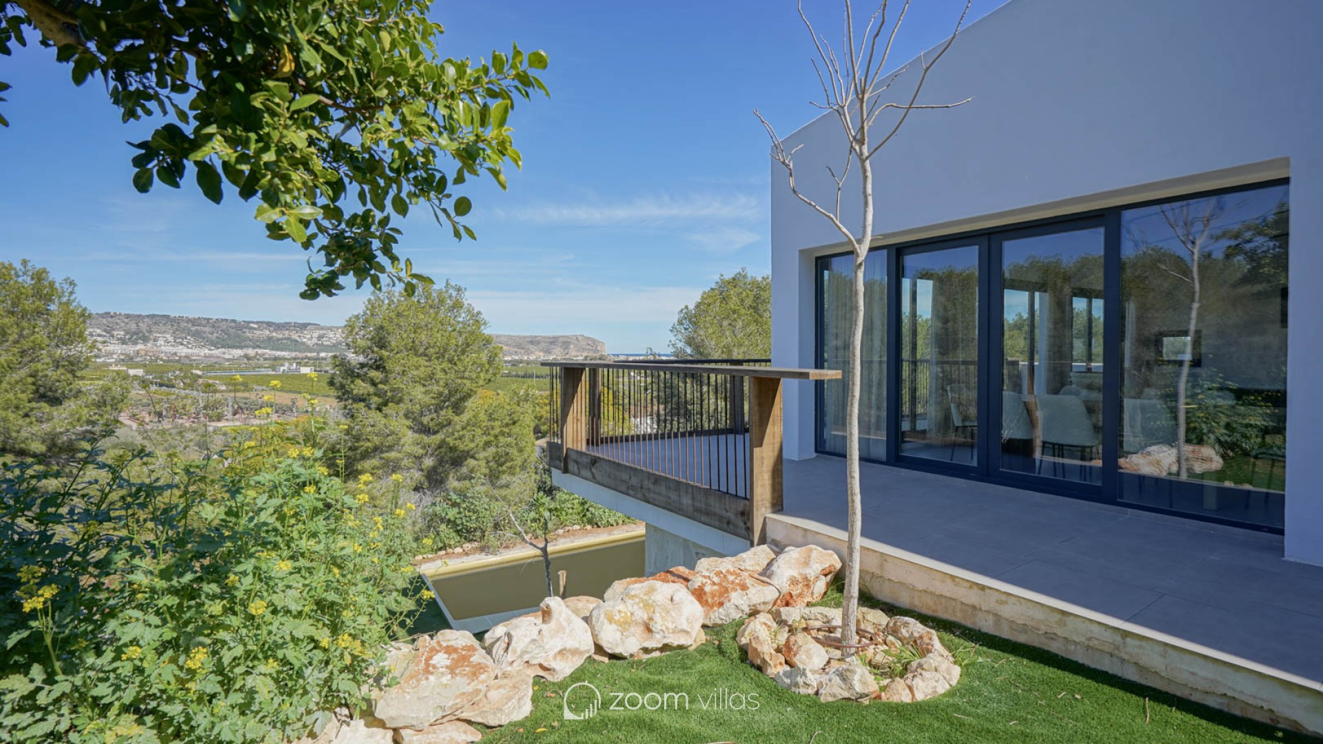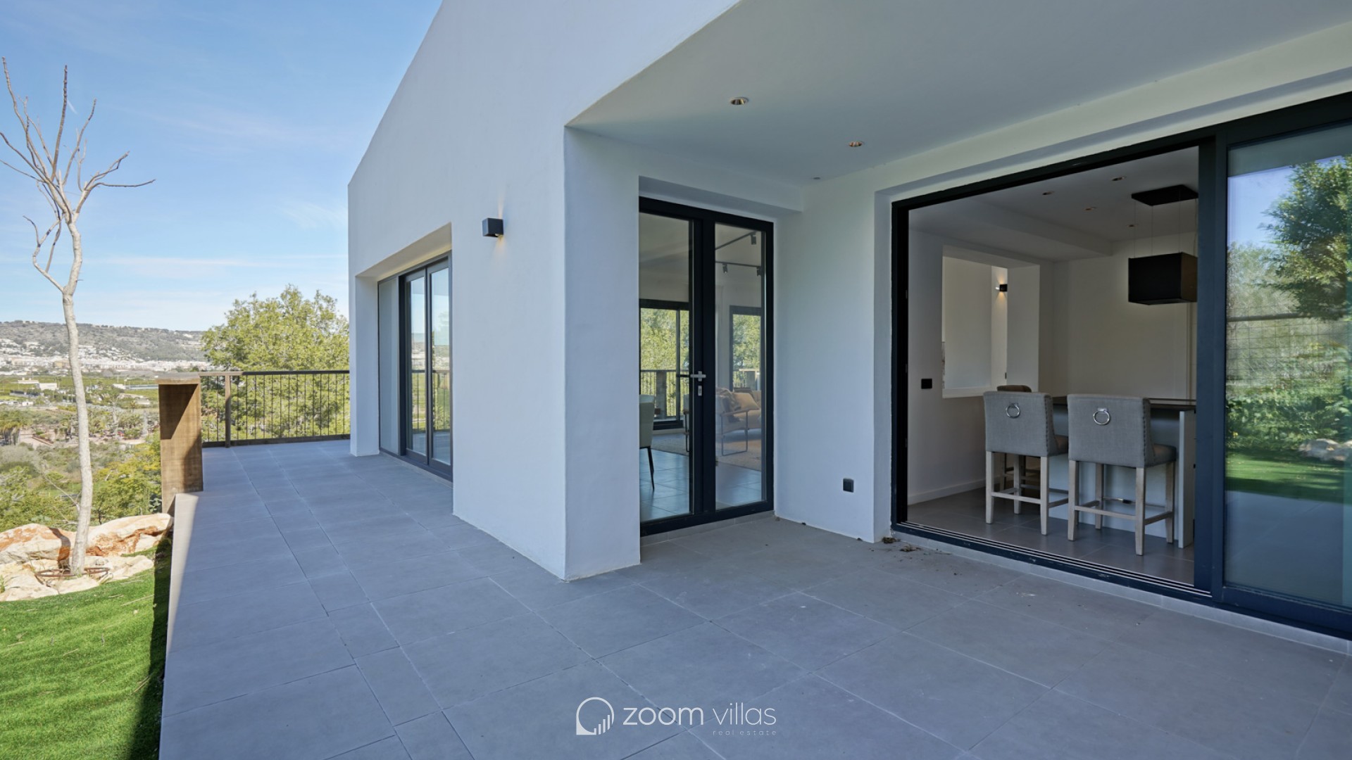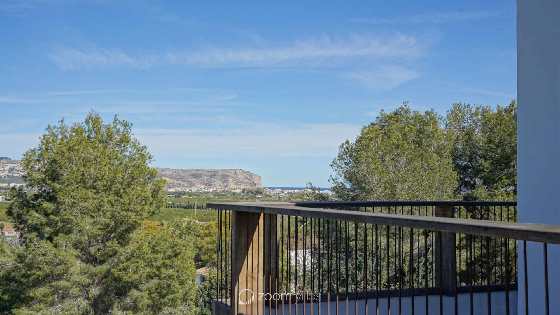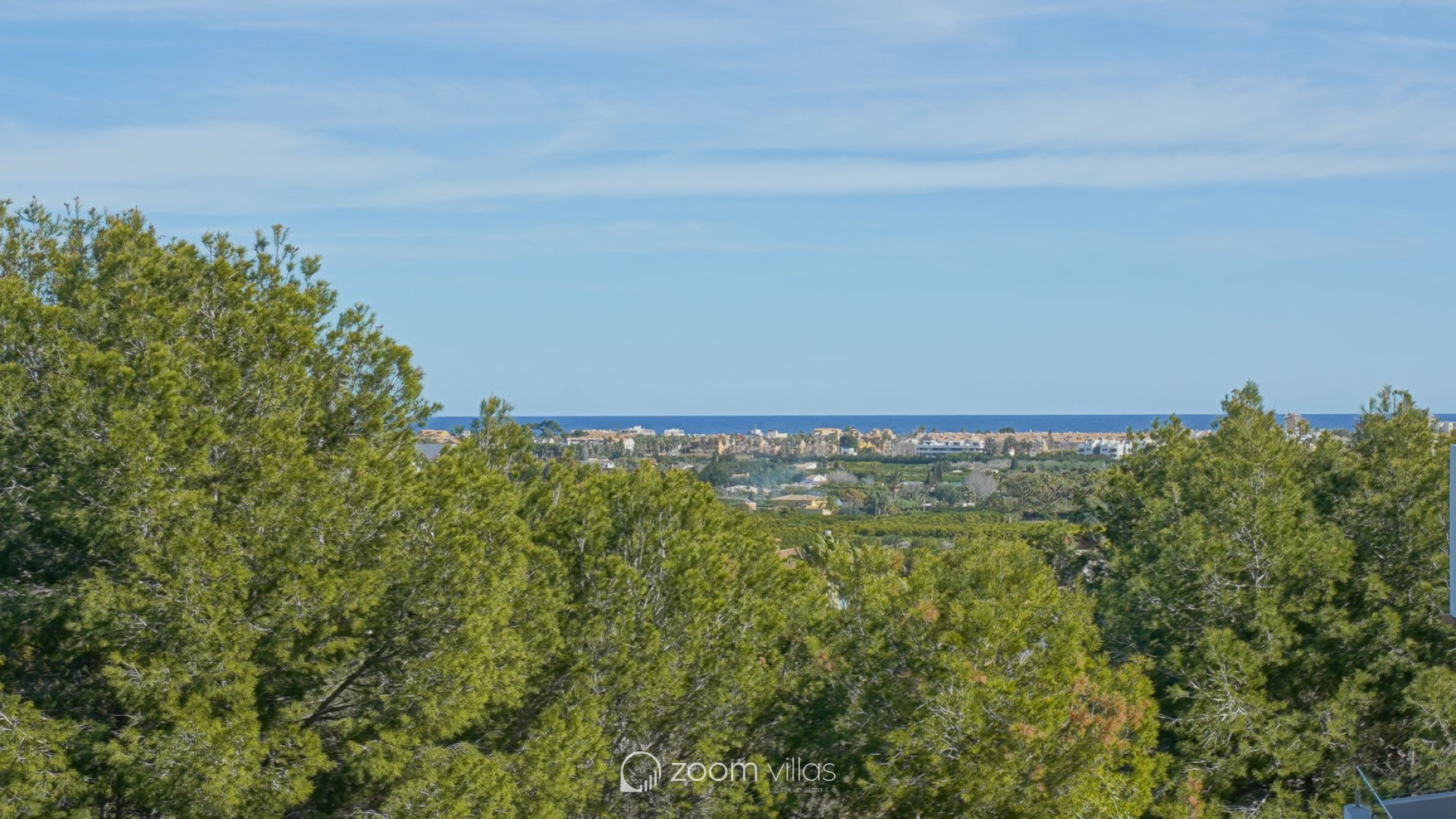 Exclusive New Build Villa with sea views for sale in Puerta Fenicia, Jávea. Discover this beautiful, modern villa, recently completed, situated in an ideal location a short distance from both the charming historic centre of Jávea and the beautiful sandy beach. Enjoy panoramic views over the majestic Montgó, vast orange groves, the iconic Cabo de San Antonio and the azure Mediterranean Sea. Spread over two floors, this villa offers a perfect balance of luxury and functionality. The upper floor houses a generous living-dining room, where large windows not only provide an abundance of natural light, but also offer expansive views of the surroundings. The semi-open kitchen is equipped with top-quality materials, including a spacious cooking island. There is also a practical laundry room with direct access from the kitchen and a guest toilet. The sliding windows in the kitchen provide access to a spacious, partially covered terrace and a beautifully landscaped garden - the ideal place to enjoy the sun and the views. On the ground floor are three elegant bedrooms, each with its own luxurious bathroom. All bedrooms have direct access to the terrace and swimming pool. The villa is equipped with modern amenities such as electric underfloor heating and air conditioning, ensuring optimal comfort all year round. Natural materials such as natural stone and wood have been combined in the construction of this villa for a stylish and timeless result. A unique opportunity to live in one of the most sought-after areas of Jávea, where luxury and comfort go hand in hand with the beauty of nature.