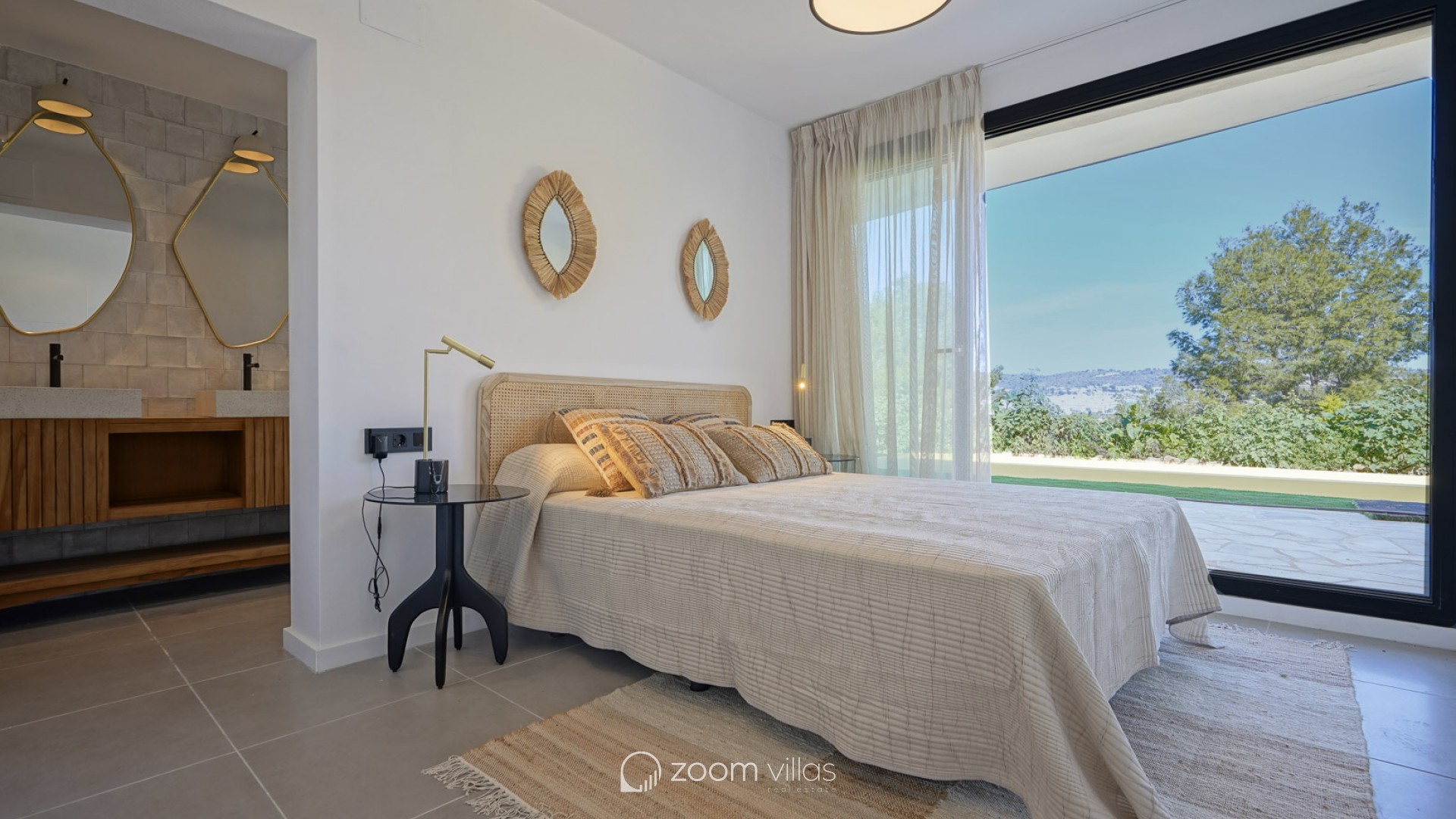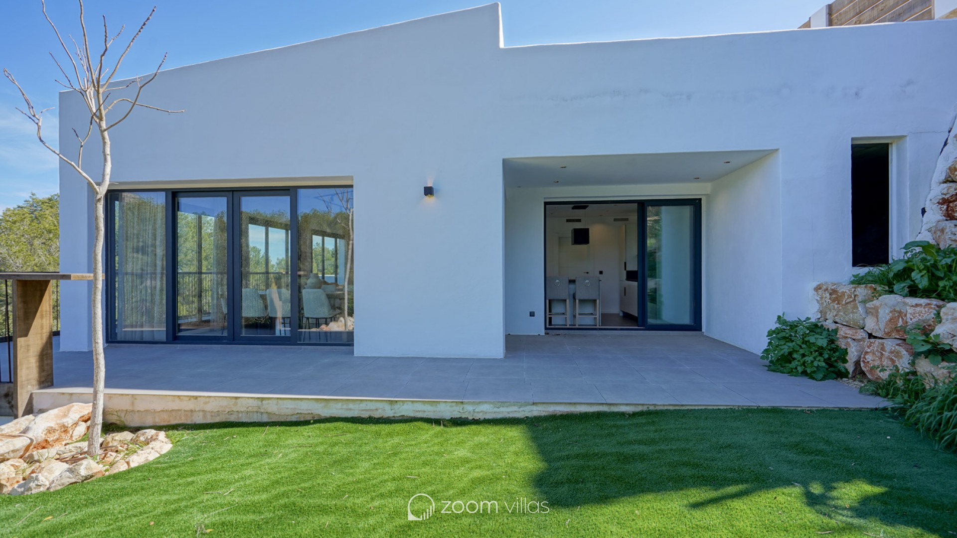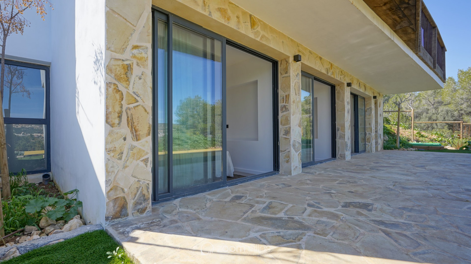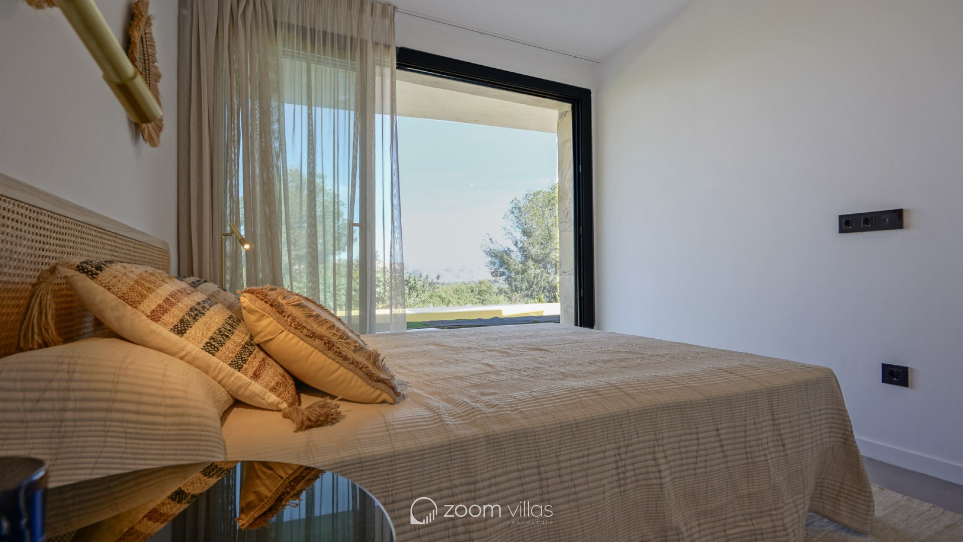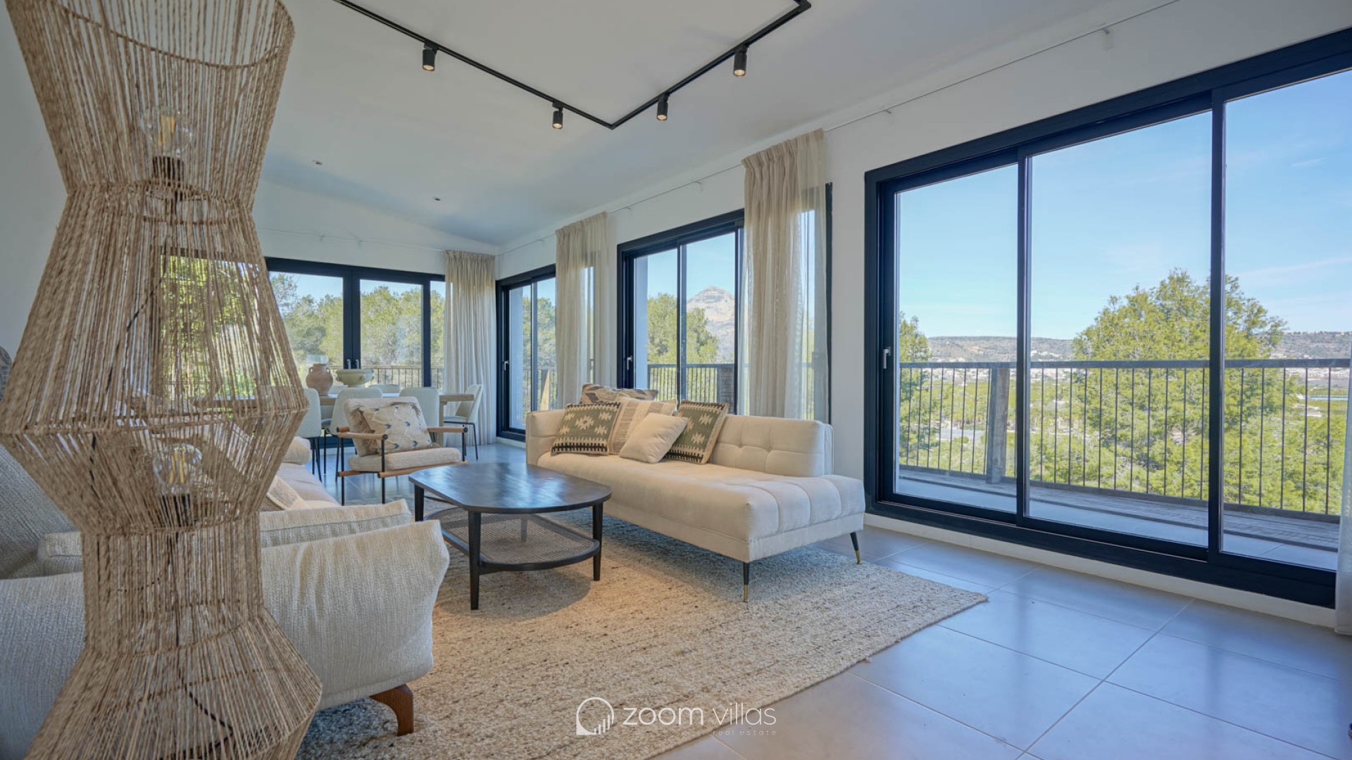 Exclusive New Build Villa with sea views for sale in Puerta Fenicia, Jávea. Discover this beautiful, modern villa, recently completed, situated in an ideal location a short distance from both the charming historic centre of Jávea and the beautiful sandy beach. Enjoy panoramic views over the majestic Montgó, vast orange groves, the iconic Cabo de San Antonio and the azure Mediterranean Sea. Spread over two floors, this villa offers a perfect balance of luxury and functionality. The upper floor houses a generous living-dining room, where large windows not only provide an abundance of natural light, but also offer expansive views of the surroundings. The semi-open kitchen is equipped with top-quality materials, including a spacious cooking island. There is also a practical laundry room with direct access from the kitchen and a guest toilet. The sliding windows in the kitchen provide access to a spacious, partially covered terrace and a beautifully landscaped garden - the ideal place to enjoy the sun and the views. On the ground floor are three elegant bedrooms, each with its own luxurious bathroom. All bedrooms have direct access to the terrace and swimming pool. The villa is equipped with modern amenities such as electric underfloor heating and air conditioning, ensuring optimal comfort all year round. Natural materials such as natural stone and wood have been combined in the construction of this villa for a stylish and timeless result. A unique opportunity to live in one of the most sought-after areas of Jávea, where luxury and comfort go hand in hand with the beauty of nature.