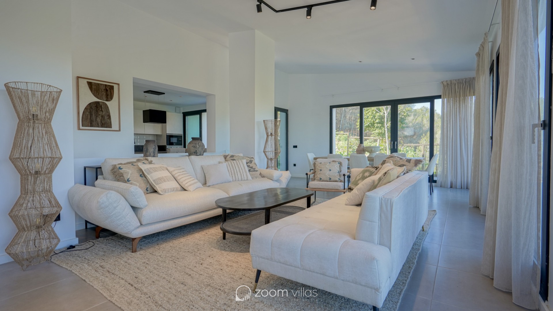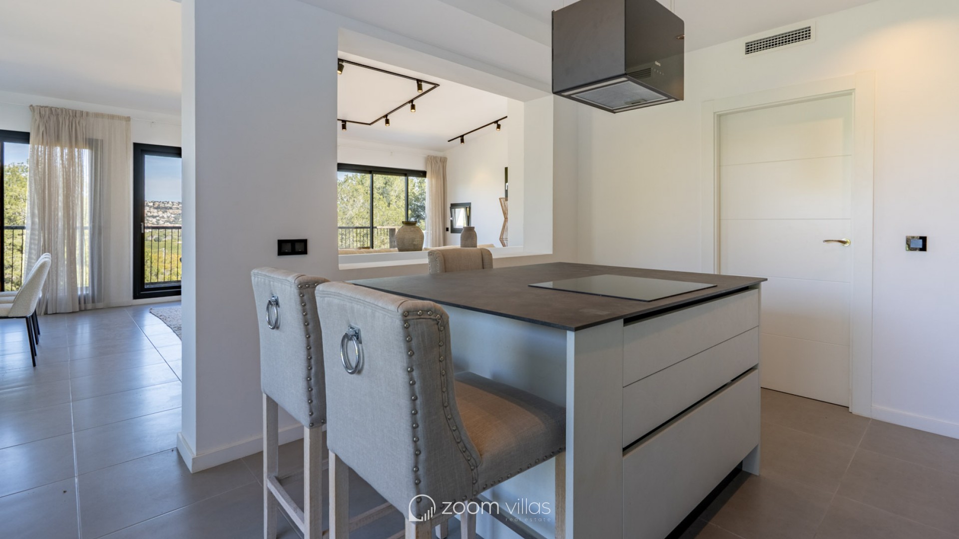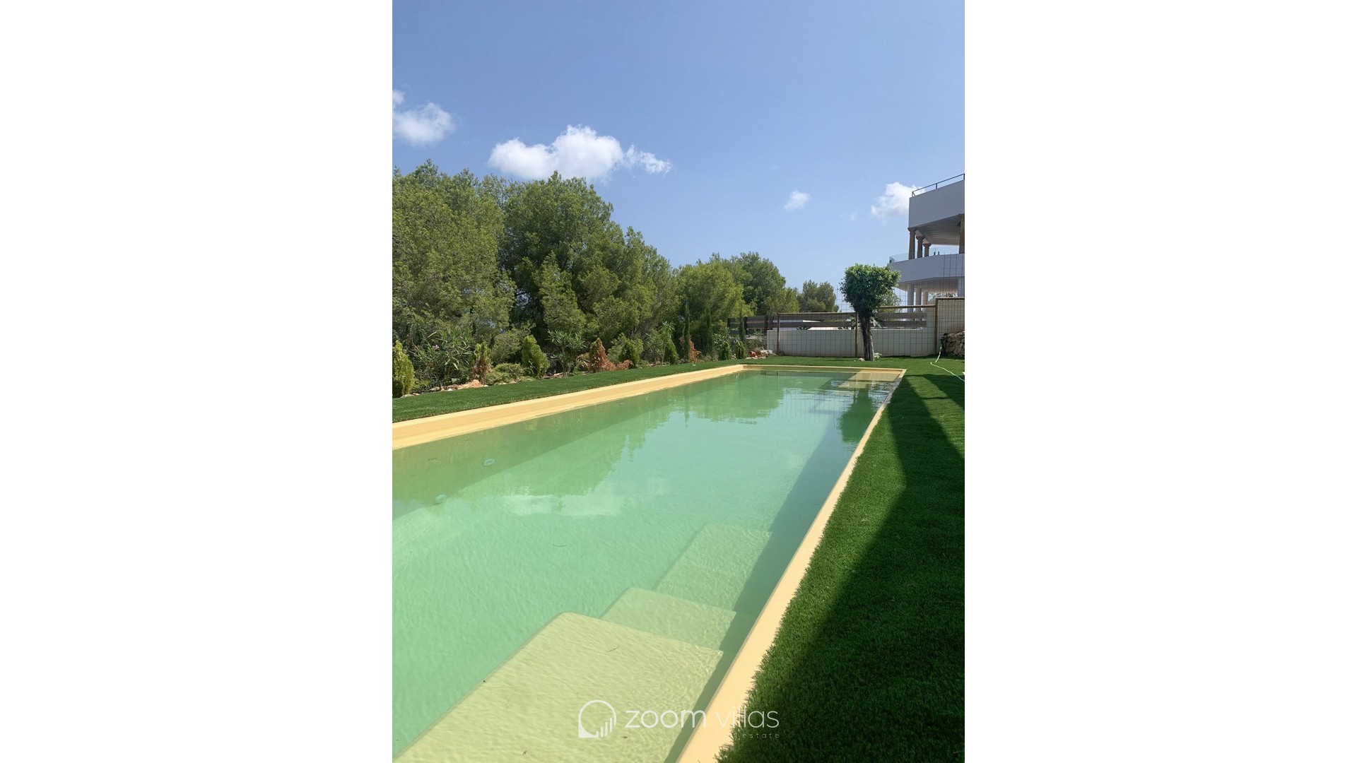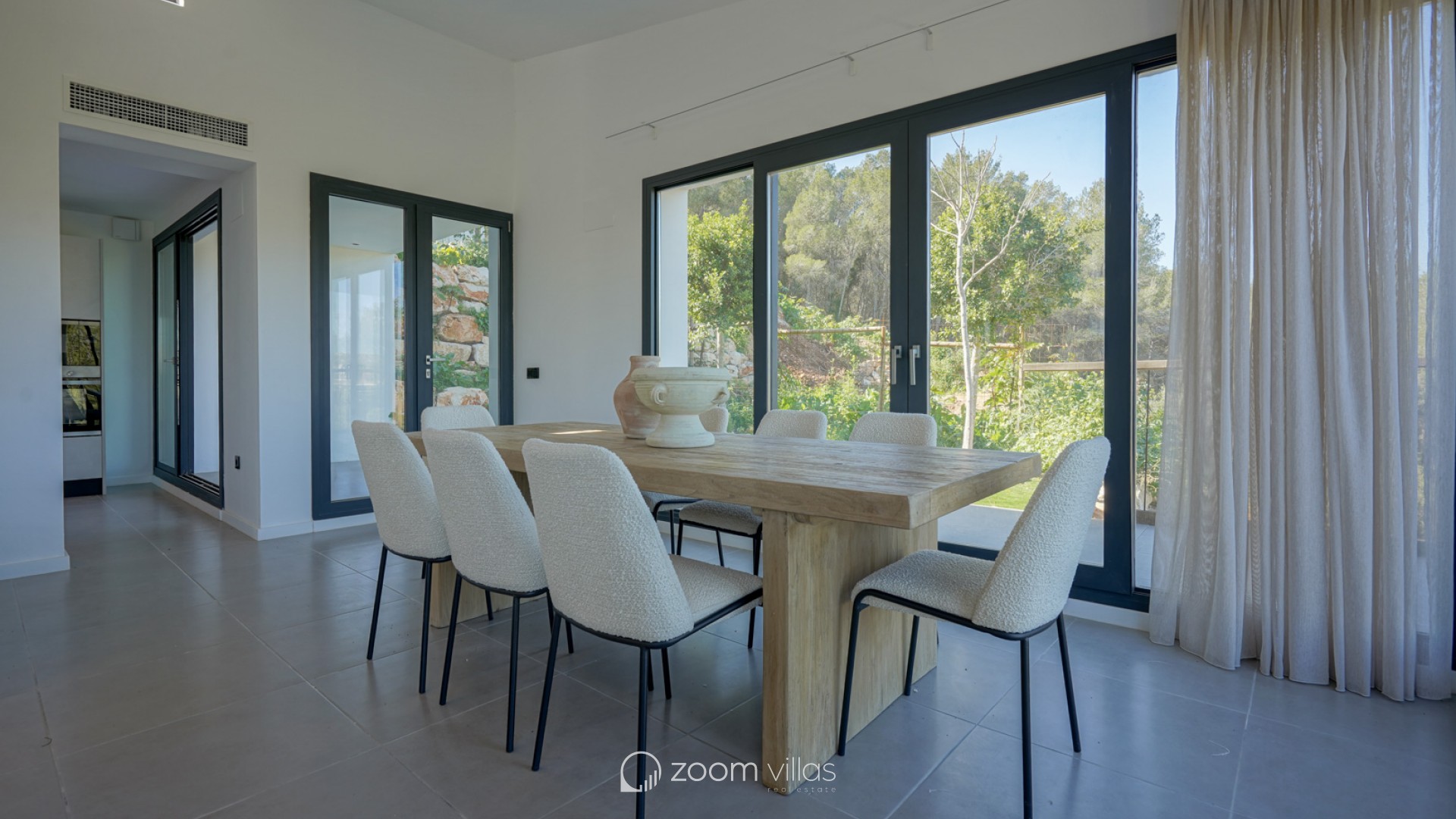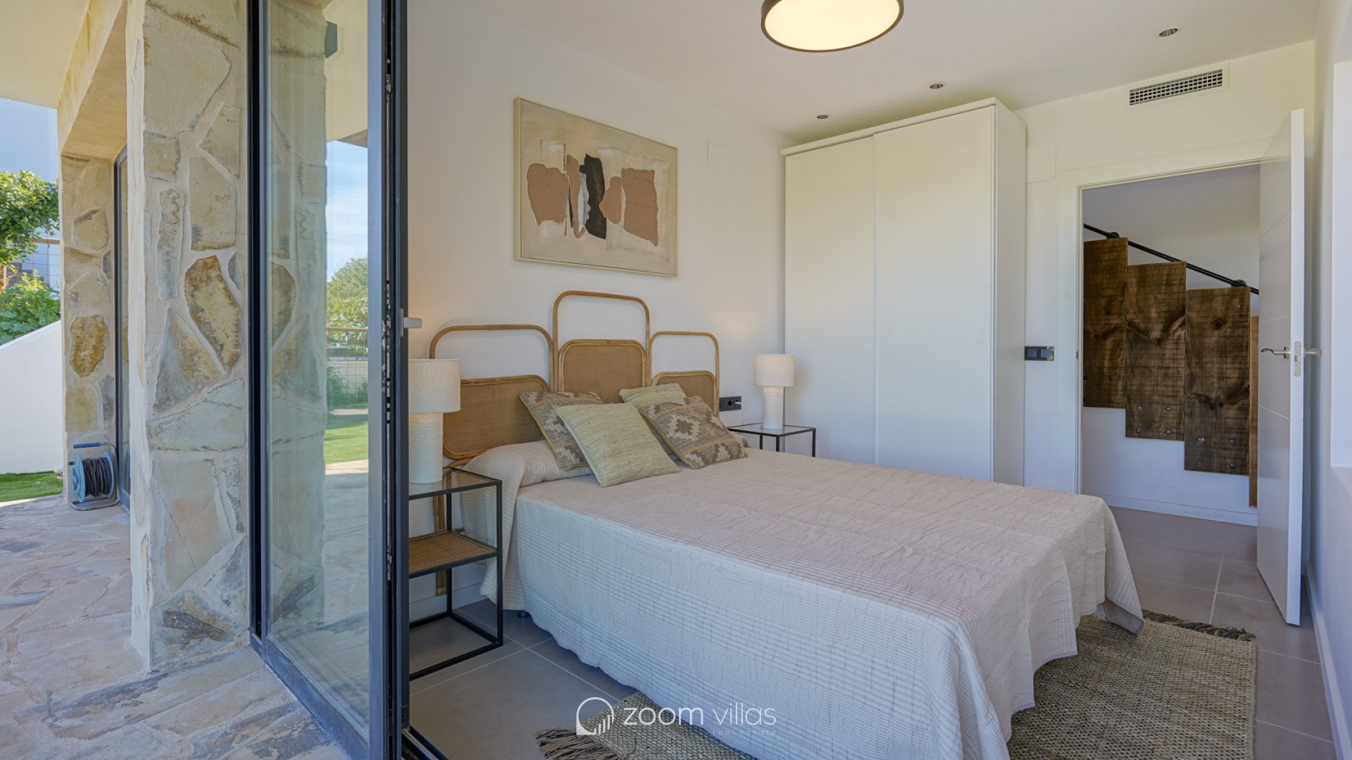 Exclusive New Build Villa with sea views for sale in Puerta Fenicia, Jávea. Discover this beautiful, modern villa, recently completed, situated in an ideal location a short distance from both the charming historic centre of Jávea and the beautiful sandy beach. Enjoy panoramic views over the majestic Montgó, vast orange groves, the iconic Cabo de San Antonio and the azure Mediterranean Sea. Spread over two floors, this villa offers a perfect balance of luxury and functionality. The upper floor houses a generous living-dining room, where large windows not only provide an abundance of natural light, but also offer expansive views of the surroundings. The semi-open kitchen is equipped with top-quality materials, including a spacious cooking island. There is also a practical laundry room with direct access from the kitchen and a guest toilet. The sliding windows in the kitchen provide access to a spacious, partially covered terrace and a beautifully landscaped garden - the ideal place to enjoy the sun and the views. On the ground floor are three elegant bedrooms, each with its own luxurious bathroom. All bedrooms have direct access to the terrace and swimming pool. The villa is equipped with modern amenities such as electric underfloor heating and air conditioning, ensuring optimal comfort all year round. Natural materials such as natural stone and wood have been combined in the construction of this villa for a stylish and timeless result. A unique opportunity to live in one of the most sought-after areas of Jávea, where luxury and comfort go hand in hand with the beauty of nature.