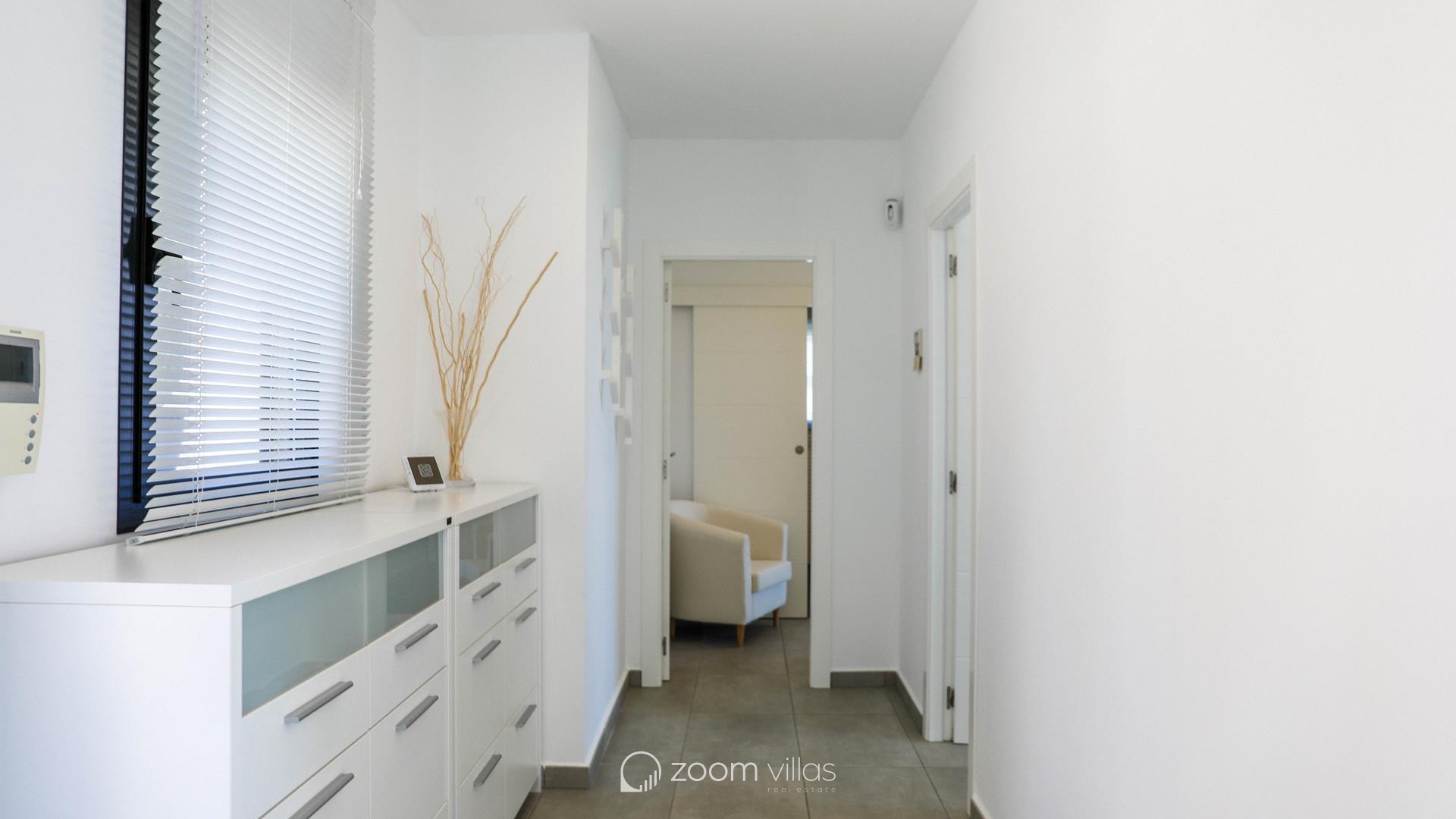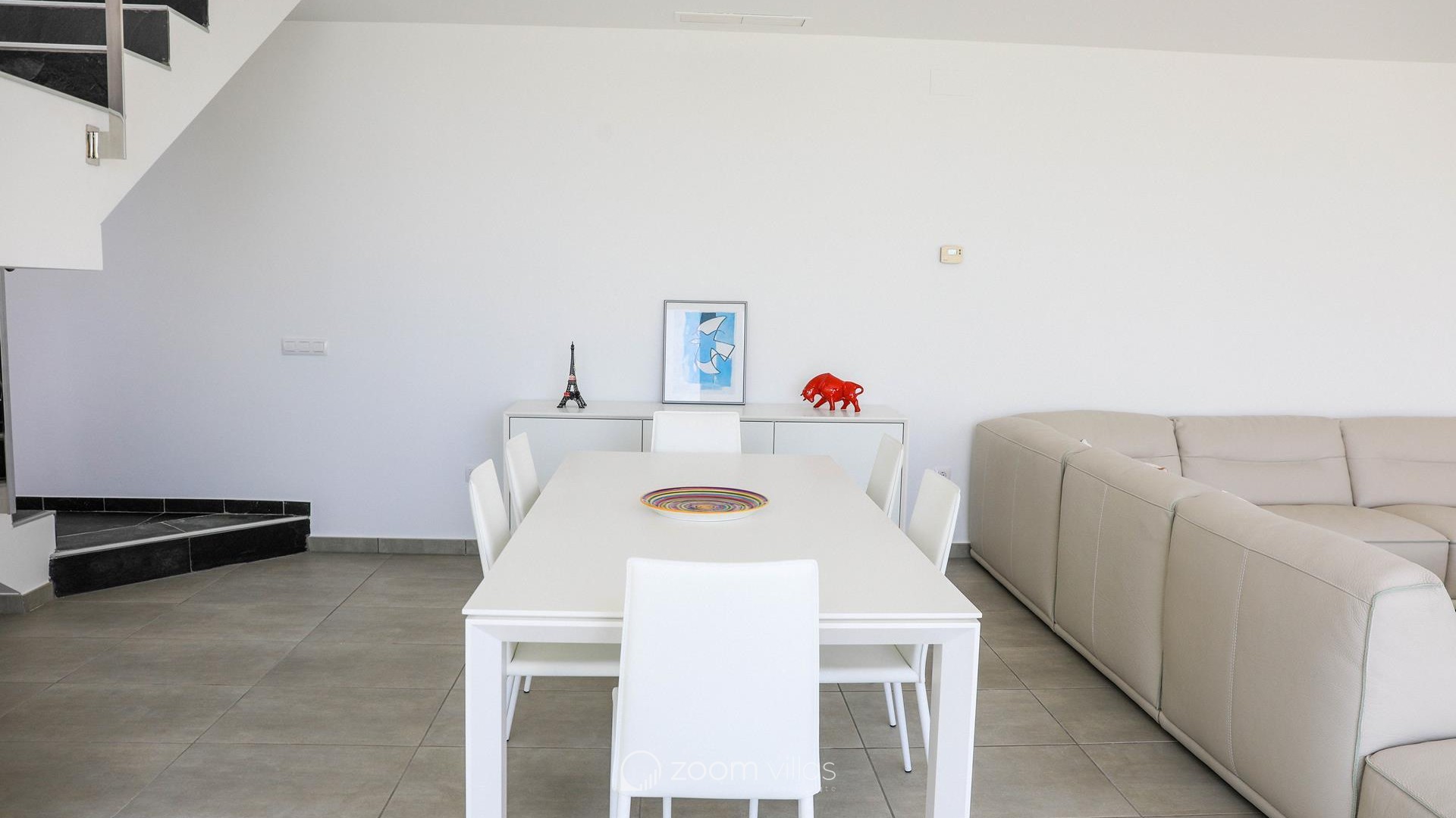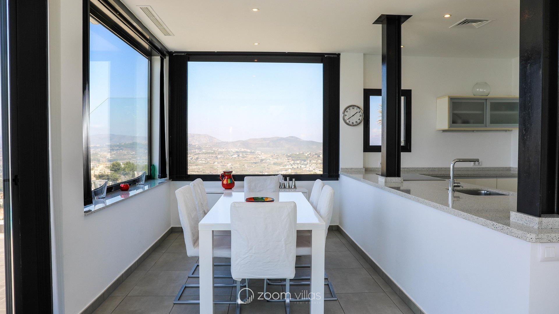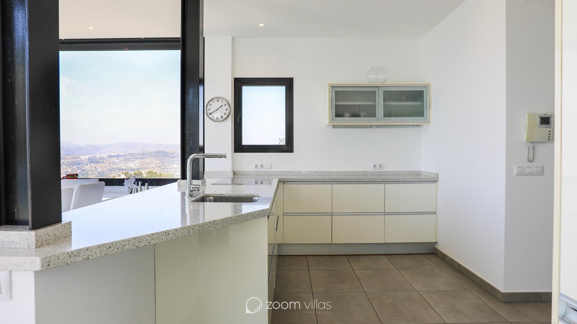 Modern style villa with stunning sea views in the Kalmias residential area of ​​the Cumbre del Sol urbanization located between Jávea and Moraira. It has a total constructed area of ​​430 m2 (200 m2 of main house, 90 m2 of guest apartment and 140 m2 of terraces), all built on a plot of 1025 m2. In total we have 5 double bedrooms all with their private bathroom. Likewise, the villa is equipped with underfloor heating and air conditioning throughout the house. The villa is built on several levels. We access with the car through a wide and comfortable access ramp, accessing the parking area with a covered area and with access to the villa through the upper floor, on the upper floor we have three double bedrooms each with its own bathroom. bathroom and direct access to the outdoor terrace with spectacular views of the sea and the mountains. Through an internal staircase we go down to the main floor of the villa where we have the living room and kitchen in open concept as well as the laundry room and a courtesy toilet, both from the kitchen area and the living room we can access the terrace exterior with private pool. From the terrace we can access the barbecue area that is located on one side of the villa. From this terrace we can skirt the pool and reach the guest apartment which is also accessible via an external staircase directly from the parking area of ​​the villa. The guest apartment enjoys very nice views from the outside terrace and the living room. Through an internal staircase we go up half a floor to access the two double bedrooms and the two bathrooms.  The Kalmias residential area is a development of villas consisting of 189 plots of 750 to 1200M2 located in the cumbre del sol urbanization in Benitachell (Alicante). Almost all the plots enjoy beautiful views of the sea, the Moraira valley with Calpe in the background and the mountains with the Sierra de Bernia in the background, the orientation of the plots can be South and Southwest. Residencial Kalmias is located in the Cumbre del sol urbanization at the south entrance bordering the Jazmines y Lirios residential area. Distances to services: From 1 to 3 km you will find the Dreamsea Mediterranean camp with a bar and restaurant and access to Morach beach, the cala de los tiestos and Cala Llebeig, the Lady Elisabeth international school, the Mercadona supermarket and the equestrian. From 4 to 5 km; the Adelfas shopping center with the Pepe la sal supermarket, hairdresser, maintenance and rental services agency, cafeteria bar, la cumbre restaurant, pharmacy, sports center with paddle tennis, tennis, bar, Mas y Mas supermarket and the center urban Benitachell From 6 to 7 km; the urban center and the beach of Portet de Moraira and the golf course of Jávea. 12 km away is the sandy beach of Jávea