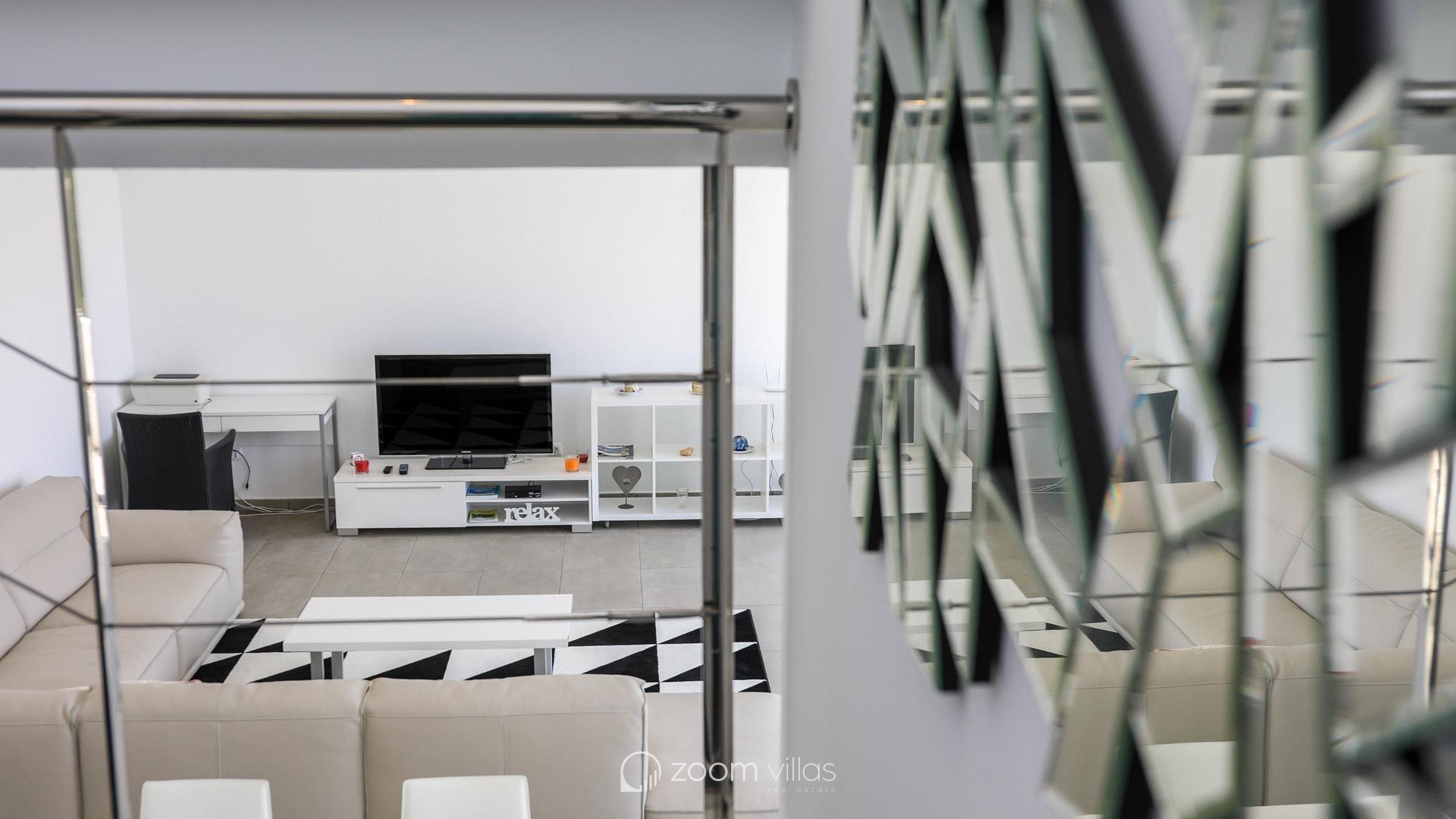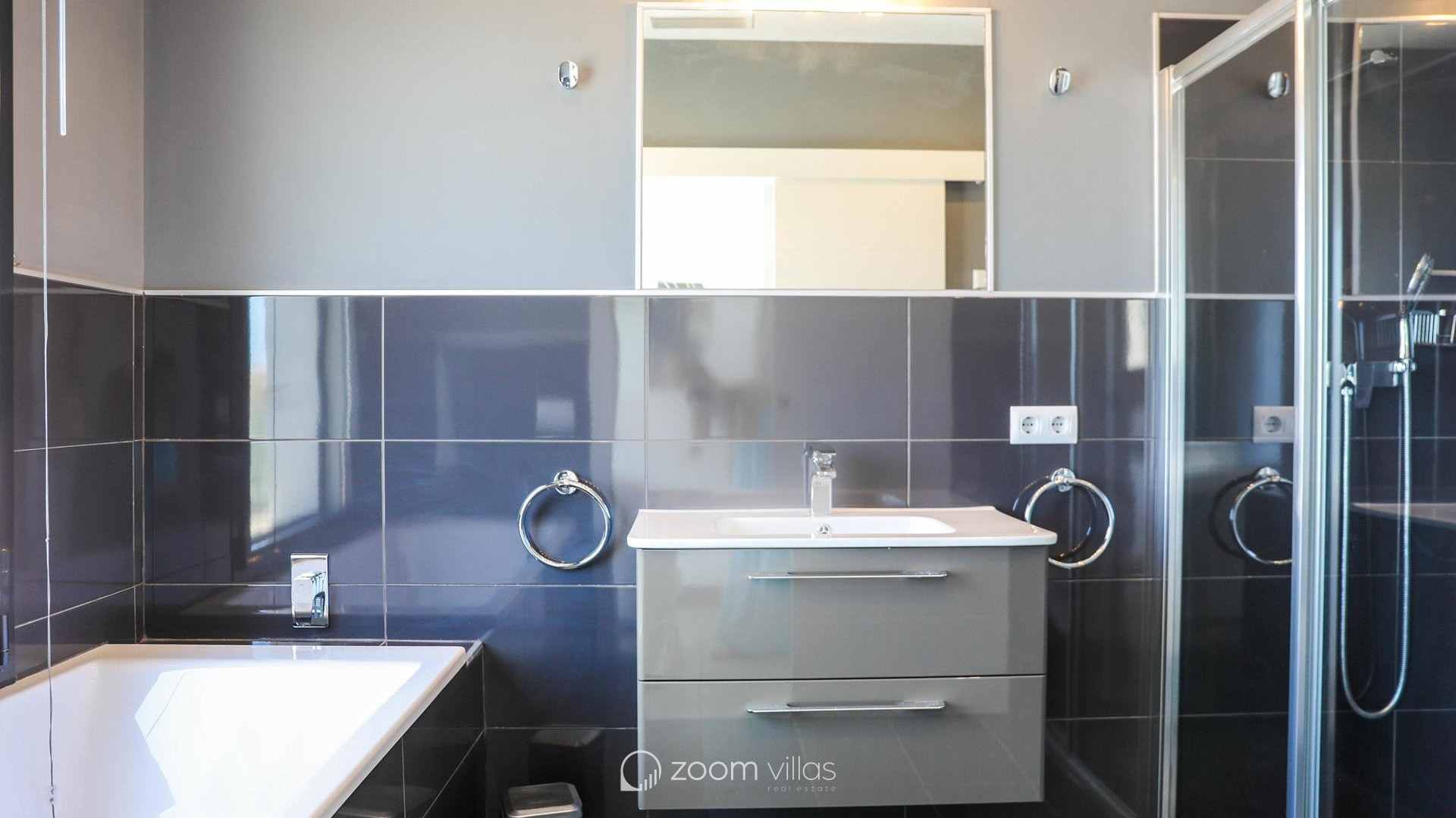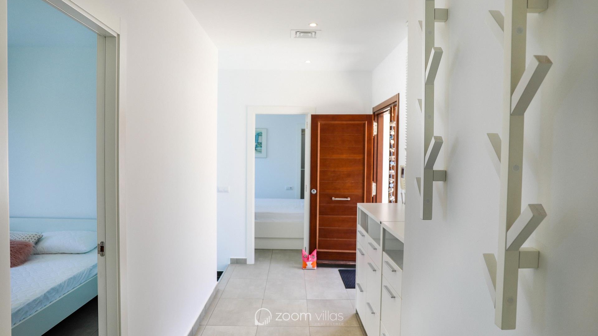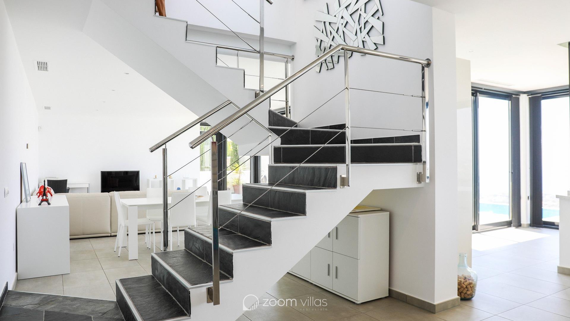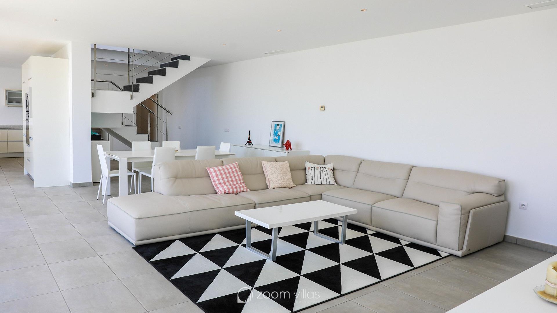 Modern style villa with stunning sea views in the Kalmias residential area of ​​the Cumbre del Sol urbanization located between Jávea and Moraira. It has a total constructed area of ​​430 m2 (200 m2 of main house, 90 m2 of guest apartment and 140 m2 of terraces), all built on a plot of 1025 m2. In total we have 5 double bedrooms all with their private bathroom. Likewise, the villa is equipped with underfloor heating and air conditioning throughout the house. The villa is built on several levels. We access with the car through a wide and comfortable access ramp, accessing the parking area with a covered area and with access to the villa through the upper floor, on the upper floor we have three double bedrooms each with its own bathroom. bathroom and direct access to the outdoor terrace with spectacular views of the sea and the mountains. Through an internal staircase we go down to the main floor of the villa where we have the living room and kitchen in open concept as well as the laundry room and a courtesy toilet, both from the kitchen area and the living room we can access the terrace exterior with private pool. From the terrace we can access the barbecue area that is located on one side of the villa. From this terrace we can skirt the pool and reach the guest apartment which is also accessible via an external staircase directly from the parking area of ​​the villa. The guest apartment enjoys very nice views from the outside terrace and the living room. Through an internal staircase we go up half a floor to access the two double bedrooms and the two bathrooms.  The Kalmias residential area is a development of villas consisting of 189 plots of 750 to 1200M2 located in the cumbre del sol urbanization in Benitachell (Alicante). Almost all the plots enjoy beautiful views of the sea, the Moraira valley with Calpe in the background and the mountains with the Sierra de Bernia in the background, the orientation of the plots can be South and Southwest. Residencial Kalmias is located in the Cumbre del sol urbanization at the south entrance bordering the Jazmines y Lirios residential area. Distances to services: From 1 to 3 km you will find the Dreamsea Mediterranean camp with a bar and restaurant and access to Morach beach, the cala de los tiestos and Cala Llebeig, the Lady Elisabeth international school, the Mercadona supermarket and the equestrian. From 4 to 5 km; the Adelfas shopping center with the Pepe la sal supermarket, hairdresser, maintenance and rental services agency, cafeteria bar, la cumbre restaurant, pharmacy, sports center with paddle tennis, tennis, bar, Mas y Mas supermarket and the center urban Benitachell From 6 to 7 km; the urban center and the beach of Portet de Moraira and the golf course of Jávea. 12 km away is the sandy beach of Jávea