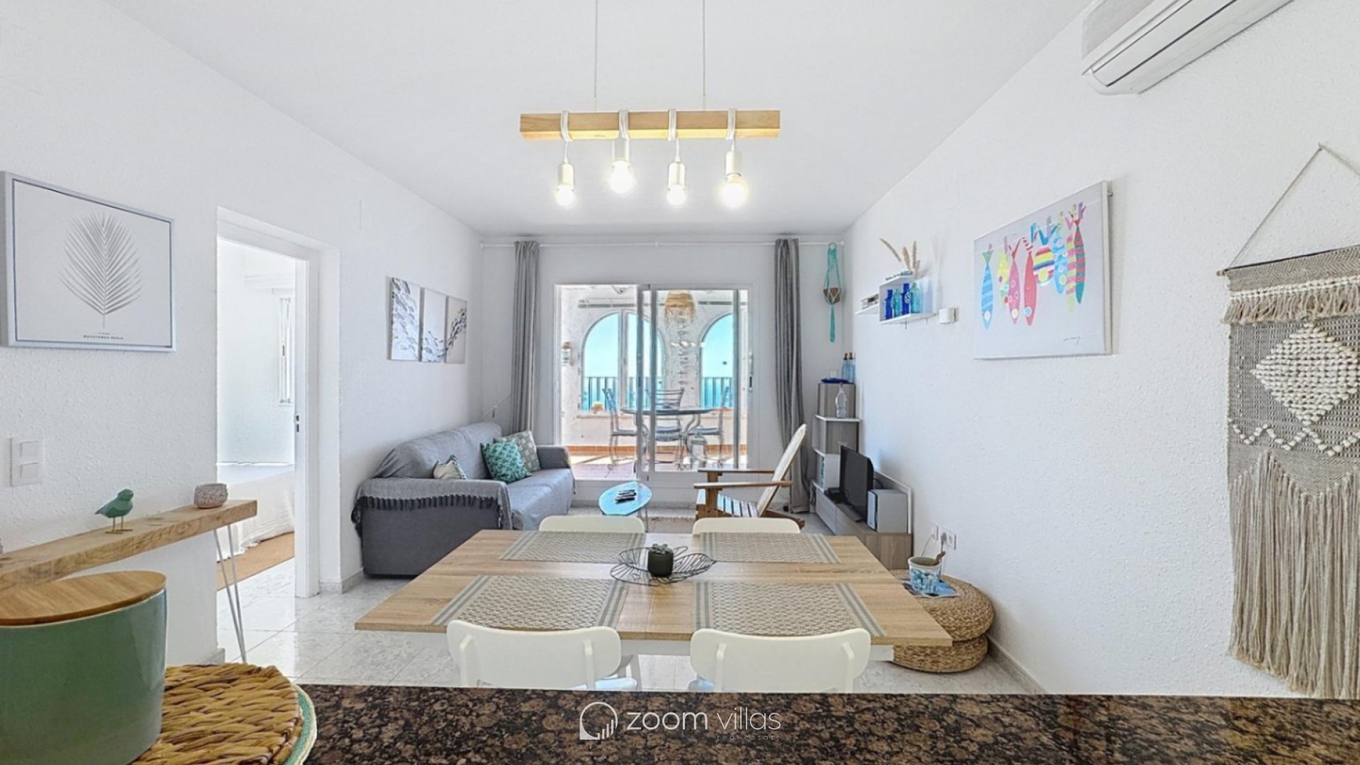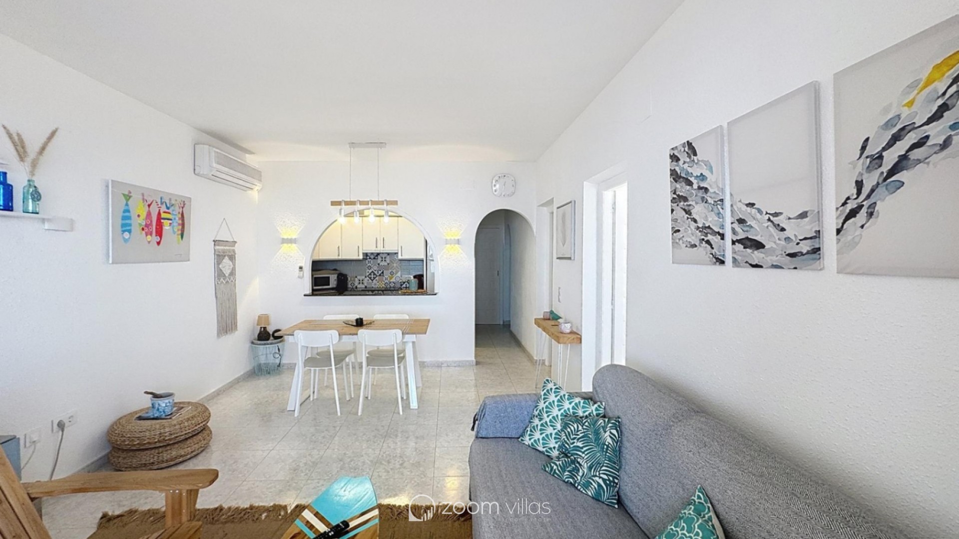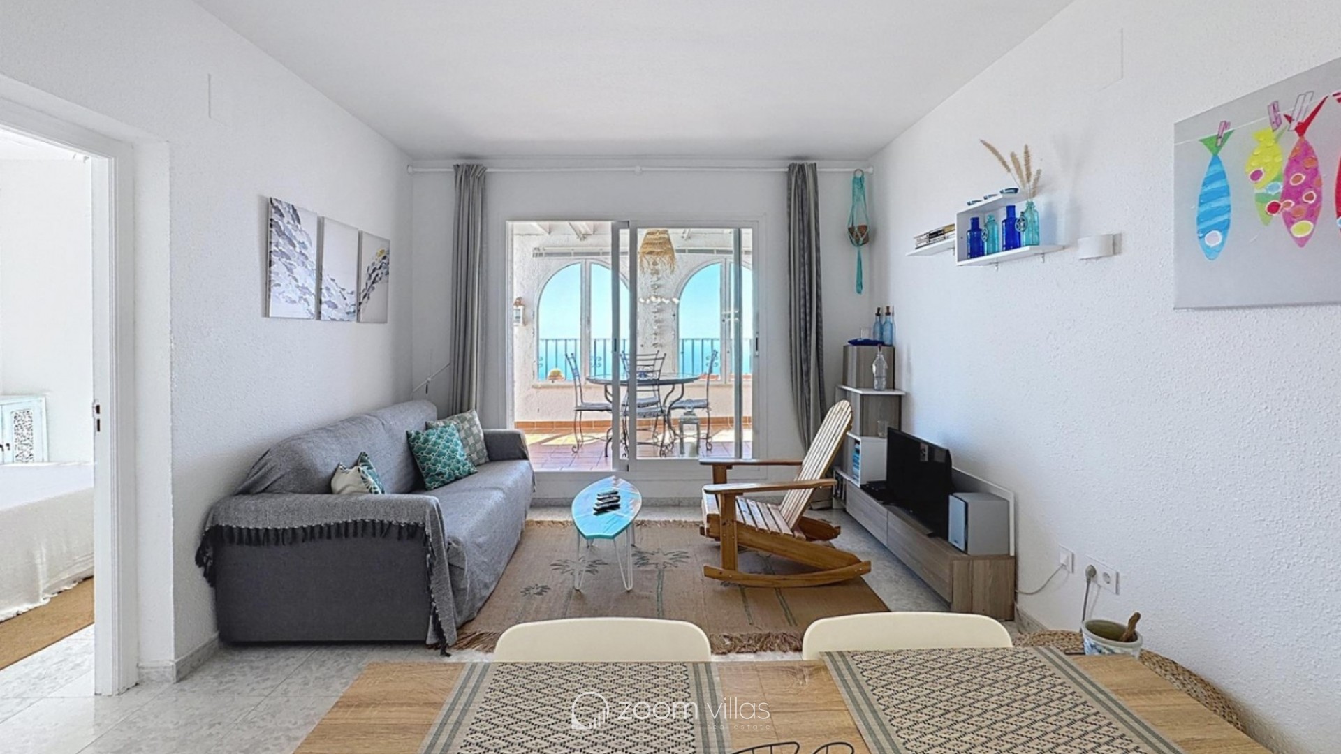 Appartment for sale with spectacular sea views in Pueblo Panorama – Cumbre del SolA property with Mediterranean charmWe present this appartment for sale in Pueblo Panorama, within the exclusive Cumbre del Sol residential complex in Benitachell, strategically located between Jávea and Moraira. With a total built area of 89 m², this property combines comfort, natural light and stunning views of the Mediterranean Sea. It comprises 69 m² of living space and a partially covered terrace of 20 m², perfect for enjoying the Costa Blanca climate all year round. Layout of the appartmentThe appartment is designed to offer maximum comfort: Two double bedrooms with fitted wardrobes.A spacious renovated bathroom with modern finishes.Fully equipped open-plan kitchen with open views to the sea.Bright living-dining room with direct access to the terrace.20 m² partially covered terrace, ideal for breakfasts facing the sea.Three storage cupboards provide extra storage space.In addition, it has hot/cold air conditioning in the living-dining room, ensuring comfort all year round. The panoramic views of the Mediterranean can be enjoyed from the master bedroom, the living room and the kitchen, making every corner of this property a private viewpoint. Pueblo Panorama: exclusivity and servicesThe appartment is part of Pueblo Panorama, a residential complex within the Dalias area of Cumbre del Sol. Here you will find a privileged environment with: 8 communal swimming pools distributed across 4 phases, all with terraces to enjoy the sun and the views.A careful distribution in phases that guarantees privacy and tranquillity.Proximity to all amenities: Lady Elisabeth International School (1 km), beaches such as Cala Moraig and Cala de los Tiestos (2-3 km), Adelfas shopping centre with Pepe La Sal supermarket, pharmacy and restaurants (2-3 km).Just a few minutes' drive away are Mas y Mas and Mercadona supermarkets and the town centres of Benitachell and Moraira.Experience Cumbre del SolThe Cumbre del Sol residential development is one of the most exclusive enclaves on the northern Costa Blanca, known for its stunning views, crystal-clear coves and strategic location between Moraira and Jávea. In addition to the tranquillity of its residential areas, it offers: Access to unique beaches and coves such as Cala Moraig and Cala Llebeig.Restaurants, supermarkets and services within walking distance.The prestigious Lady Elisabeth International School.Sports clubs with paddle tennis and tennis courts.A perfect environment for both year-round living and enjoying a second home in the Mediterranean. Would you like more information?This appartment in Pueblo Panorama is a unique opportunity to live or invest on the Costa Blanca. Contact us today and discover how your new home in Cumbre del Sol could be yours.