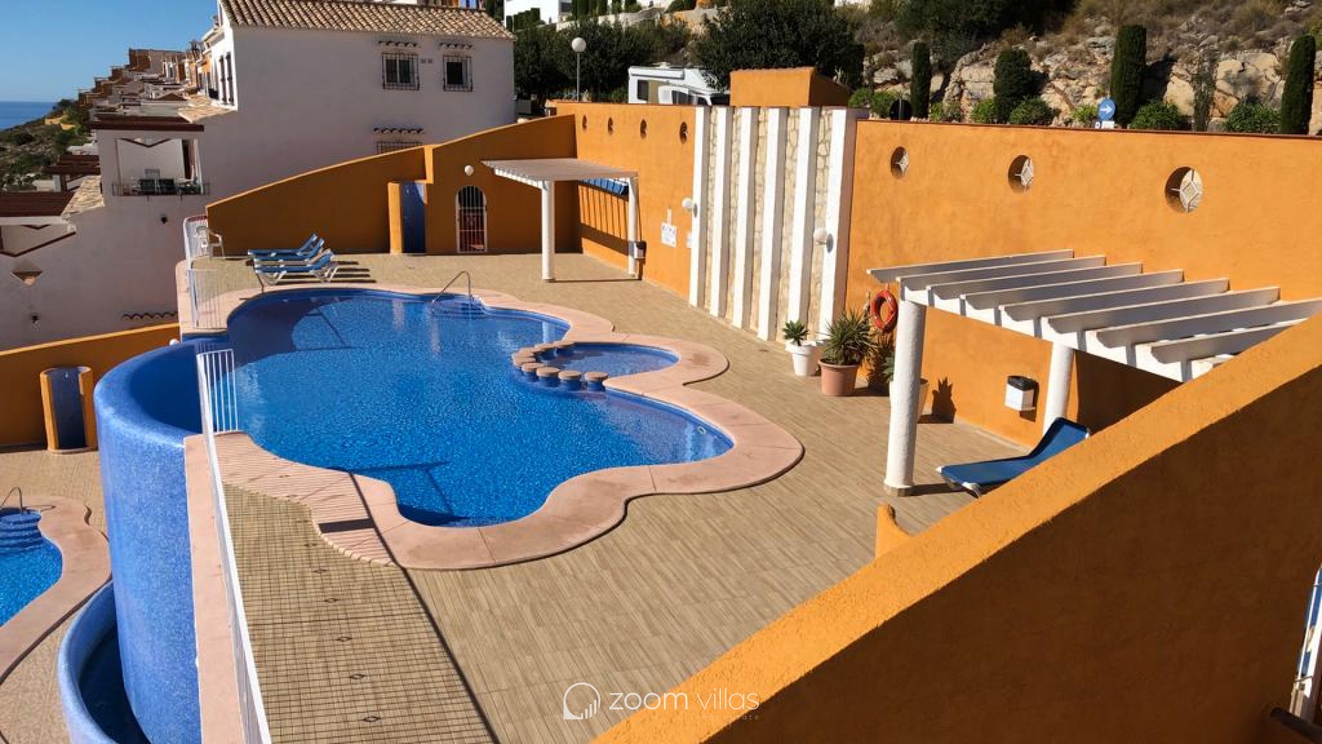 Duplex apartment with panoramic sea views in Pueblo Panorama – Cumbre del SolA unique property with the Mediterranean as its backdropWe present this exclusive duplex apartment located in the prestigious Cumbre del Sol residential complex, within the Pueblo Panorama Vistamar development, in the municipality of Benitachell, between the coastal towns of Jávea and Moraira. The property stands out for its impressive open views of the Mediterranean Sea, where on clear days you can even see the island of Ibiza on the horizon. Layout and featuresThe appartment has a total built area of 140 m², distributed as follows: 111 m² of living space20 m² of terrace 9 m² of communal areasInside we find: Three double bedrooms with fitted wardrobes.Two full bathrooms, functional and bright.Spacious living/dining room with access to the terrace.Open-plan kitchen, practical and well laid out.Three storage cupboards in the entrance hall, providing ample storage space.Spacious terrace to enjoy the spectacular sea views.The sea can be seen from almost every room in the property, making every day a unique experience. In addition, the appartment is equipped with hot and cold air conditioning in all bedrooms and in the living-dining room, ensuring comfort throughout the year. Comfort and exclusivity in Pueblo PanoramaThe Pueblo Panorama residential complex offers a well-maintained environment, with several uniquely designed communal swimming pools, sunny terraces and a peaceful, family atmosphere, ideal for year-round living or as a second home on the Costa Blanca. An opportunity in Cumbre del SolThis duplex is perfect for those looking for a property with Mediterranean charm, excellent qualities and views that you will fall in love with at first sight. Would you like to see this duplex apartment in person? Contact us today and we will be happy to arrange a viewing so you can discover everything this property has to offer. Residential area: Pueblo Panorama – Cumbre del SolPueblo Panorama is located within the prestigious Cumbre del Sol development in Benitachell. Its apartments are characterised by their south-east orientation, allowing you to enjoy sunshine throughout the day and spectacular views of the Mediterranean. The complex has 8 communal swimming pools spread over 4 exclusive locations, each with a double pool and large terraces for relaxation. The location is strategic: 1 km from the prestigious Lady Elizabeth School international school.2-3 km from the beaches and coves of Moraig and Los Tiestos.A few minutes from the Adelfas Shopping Centre with Pepe la Sal supermarket, pharmacy, La Cumbre restaurant and other services.6-7 km from the town centre and the beaches of Moraira.11 km from the famous Arenal beach in Jávea.A place that combines nature, services and tranquillity, ideal both as a permanent residence and for enjoying holidays on the northern Costa Blanca.