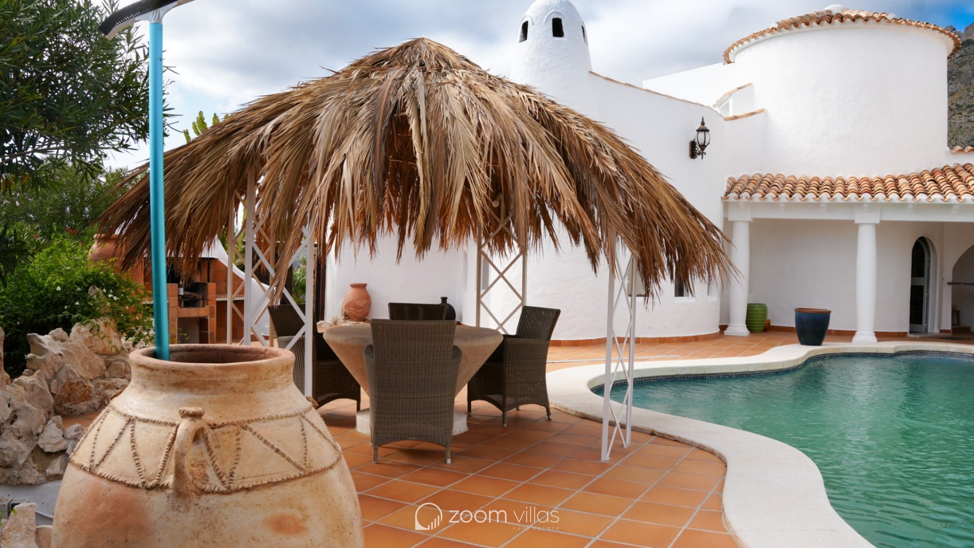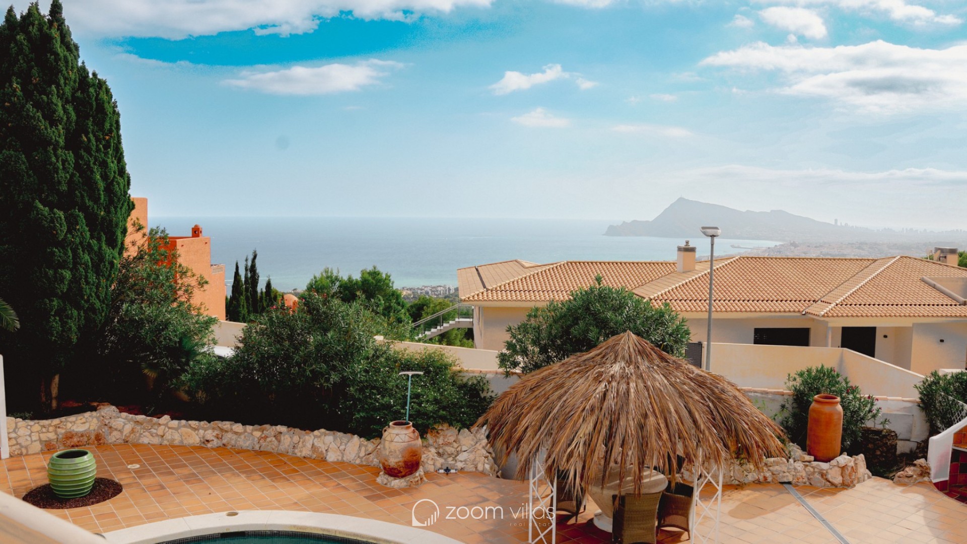 Located in the exclusive area of Altea la Vella, this Mediterranean-style villa combines charm, privacy, and comfort in a spectacular setting. The property sits on a spacious, private plot, surrounded by greenery and offering panoramic views of the sea and mountains. The villa boasts two separate pools, making it a unique and special residence. It also features a separate two-story apartment, with an open-plan bedroom on the ground floor and a living room with a kitchen and terrace upstairs, offering fantastic sea views. The main house also has two floors: the ground floor houses all the main rooms, while the upper floor is reserved for the master suite, with a private bathroom and a stunning terrace with spectacular views. Outside, the property offers spacious green areas and space for outdoor enjoyment, including a summer kitchen with a small poolside snack bar, ideal for gatherings with friends or family. This villa combines unique character, comfort, and a welcoming Mediterranean style, making it the perfect opportunity for those seeking an exclusive property in Altea la Vella.