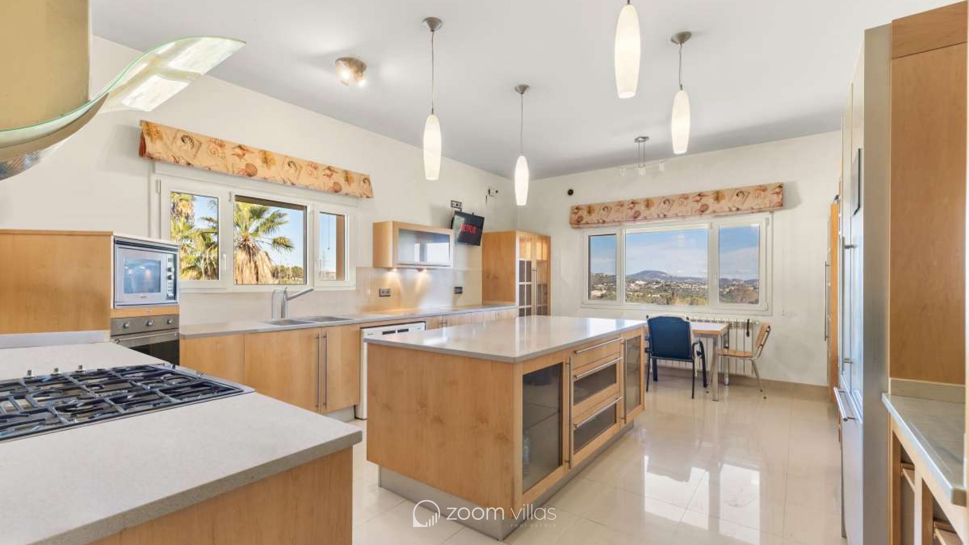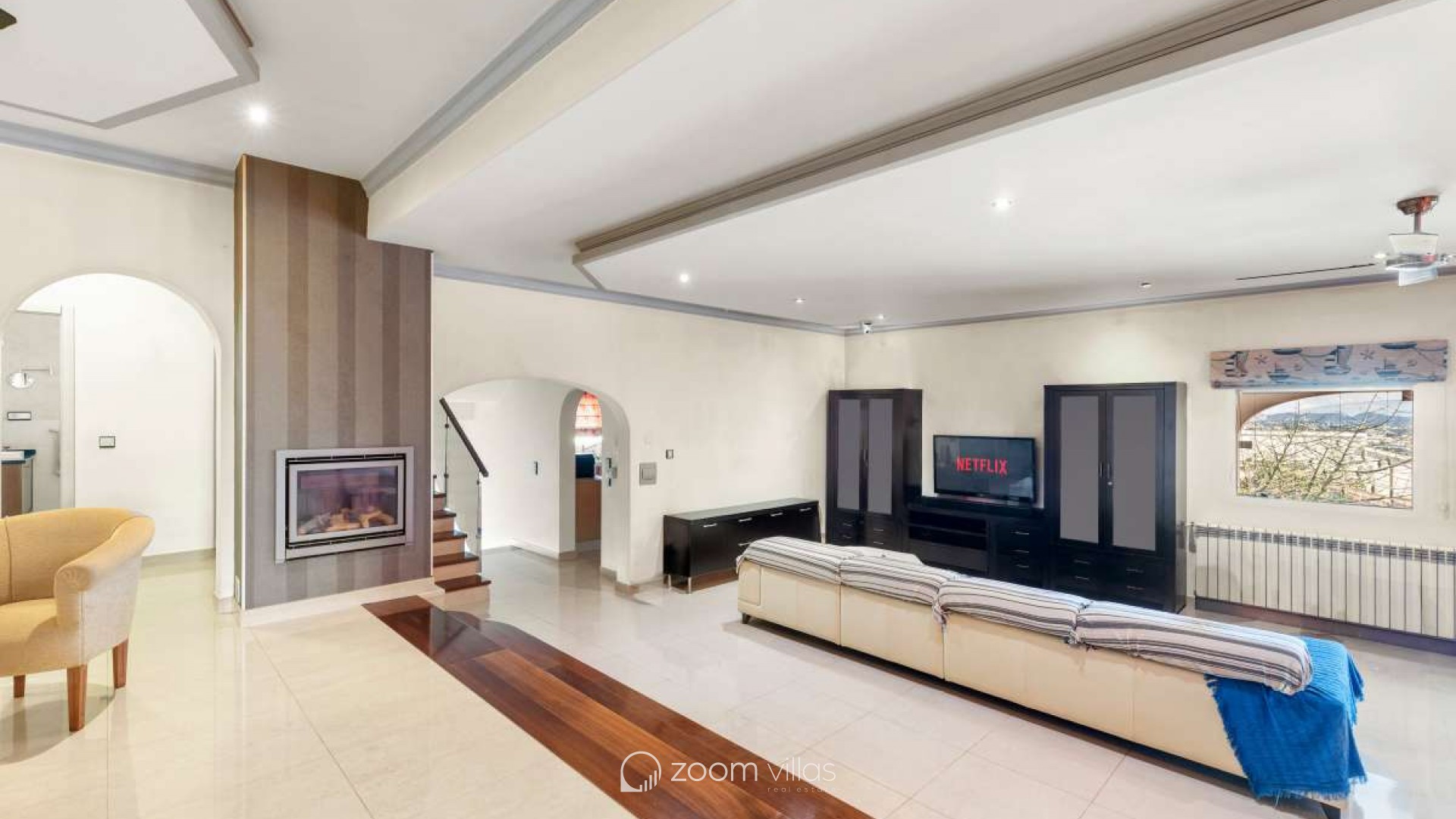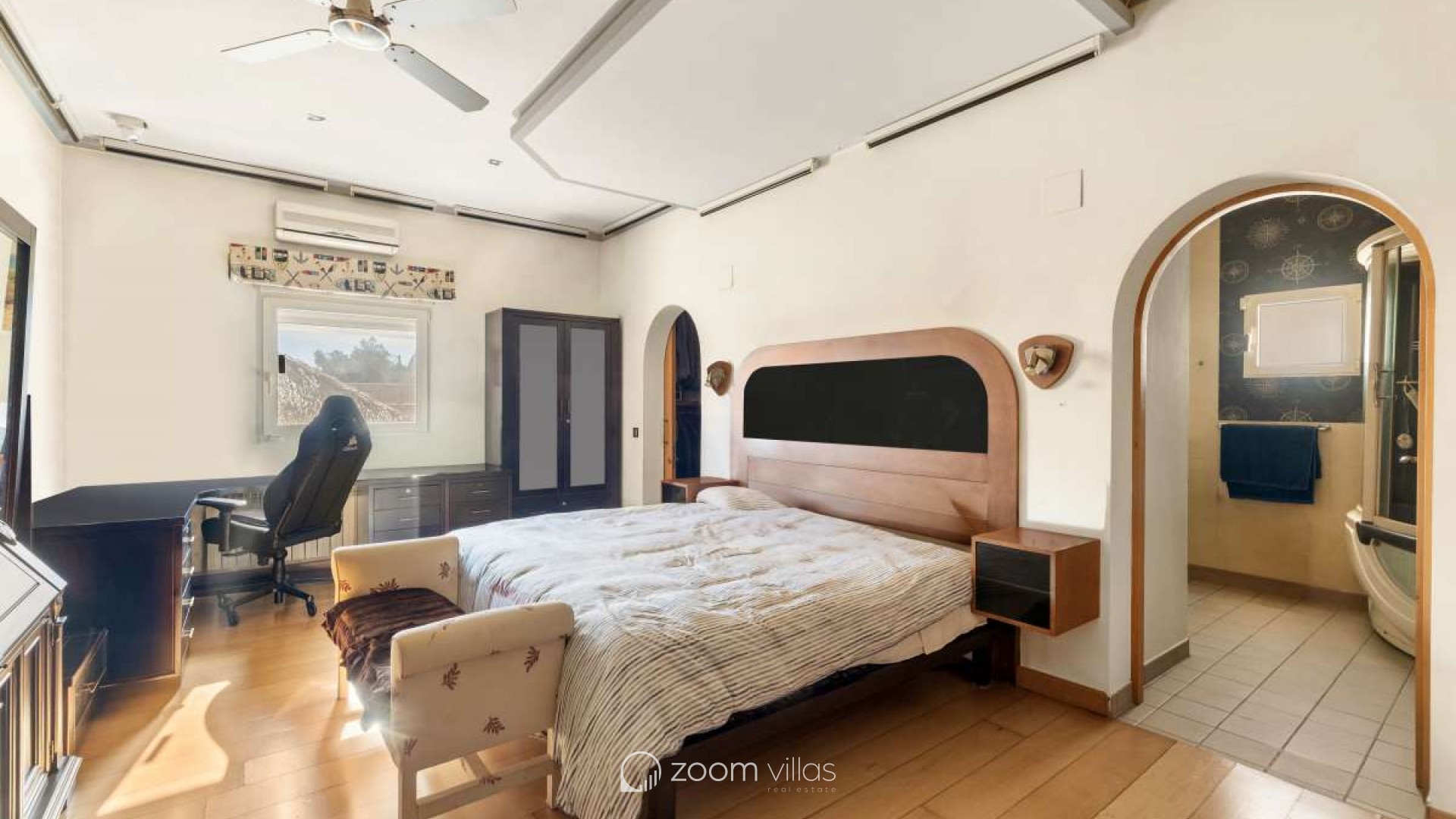 Perched in an elevated, peaceful setting, this villa enjoys full privacy and some of the most breathtaking sea views on the entire coastline — a place where the horizon opens wide and the landscape becomes part of the home.This distinctive property stands out for its extraordinary dimensions, generous outdoor spaces, and exceptional potential. While it would benefit from renovation, the solid structure and thoughtful architectural details make it a rare opportunity for those looking to create a truly remarkable residence.The villa boasts 180-degree panoramic views of the Mediterranean, reaching as far as Ibiza on clear days — an incredible backdrop for both daily living and entertaining.Upon entering, you are greeted by a charming bar area that seamlessly connects to the spectacular double-height living room, flooded with natural light through floor-to-ceiling windows that open directly to the terrace and pool. On this main level, you will also find a spacious kitchen with terrace access, a primary bedroom with dressing room and en-suite bathroom, and an additional bedroom with a full bathroom.The lower floor features a versatile space, ideal for guests or independent living. This level includes a large living room, bedroom, gym (convertible into another bedroom), full bathroom with direct access to the pool, and a closed garage. With its own independent entrance, it offers complete privacy.The top floor is dedicated to wellness, featuring a sauna, jacuzzi, and a terrace with breathtaking sea views — the perfect retreat.The exterior is equally impressive: a strategically positioned pool to make the most of the views, a fully equipped outdoor kitchen with oven and barbecue, and a parking area for at least 15 vehicles. The plot has two separate entrances, both with automatic gates, ensuring easy access and convenience.As a major additional benefit, the villa includes a 30 kW solar panel installation, significantly reducing energy costs while supporting the property’s extensive spaces and facilities.In summary, this is a one-of-a-kind villa that blends scale, character, and outstanding potential — an ideal choice for those seeking a unique home with unmatched views and exceptional possibilities for future value.