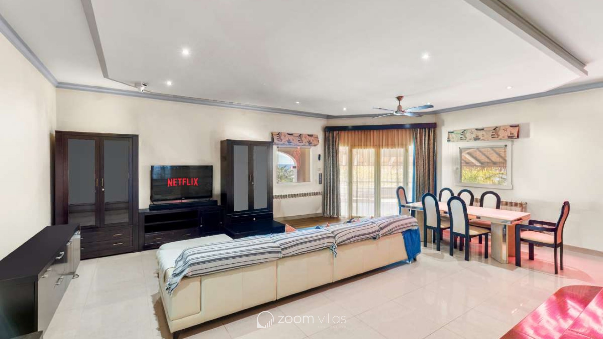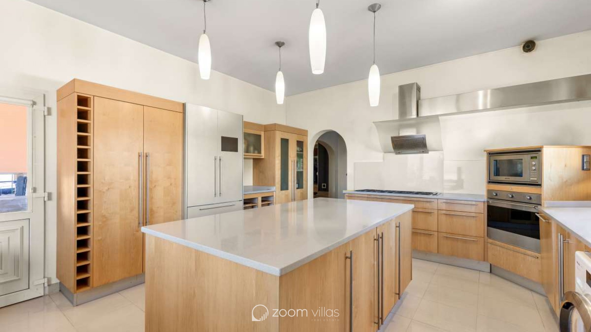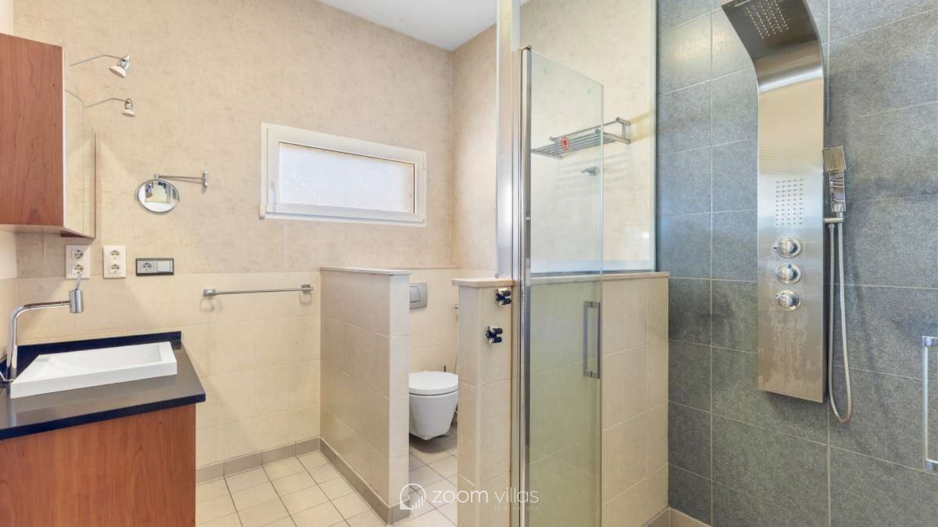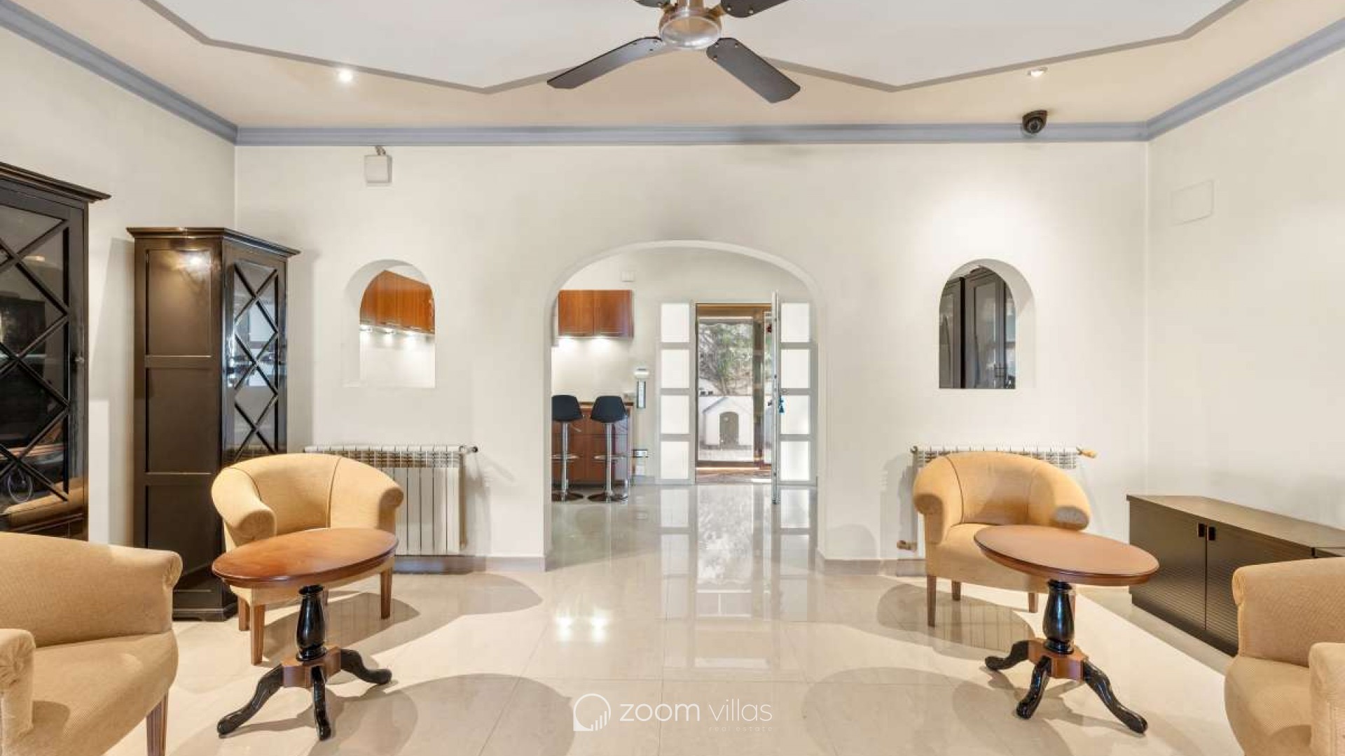 Perched in an elevated, peaceful setting, this villa enjoys full privacy and some of the most breathtaking sea views on the entire coastline — a place where the horizon opens wide and the landscape becomes part of the home.This distinctive property stands out for its extraordinary dimensions, generous outdoor spaces, and exceptional potential. While it would benefit from renovation, the solid structure and thoughtful architectural details make it a rare opportunity for those looking to create a truly remarkable residence.The villa boasts 180-degree panoramic views of the Mediterranean, reaching as far as Ibiza on clear days — an incredible backdrop for both daily living and entertaining.Upon entering, you are greeted by a charming bar area that seamlessly connects to the spectacular double-height living room, flooded with natural light through floor-to-ceiling windows that open directly to the terrace and pool. On this main level, you will also find a spacious kitchen with terrace access, a primary bedroom with dressing room and en-suite bathroom, and an additional bedroom with a full bathroom.The lower floor features a versatile space, ideal for guests or independent living. This level includes a large living room, bedroom, gym (convertible into another bedroom), full bathroom with direct access to the pool, and a closed garage. With its own independent entrance, it offers complete privacy.The top floor is dedicated to wellness, featuring a sauna, jacuzzi, and a terrace with breathtaking sea views — the perfect retreat.The exterior is equally impressive: a strategically positioned pool to make the most of the views, a fully equipped outdoor kitchen with oven and barbecue, and a parking area for at least 15 vehicles. The plot has two separate entrances, both with automatic gates, ensuring easy access and convenience.As a major additional benefit, the villa includes a 30 kW solar panel installation, significantly reducing energy costs while supporting the property’s extensive spaces and facilities.In summary, this is a one-of-a-kind villa that blends scale, character, and outstanding potential — an ideal choice for those seeking a unique home with unmatched views and exceptional possibilities for future value.