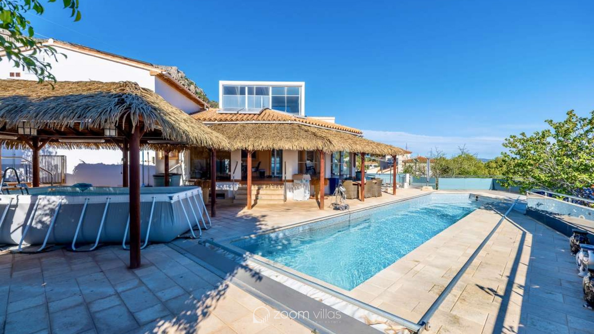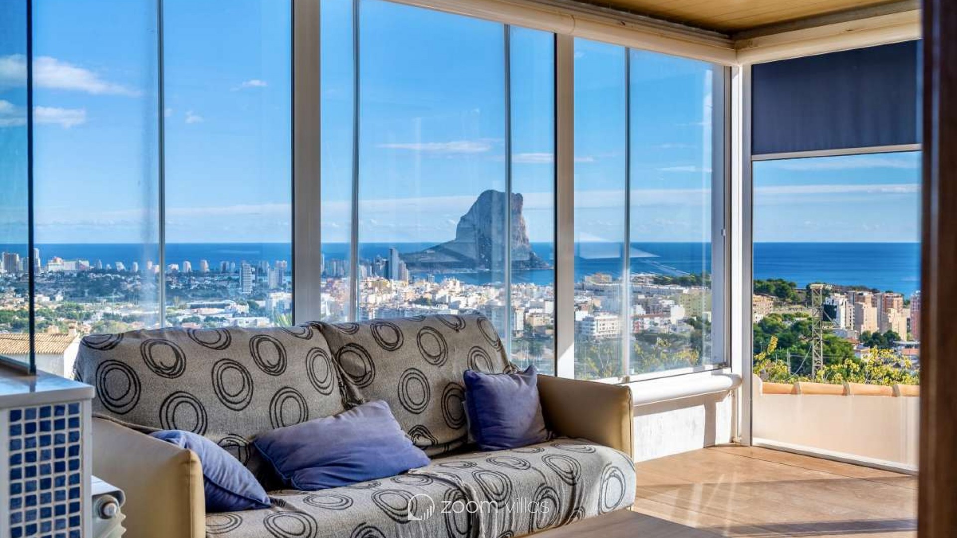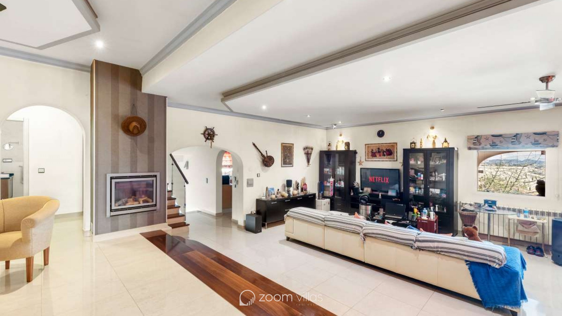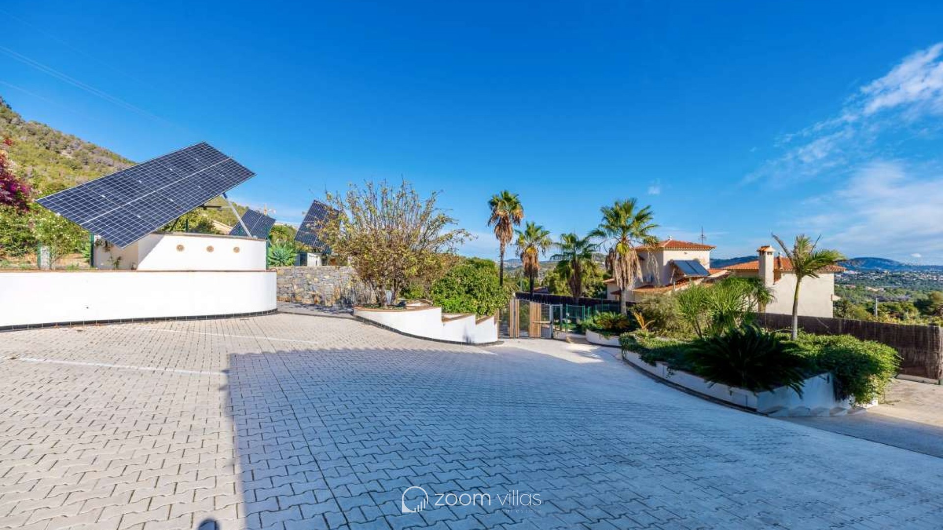 Perched in an elevated, peaceful setting, this villa enjoys full privacy and some of the most breathtaking sea views on the entire coastline — a place where the horizon opens wide and the landscape becomes part of the home.This distinctive property stands out for its extraordinary dimensions, generous outdoor spaces, and exceptional potential. While it would benefit from renovation, the solid structure and thoughtful architectural details make it a rare opportunity for those looking to create a truly remarkable residence.The villa boasts 180-degree panoramic views of the Mediterranean, reaching as far as Ibiza on clear days — an incredible backdrop for both daily living and entertaining.Upon entering, you are greeted by a charming bar area that seamlessly connects to the spectacular double-height living room, flooded with natural light through floor-to-ceiling windows that open directly to the terrace and pool. On this main level, you will also find a spacious kitchen with terrace access, a primary bedroom with dressing room and en-suite bathroom, and an additional bedroom with a full bathroom.The lower floor features a versatile space, ideal for guests or independent living. This level includes a large living room, bedroom, gym (convertible into another bedroom), full bathroom with direct access to the pool, and a closed garage. With its own independent entrance, it offers complete privacy.The top floor is dedicated to wellness, featuring a sauna, jacuzzi, and a terrace with breathtaking sea views — the perfect retreat.The exterior is equally impressive: a strategically positioned pool to make the most of the views, a fully equipped outdoor kitchen with oven and barbecue, and a parking area for at least 15 vehicles. The plot has two separate entrances, both with automatic gates, ensuring easy access and convenience.As a major additional benefit, the villa includes a 30 kW solar panel installation, significantly reducing energy costs while supporting the property’s extensive spaces and facilities.In summary, this is a one-of-a-kind villa that blends scale, character, and outstanding potential — an ideal choice for those seeking a unique home with unmatched views and exceptional possibilities for future value.