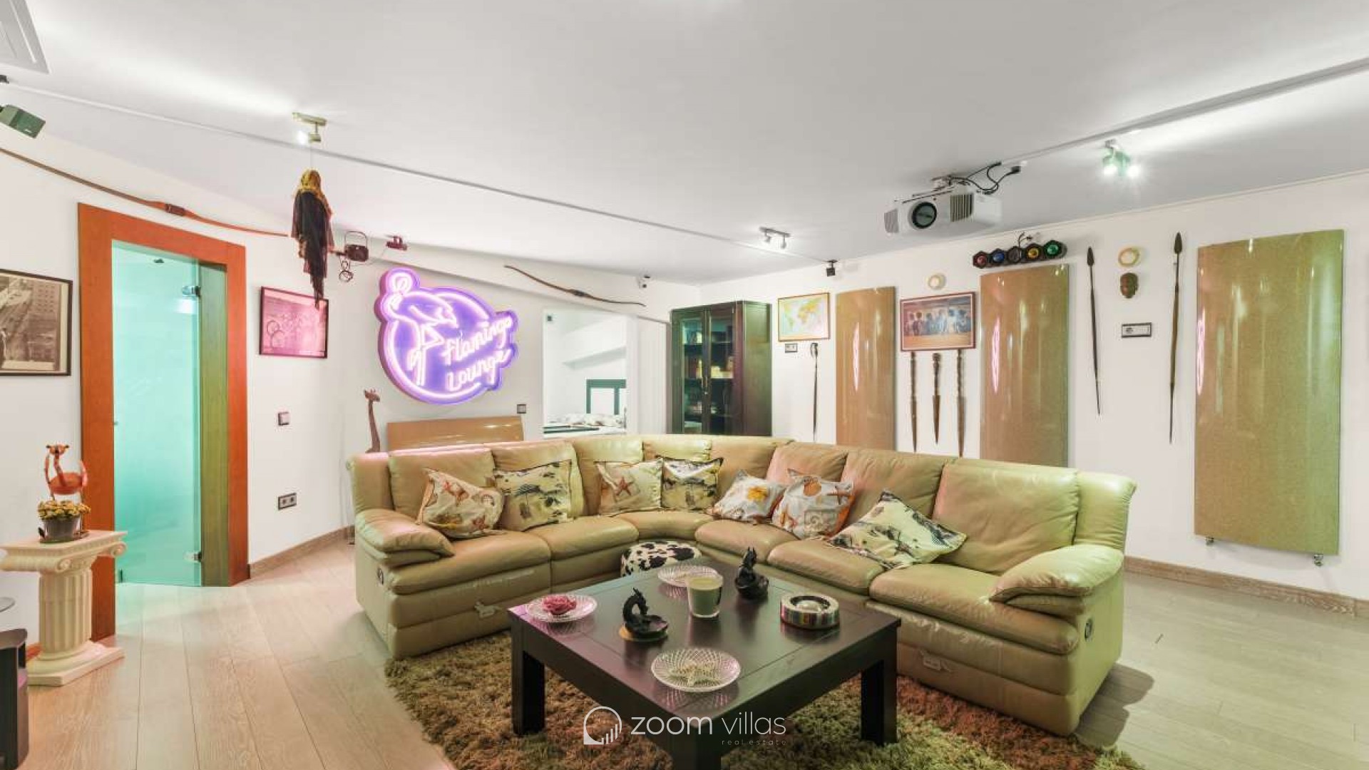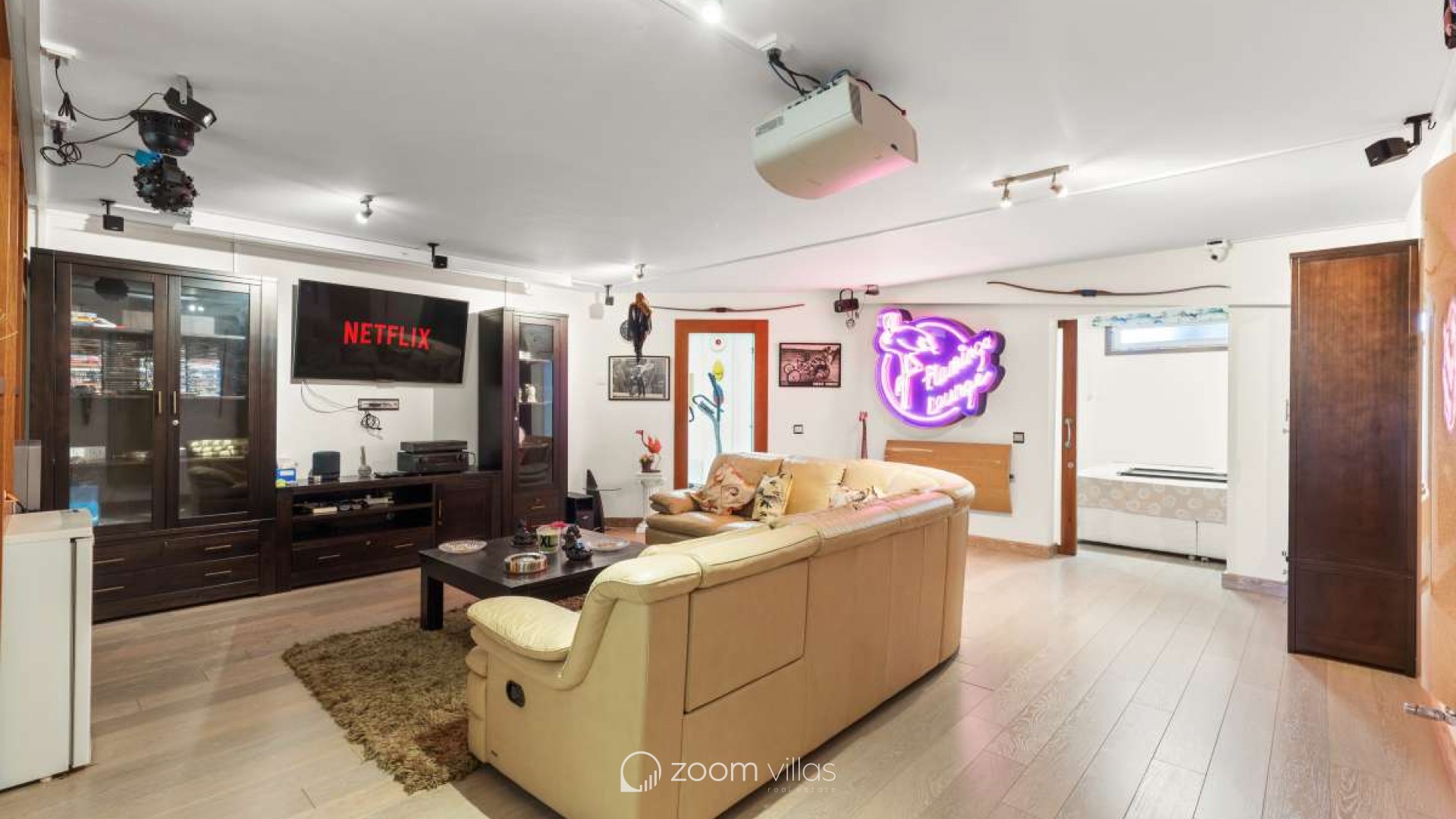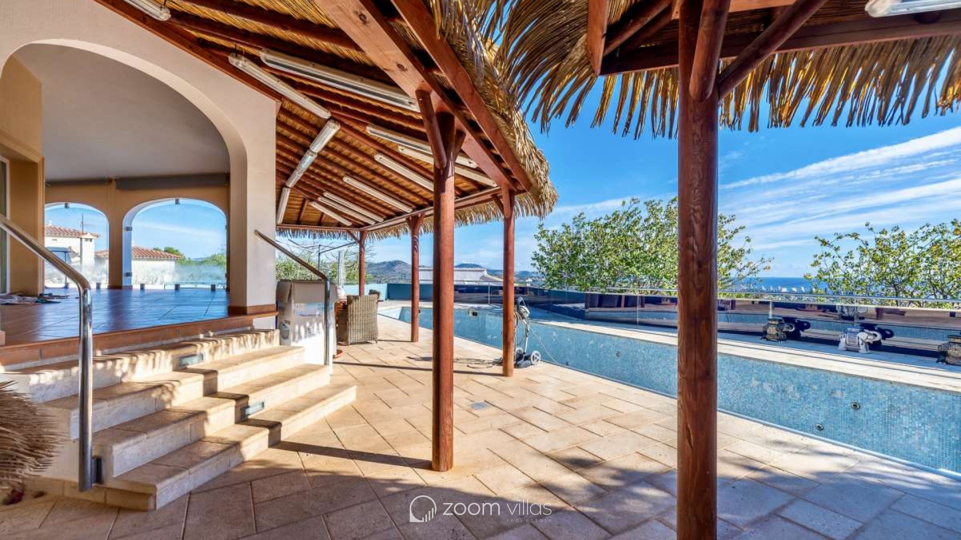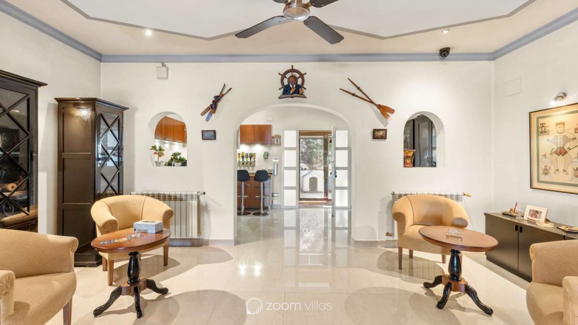 Perched in an elevated, peaceful setting, this villa enjoys full privacy and some of the most breathtaking sea views on the entire coastline — a place where the horizon opens wide and the landscape becomes part of the home.This distinctive property stands out for its extraordinary dimensions, generous outdoor spaces, and exceptional potential. While it would benefit from renovation, the solid structure and thoughtful architectural details make it a rare opportunity for those looking to create a truly remarkable residence.The villa boasts 180-degree panoramic views of the Mediterranean, reaching as far as Ibiza on clear days — an incredible backdrop for both daily living and entertaining.Upon entering, you are greeted by a charming bar area that seamlessly connects to the spectacular double-height living room, flooded with natural light through floor-to-ceiling windows that open directly to the terrace and pool. On this main level, you will also find a spacious kitchen with terrace access, a primary bedroom with dressing room and en-suite bathroom, and an additional bedroom with a full bathroom.The lower floor features a versatile space, ideal for guests or independent living. This level includes a large living room, bedroom, gym (convertible into another bedroom), full bathroom with direct access to the pool, and a closed garage. With its own independent entrance, it offers complete privacy.The top floor is dedicated to wellness, featuring a sauna, jacuzzi, and a terrace with breathtaking sea views — the perfect retreat.The exterior is equally impressive: a strategically positioned pool to make the most of the views, a fully equipped outdoor kitchen with oven and barbecue, and a parking area for at least 15 vehicles. The plot has two separate entrances, both with automatic gates, ensuring easy access and convenience.As a major additional benefit, the villa includes a 30 kW solar panel installation, significantly reducing energy costs while supporting the property’s extensive spaces and facilities.In summary, this is a one-of-a-kind villa that blends scale, character, and outstanding potential — an ideal choice for those seeking a unique home with unmatched views and exceptional possibilities for future value.