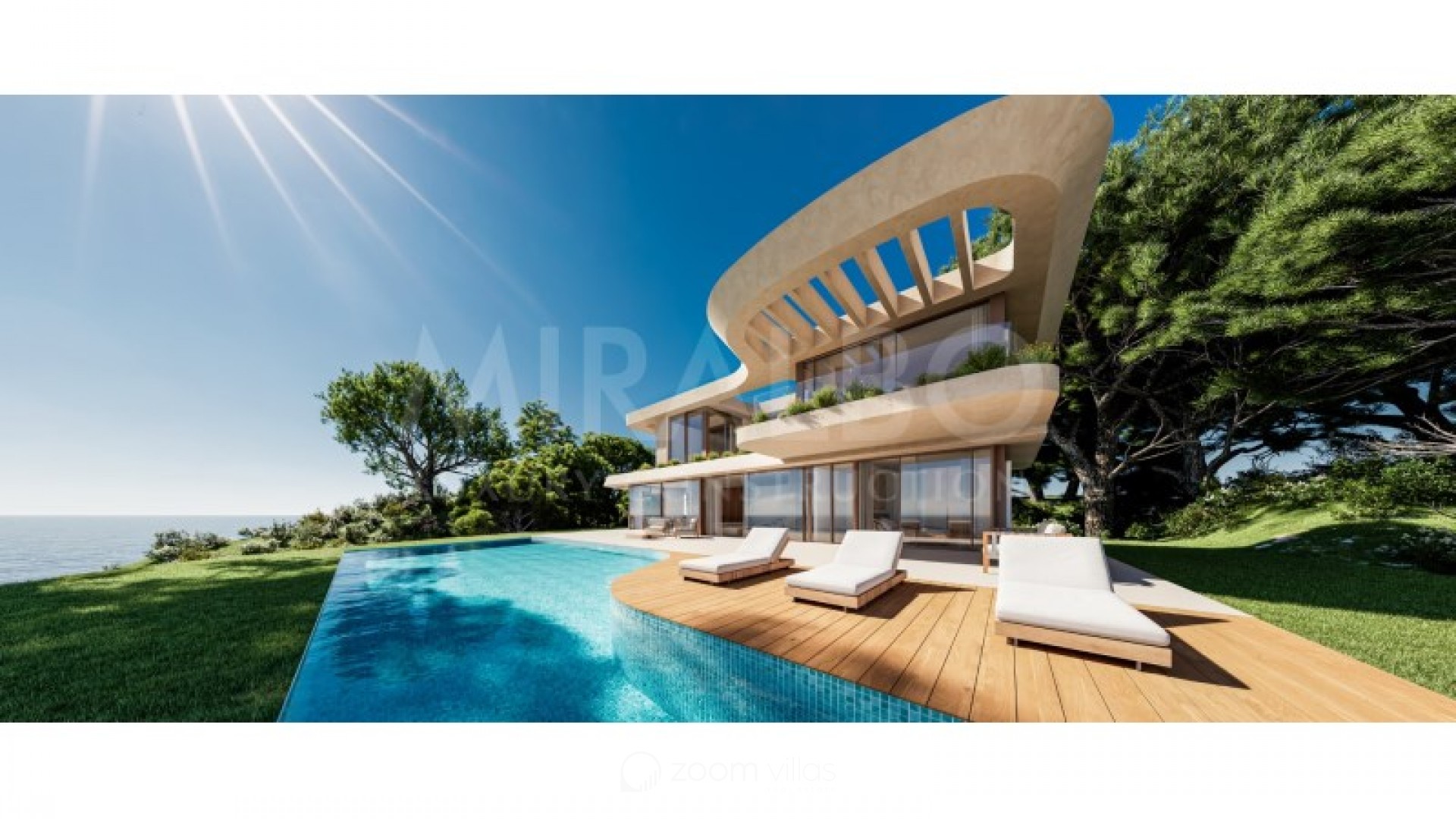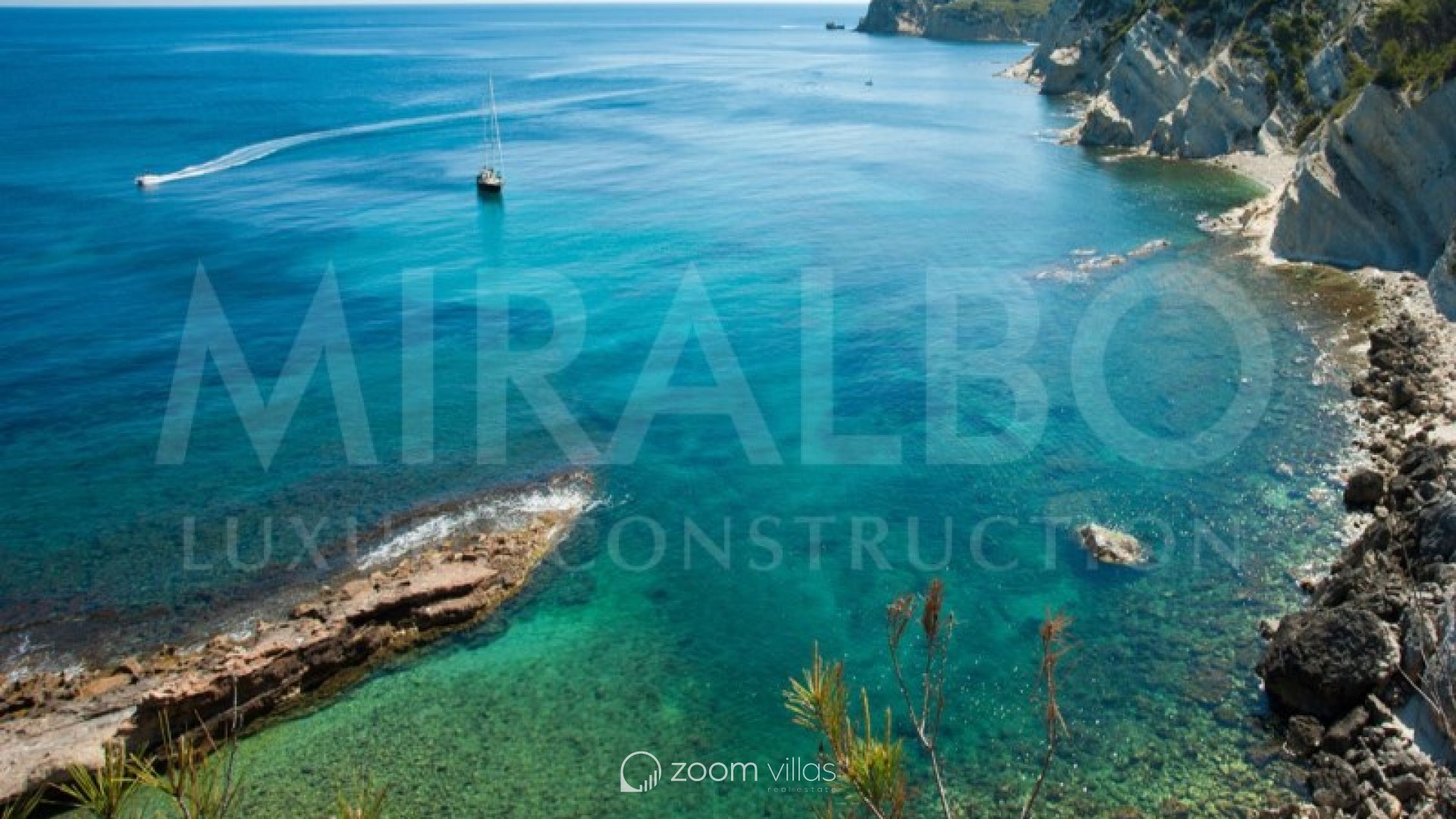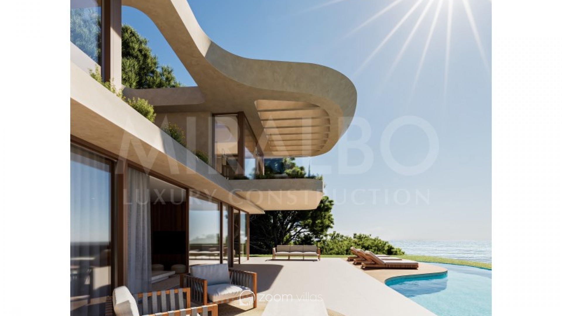 We present an exclusive MIRALBO project located in the prestigious area of Ambolo, Jávea, a privileged enclave that offers spectacular views of the sea, as if it were a frontline, as well as a south orientation that guarantees natural light throughout the day. This contemporary design villa combines modern and organic lines, blending harmoniously into the Mediterranean environment to offer a unique experience of luxury and comfort. With a living area of 364.94 m², plus 169.28 m² of terrace and pool, with a total of 550.14 m² built, this property has been carefully designed to maximize space and functionality. It has 4 en-suite bedrooms with fitted wardrobes and electric blinds, an elegant fully equipped kitchen with high-end appliances, and a hot/cold air conditioning system with independent control in each room to guarantee maximum comfort. The optimized technical room and the private garage with capacity for one car complete the details of this exceptional property. The exterior has been conceived as a refuge to enjoy the Mediterranean environment. The terrace connects perfectly with a designer pool that seems to merge with the sea views, while the landscaped garden, carefully designed with native plants, trees, automatic irrigation, and decorative lighting, adds a touch of serenity to the whole. The project is delivered completely turnkey, using the highest quality materials characteristic of MIRALBO, and offers the possibility of customising every detail to suit the taste and needs of its future owner. This is a unique opportunity to acquire a home that combines luxury, exclusivity, and design in one of the most desirable locations in Jávea, ideal for enjoying the Mediterranean lifestyle at its best. #ref:MIR0157