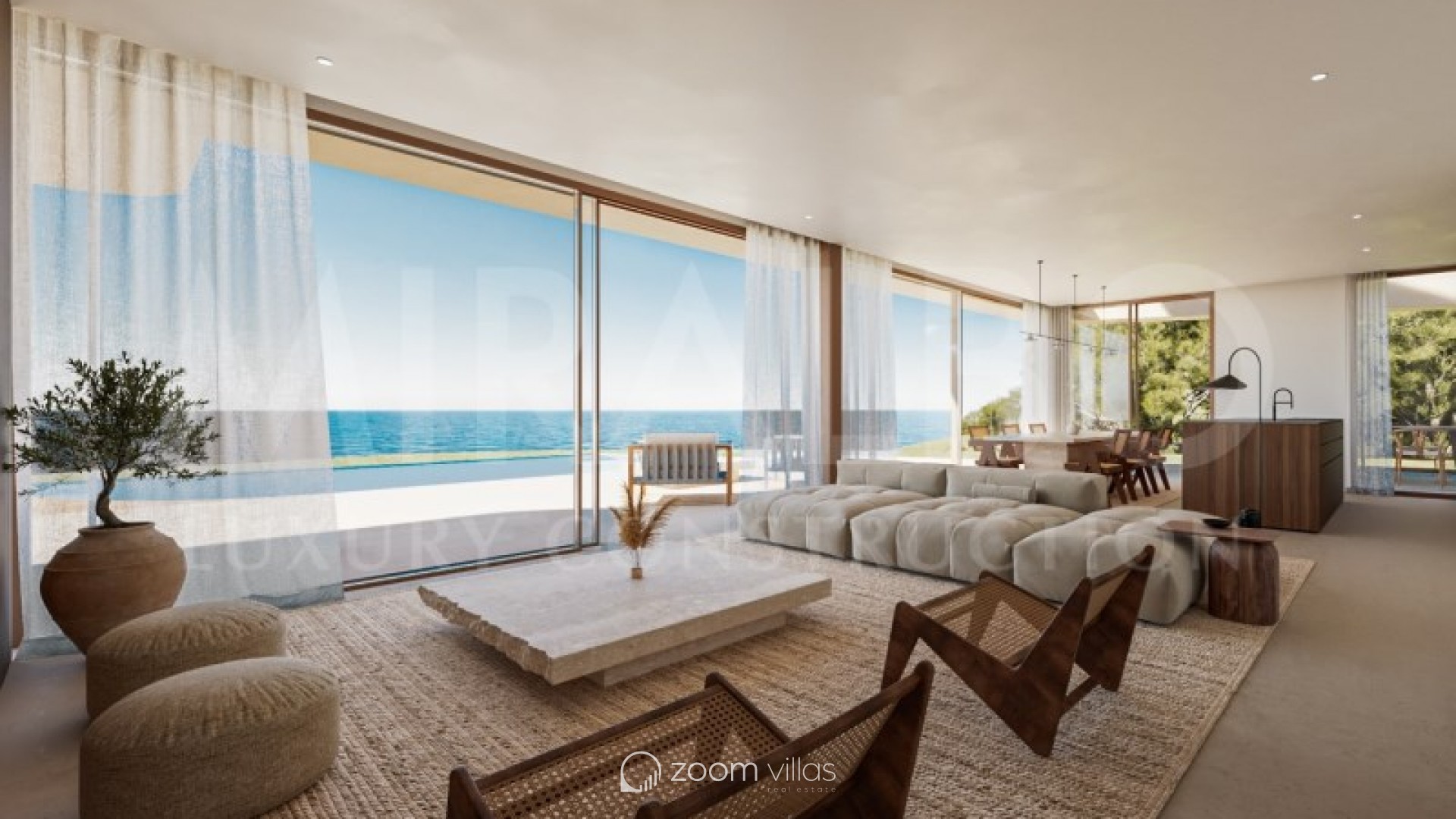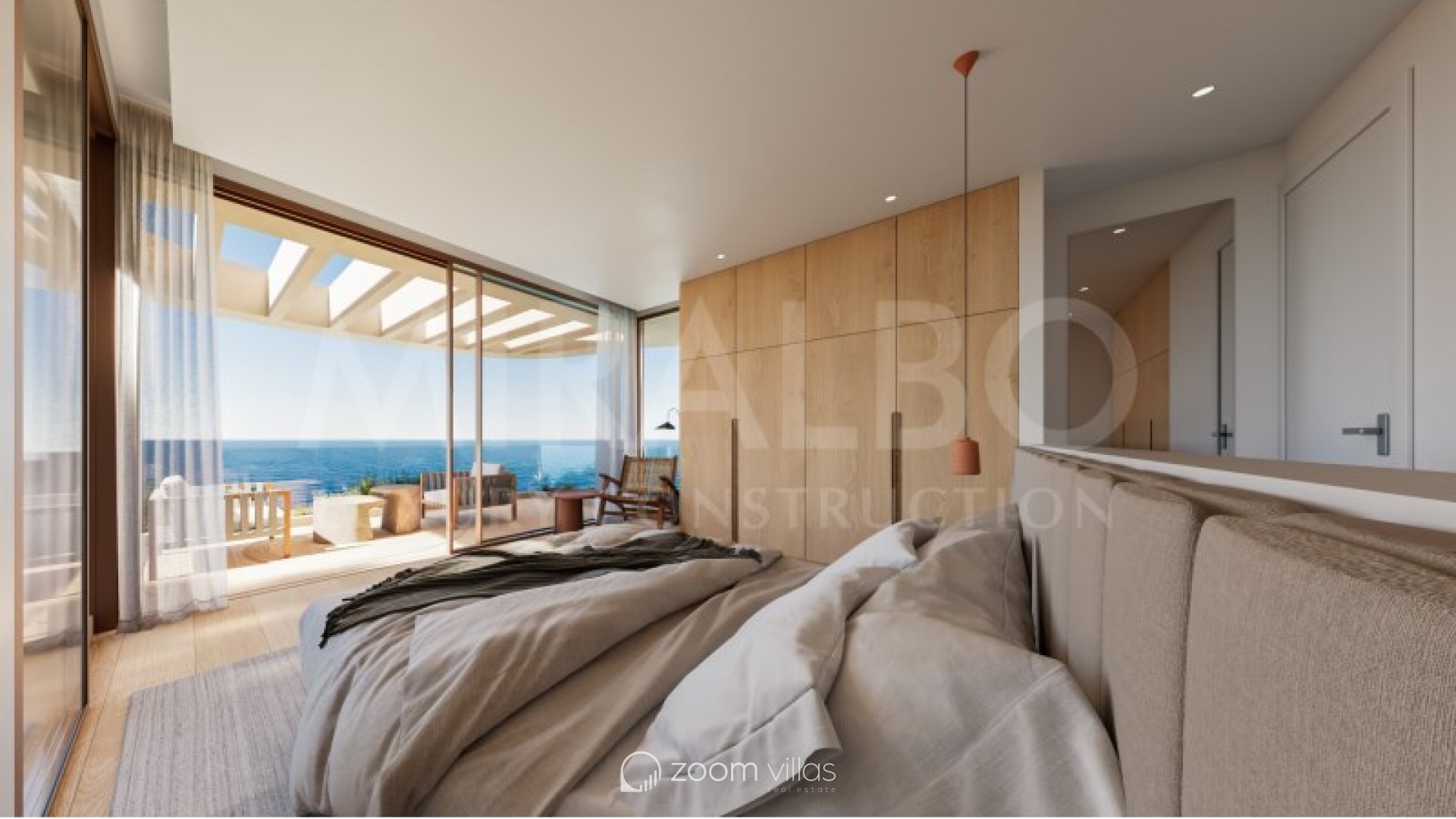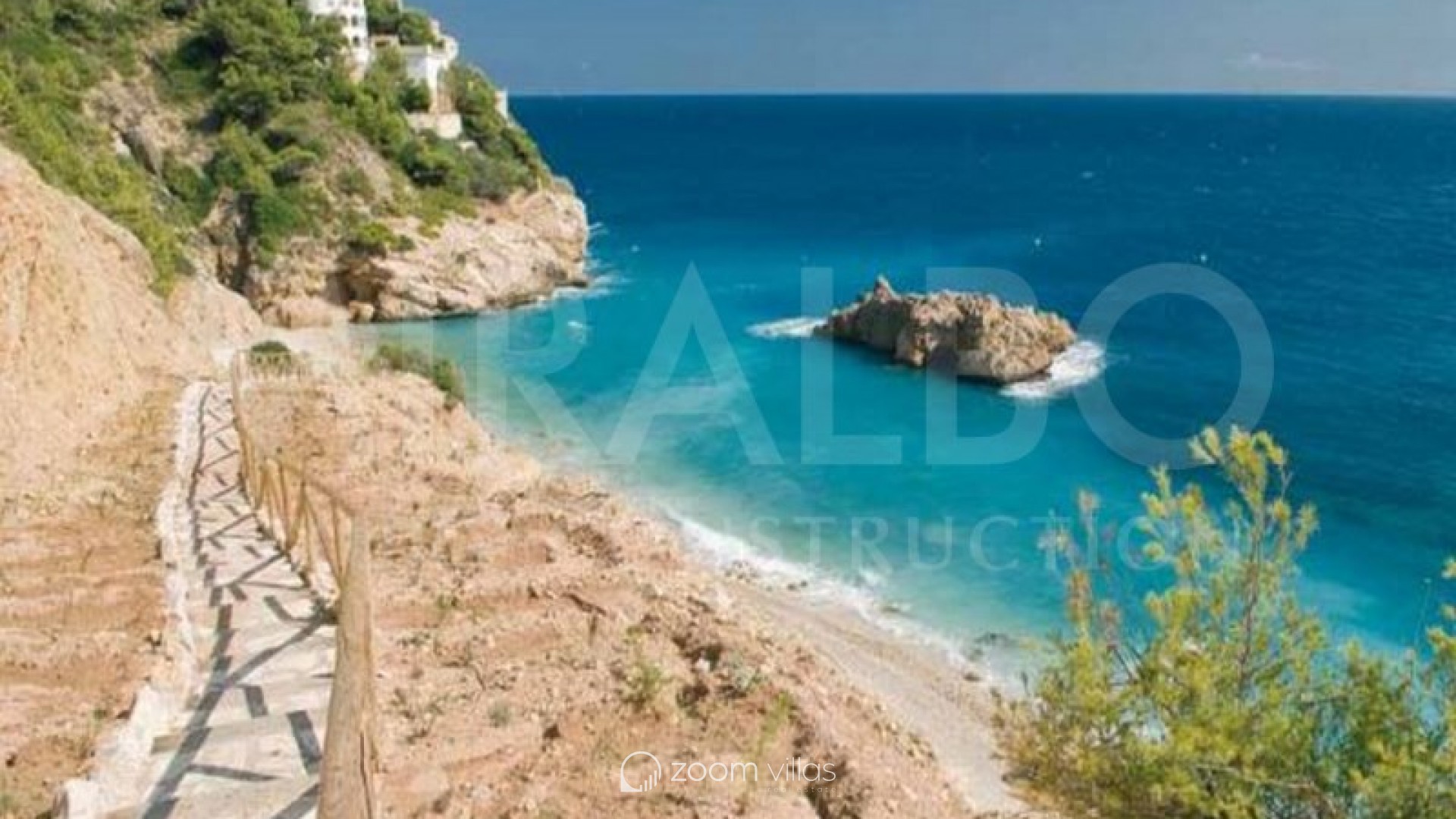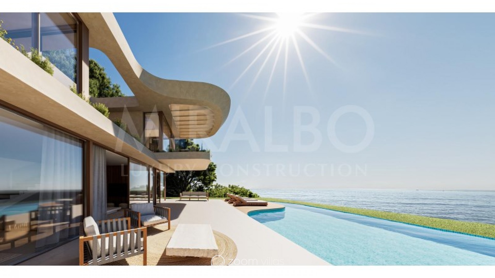 We present an exclusive MIRALBO project located in the prestigious area of Ambolo, Jávea, a privileged enclave that offers spectacular views of the sea, as if it were a frontline, as well as a south orientation that guarantees natural light throughout the day. This contemporary design villa combines modern and organic lines, blending harmoniously into the Mediterranean environment to offer a unique experience of luxury and comfort. With a living area of 364.94 m², plus 169.28 m² of terrace and pool, with a total of 550.14 m² built, this property has been carefully designed to maximize space and functionality. It has 4 en-suite bedrooms with fitted wardrobes and electric blinds, an elegant fully equipped kitchen with high-end appliances, and a hot/cold air conditioning system with independent control in each room to guarantee maximum comfort. The optimized technical room and the private garage with capacity for one car complete the details of this exceptional property. The exterior has been conceived as a refuge to enjoy the Mediterranean environment. The terrace connects perfectly with a designer pool that seems to merge with the sea views, while the landscaped garden, carefully designed with native plants, trees, automatic irrigation, and decorative lighting, adds a touch of serenity to the whole. The project is delivered completely turnkey, using the highest quality materials characteristic of MIRALBO, and offers the possibility of customising every detail to suit the taste and needs of its future owner. This is a unique opportunity to acquire a home that combines luxury, exclusivity, and design in one of the most desirable locations in Jávea, ideal for enjoying the Mediterranean lifestyle at its best. #ref:MIR0157