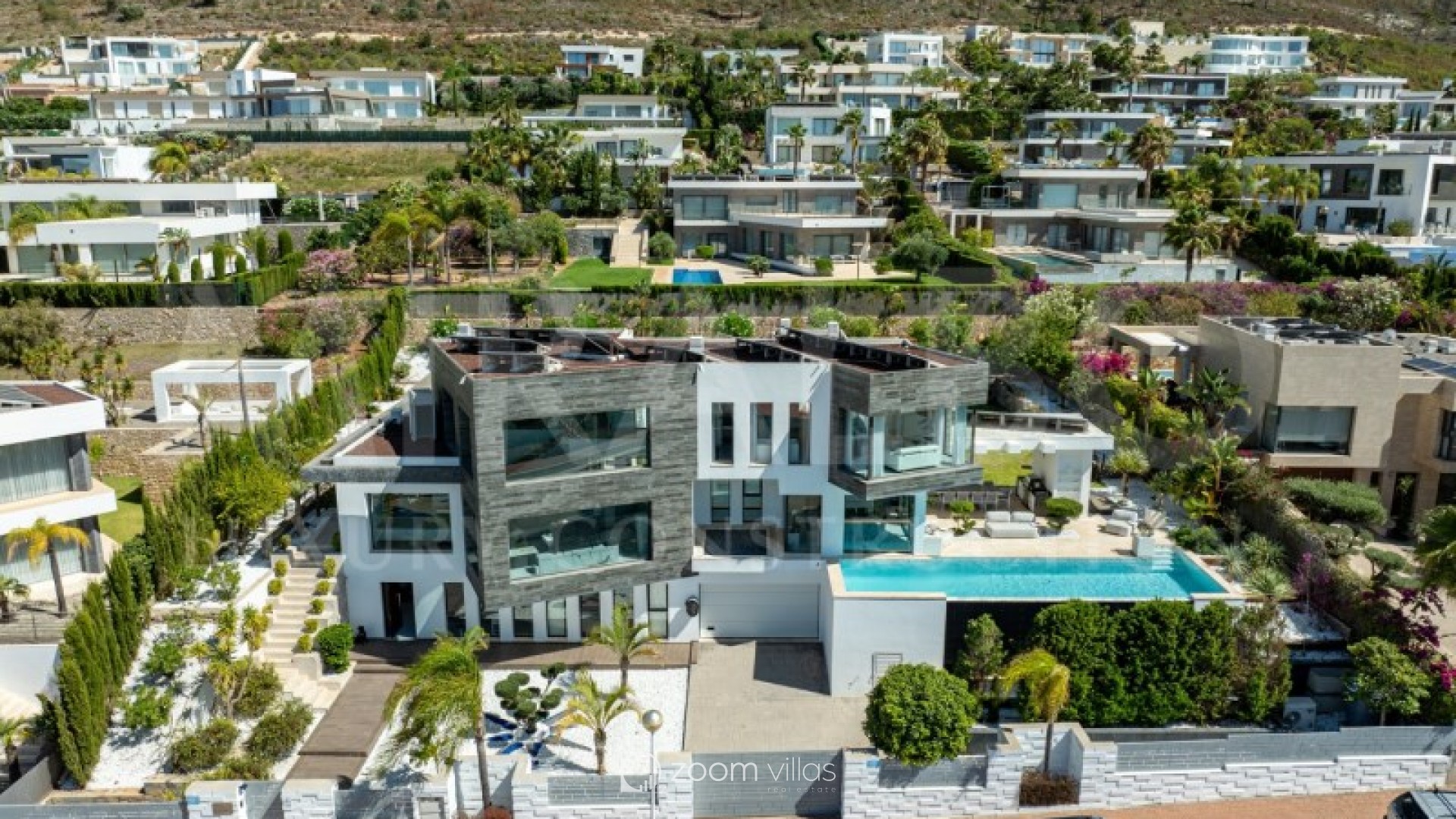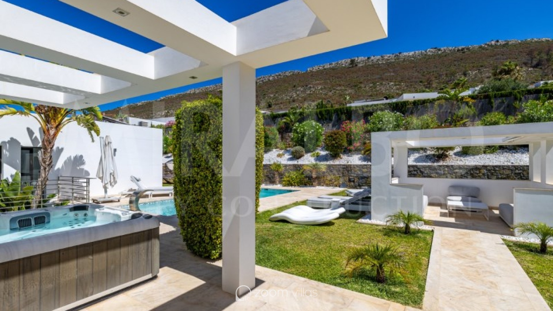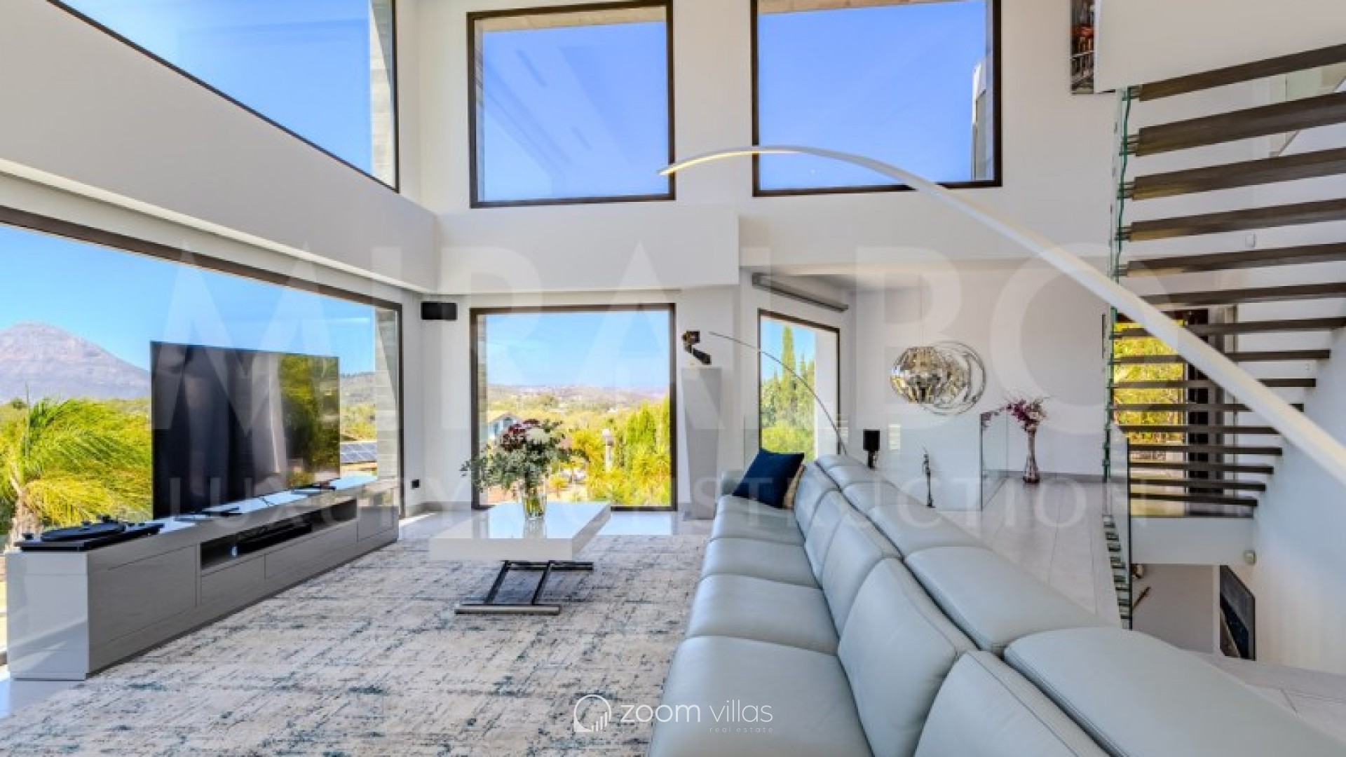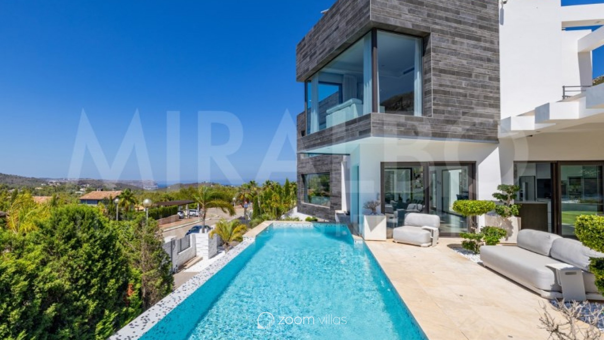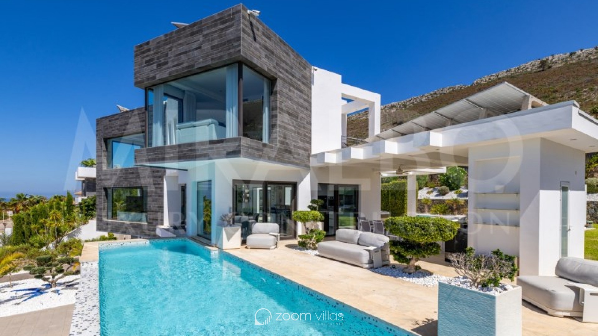 Discover the ultimate luxury in this magnificent villa located in the prestigious area of Villes del Vent, Javea. With 521 m² distributed over three floors, the property is a true architectural jewel, designed to combine elegance and comfort in every detail. The villa features 5 luxurious bedrooms, each with its own en-suite bathroom, ensuring privacy and comfort. The spacious open-concept living room, with stunning views of the sea and mountains, offers a perfect space for relaxation and entertaining, surrounded by a natural setting that complements the feeling of exclusivity. On the upper level, a loft becomes a quiet work area, ideal for those looking to combine work and rest in this idyllic enclave. Well-being is guaranteed thanks to the private spa, which includes a heated pool and a Hammam, while outside, the pool with fountain and chillout area invites you to enjoy moments of peace and leisure in the sun. The exterior is just as impressive as the interior. An infinity pool merges with the views of the sea and the Montgó, surrounded by multiple terraces perfect for enjoying the outdoors with family or friends. The summer kitchen, equipped with all comforts, allows you to organise outdoor dinners, while the garden, with its jacuzzi, gazebo and outdoor shower, creates an ideal atmosphere for relaxing. The villa not only stands out for its design, but also for its cutting-edge technology. An advanced home automation system, together with a Sonos sound system, ensures maximum comfort. In addition, the property has an 18 kW solar plant with storage batteries, an electric vehicle charger, a garage for 1 vehicle and air conditioning throughout the house, offering a perfect balance between luxury and sustainability. #ref:MRD5-199