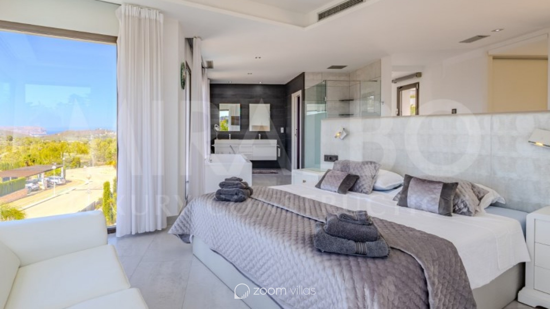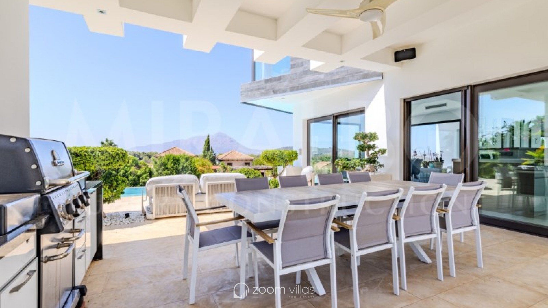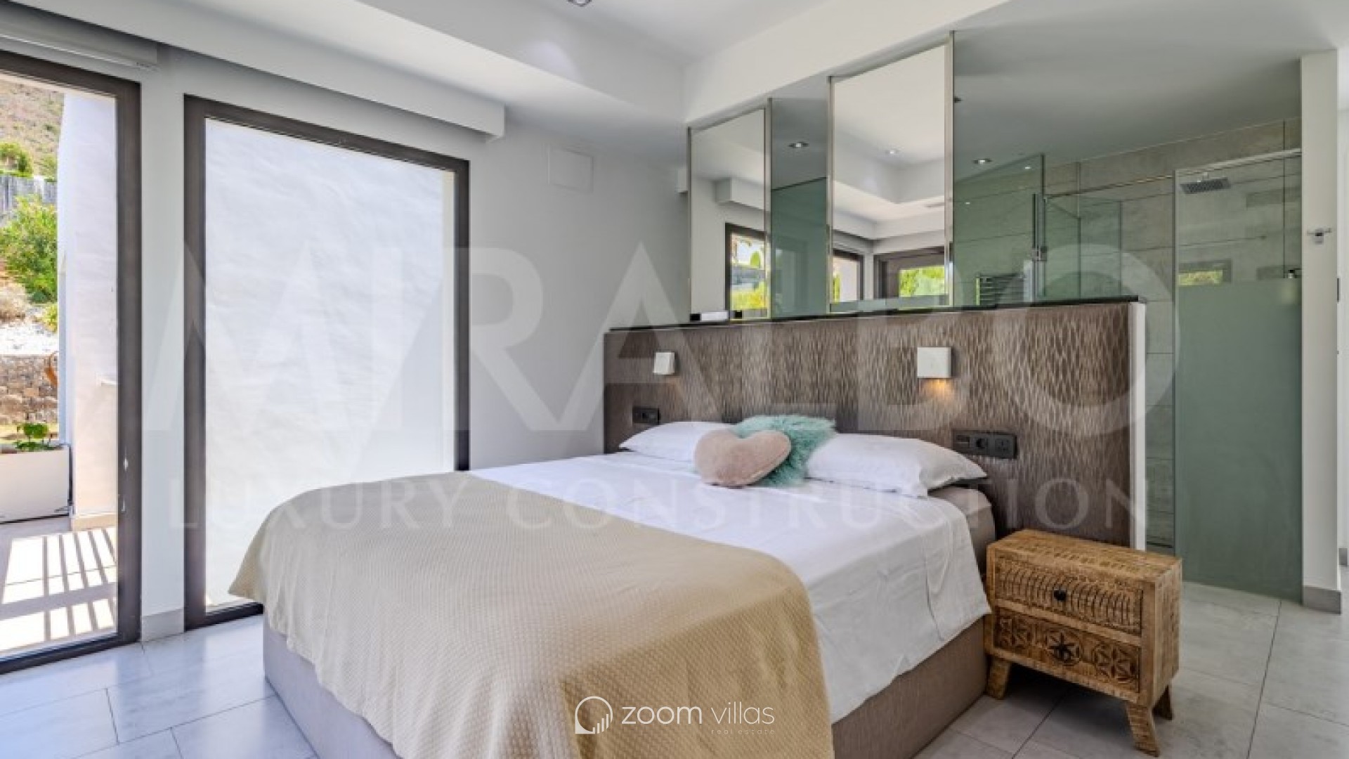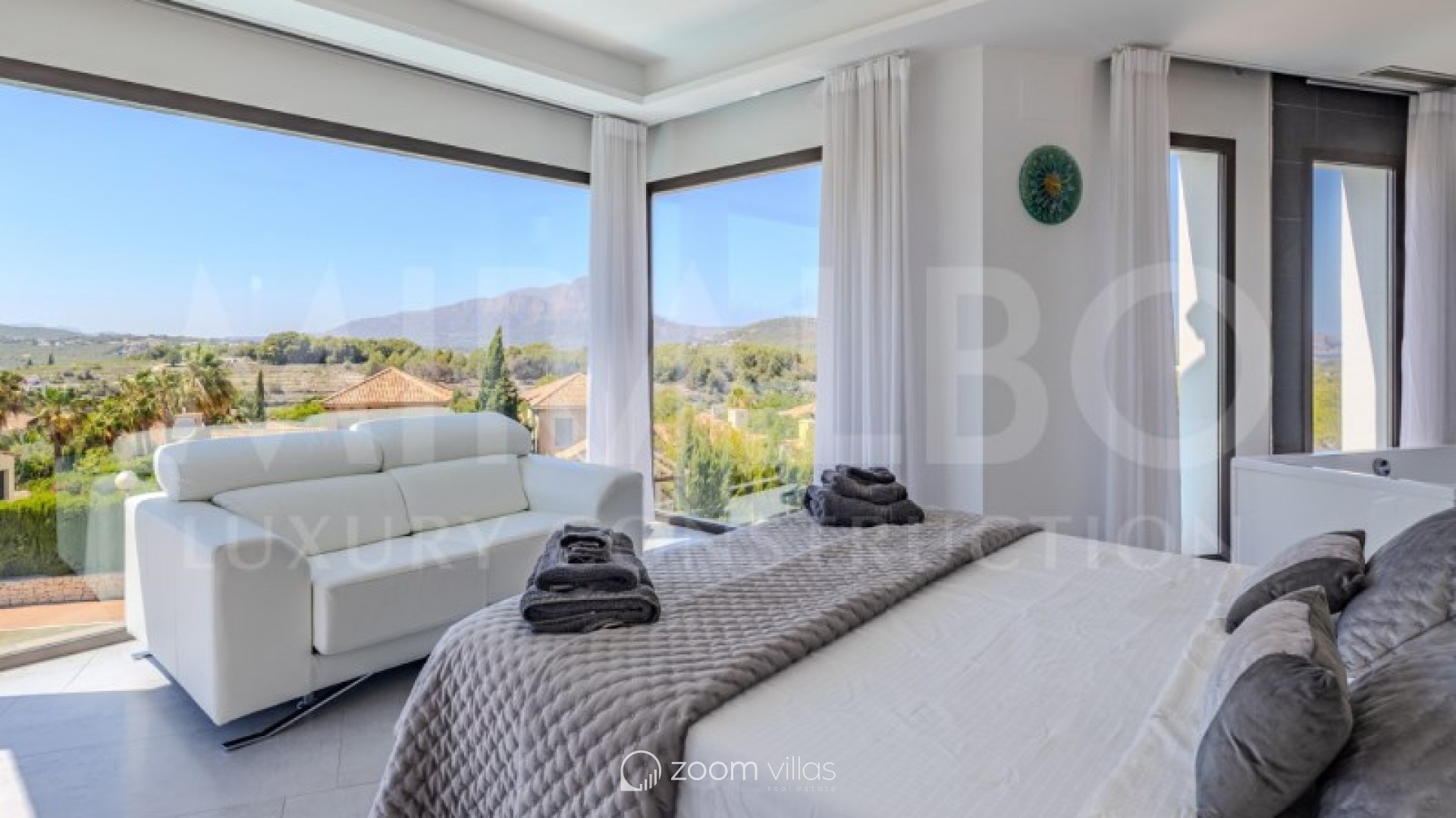 Discover the ultimate luxury in this magnificent villa located in the prestigious area of Villes del Vent, Javea. With 521 m² distributed over three floors, the property is a true architectural jewel, designed to combine elegance and comfort in every detail. The villa features 5 luxurious bedrooms, each with its own en-suite bathroom, ensuring privacy and comfort. The spacious open-concept living room, with stunning views of the sea and mountains, offers a perfect space for relaxation and entertaining, surrounded by a natural setting that complements the feeling of exclusivity. On the upper level, a loft becomes a quiet work area, ideal for those looking to combine work and rest in this idyllic enclave. Well-being is guaranteed thanks to the private spa, which includes a heated pool and a Hammam, while outside, the pool with fountain and chillout area invites you to enjoy moments of peace and leisure in the sun. The exterior is just as impressive as the interior. An infinity pool merges with the views of the sea and the Montgó, surrounded by multiple terraces perfect for enjoying the outdoors with family or friends. The summer kitchen, equipped with all comforts, allows you to organise outdoor dinners, while the garden, with its jacuzzi, gazebo and outdoor shower, creates an ideal atmosphere for relaxing. The villa not only stands out for its design, but also for its cutting-edge technology. An advanced home automation system, together with a Sonos sound system, ensures maximum comfort. In addition, the property has an 18 kW solar plant with storage batteries, an electric vehicle charger, a garage for 1 vehicle and air conditioning throughout the house, offering a perfect balance between luxury and sustainability. #ref:MRD5-199