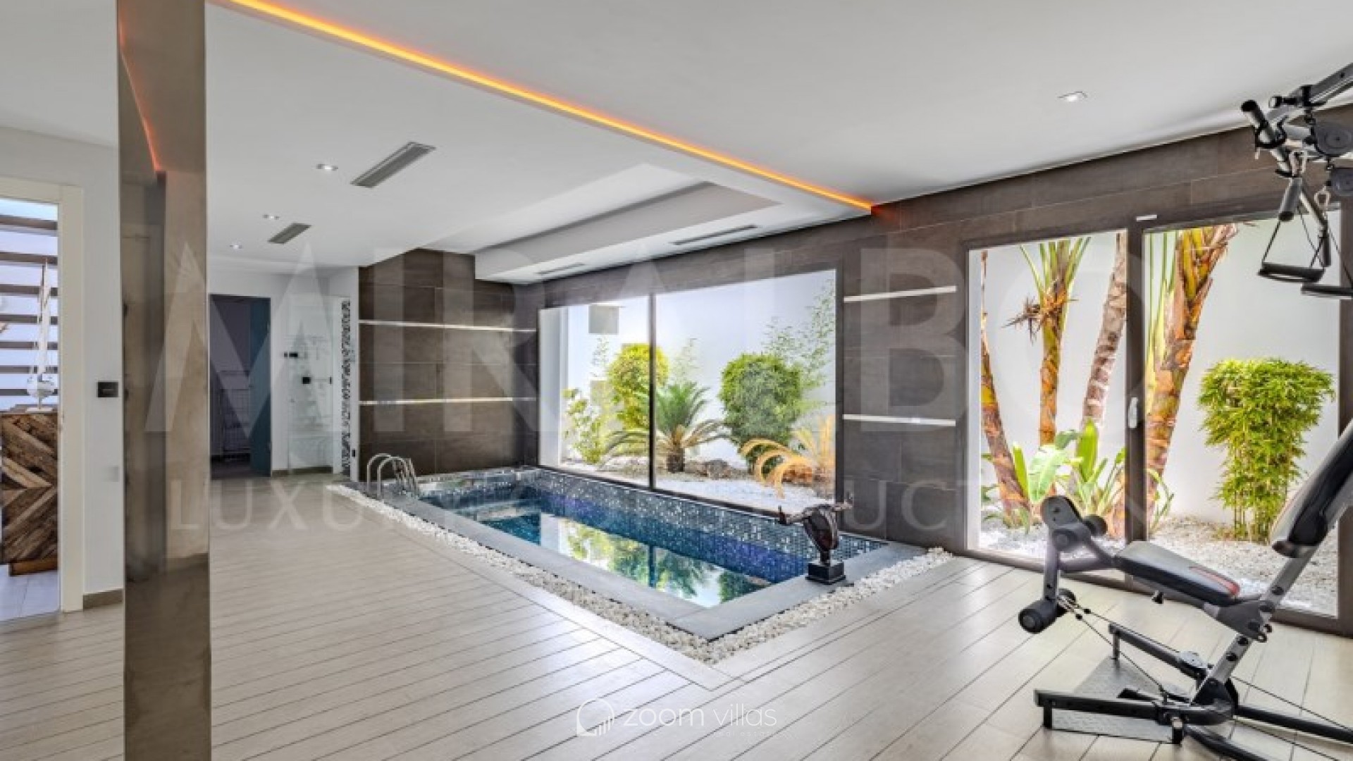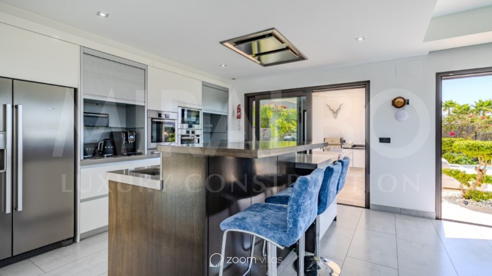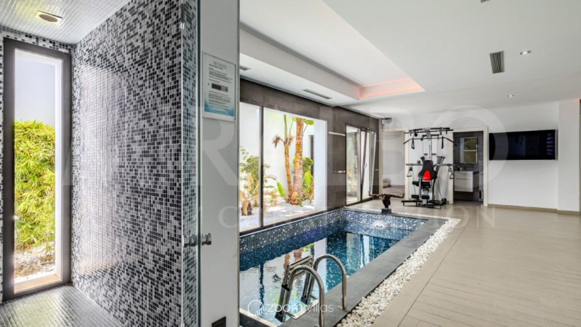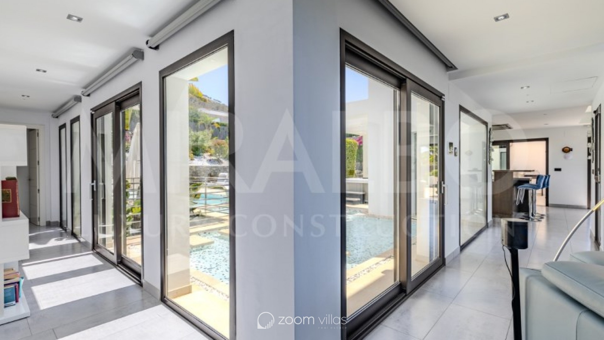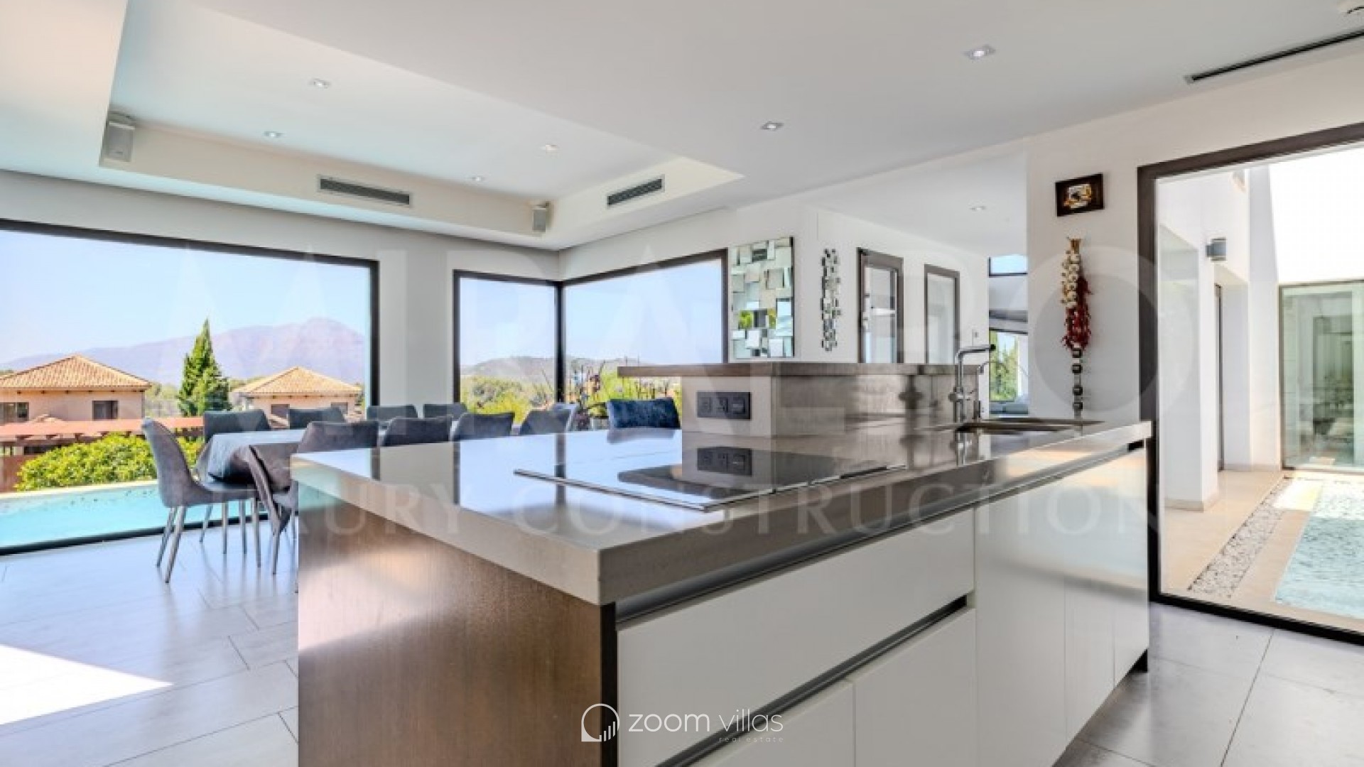 Discover the ultimate luxury in this magnificent villa located in the prestigious area of Villes del Vent, Javea. With 521 m² distributed over three floors, the property is a true architectural jewel, designed to combine elegance and comfort in every detail. The villa features 5 luxurious bedrooms, each with its own en-suite bathroom, ensuring privacy and comfort. The spacious open-concept living room, with stunning views of the sea and mountains, offers a perfect space for relaxation and entertaining, surrounded by a natural setting that complements the feeling of exclusivity. On the upper level, a loft becomes a quiet work area, ideal for those looking to combine work and rest in this idyllic enclave. Well-being is guaranteed thanks to the private spa, which includes a heated pool and a Hammam, while outside, the pool with fountain and chillout area invites you to enjoy moments of peace and leisure in the sun. The exterior is just as impressive as the interior. An infinity pool merges with the views of the sea and the Montgó, surrounded by multiple terraces perfect for enjoying the outdoors with family or friends. The summer kitchen, equipped with all comforts, allows you to organise outdoor dinners, while the garden, with its jacuzzi, gazebo and outdoor shower, creates an ideal atmosphere for relaxing. The villa not only stands out for its design, but also for its cutting-edge technology. An advanced home automation system, together with a Sonos sound system, ensures maximum comfort. In addition, the property has an 18 kW solar plant with storage batteries, an electric vehicle charger, a garage for 1 vehicle and air conditioning throughout the house, offering a perfect balance between luxury and sustainability. #ref:MRD5-199
