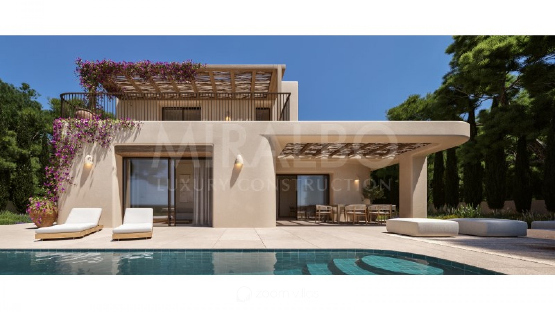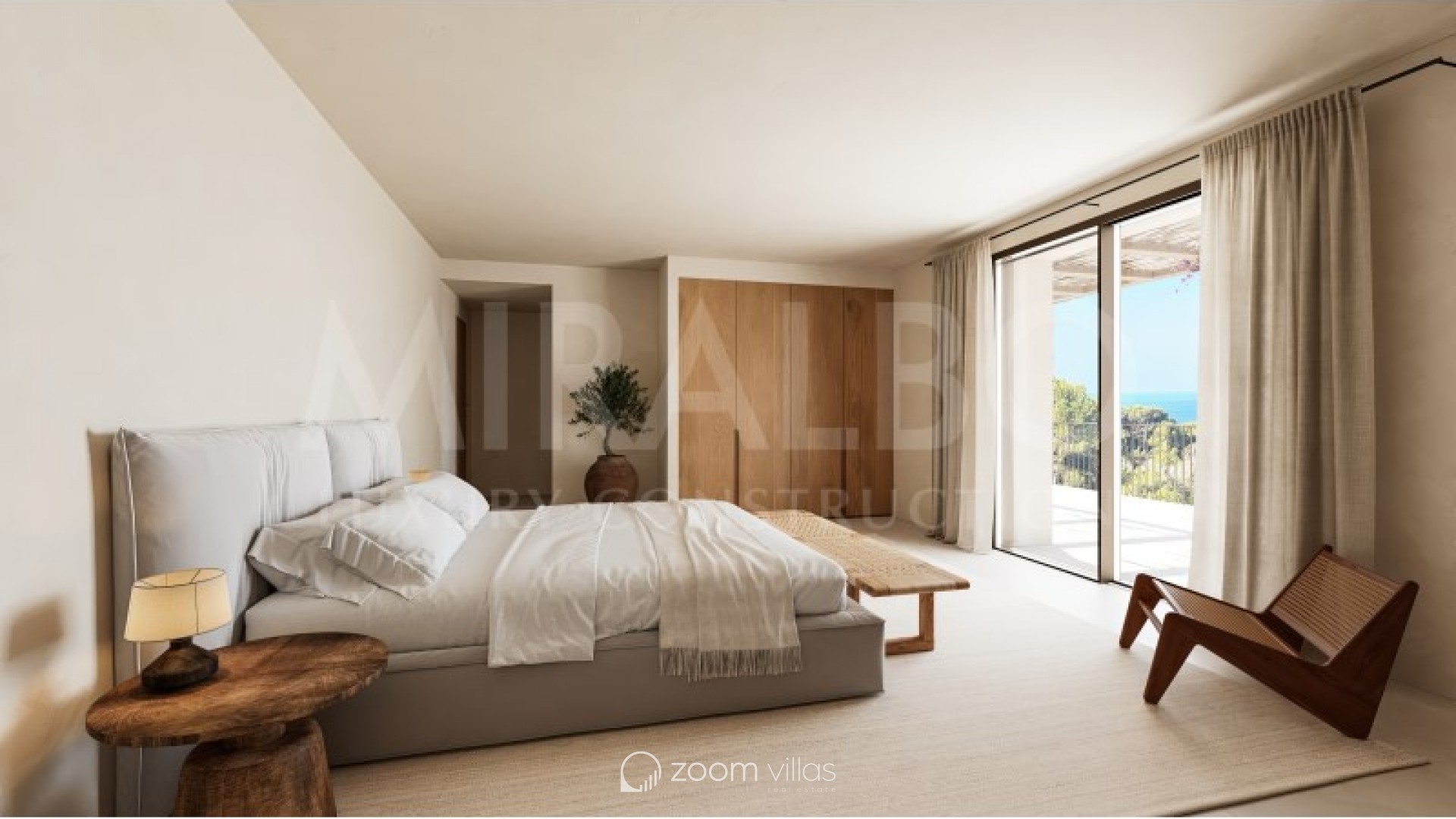 Set in the tranquil enclave of Balcón al Mar, Villa Thalassa is being fully refurbished to the exceptional standards of Miralbo Urbana. This elegant south-facing villa, perched on a 1,000 m² plot, combines Mediterranean charm with contemporary refinementdelivering a timeless and luxurious living experience. From the main living area, expansive glass openings frame spectacular sea and valley views, bathing the interiors in natural light and connecting seamlessly with the generous outdoor terraces. Upstairs, the main bedroom suite opens onto a private terrace with breathtaking panoramic views stretching all the way to Ibiza. The villa will offer four spacious bedrooms, open-plan living spaces, high-end finishes, and beautifully designed exteriors, including shaded pergolas, a private pool, and lush Mediterranean landscaping. Located just minutes from Jávea's most picturesque beaches and coves, Villa Thalassa offers privacy, elegance, and coastal serenity. Completion scheduled for February 2026 - delivered fully refurbished and ready to enjoy. This is Mediterranean living, redefined. #ref:MIR0167