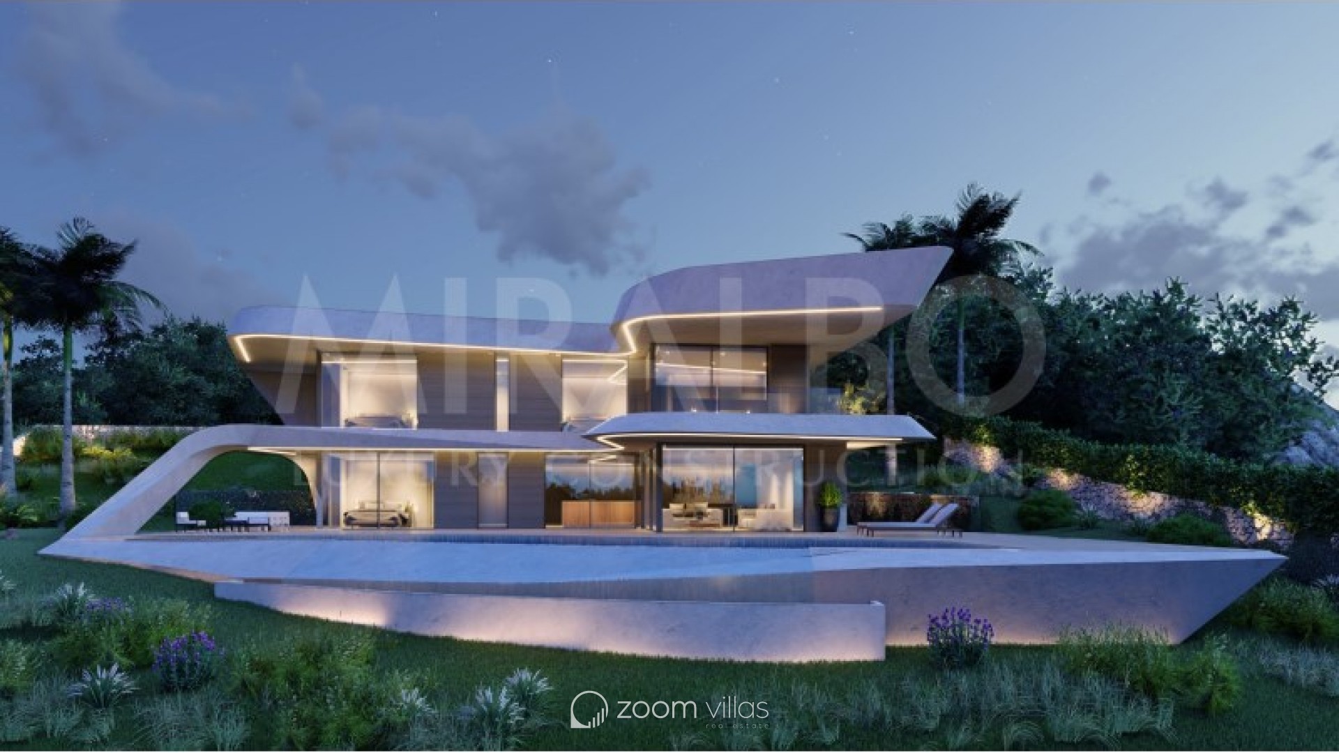 Organic and contemporary design brings to life this unique Villa in our Monte Olimpo residential area. With panoramic mountain and sea-views in a prime location in Javea, you can enjoy living in this architectural creation only minutes away from the beach, within one of Javea's most modern urbanizations. The architectural plans comprise of open-plan living on the main floor, guest bathroom and one bedroom with en-suite bathroom. The top floor features the master suite enjoying the most privileged view from this Villa, along with the master bathroom, spacious fitted wardrobe and private terrace. Two more bedrooms are found on this floor. All 4 bedrooms in Villa Chronos are complete with fitted wardrobes and en-suite bathrooms. With its free and organic lines, Villa Chronos brings you closer to nature with large windows and high ceilings, along with a stylish and airy interior that opens up to the Spanish sunny hillside. The sinuous lines continue out into the sunny terraces and pool, making this the perfect Villa for entertaining and outdoor living. #ref:MIR0106