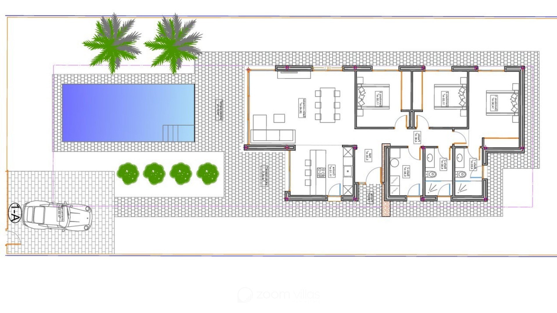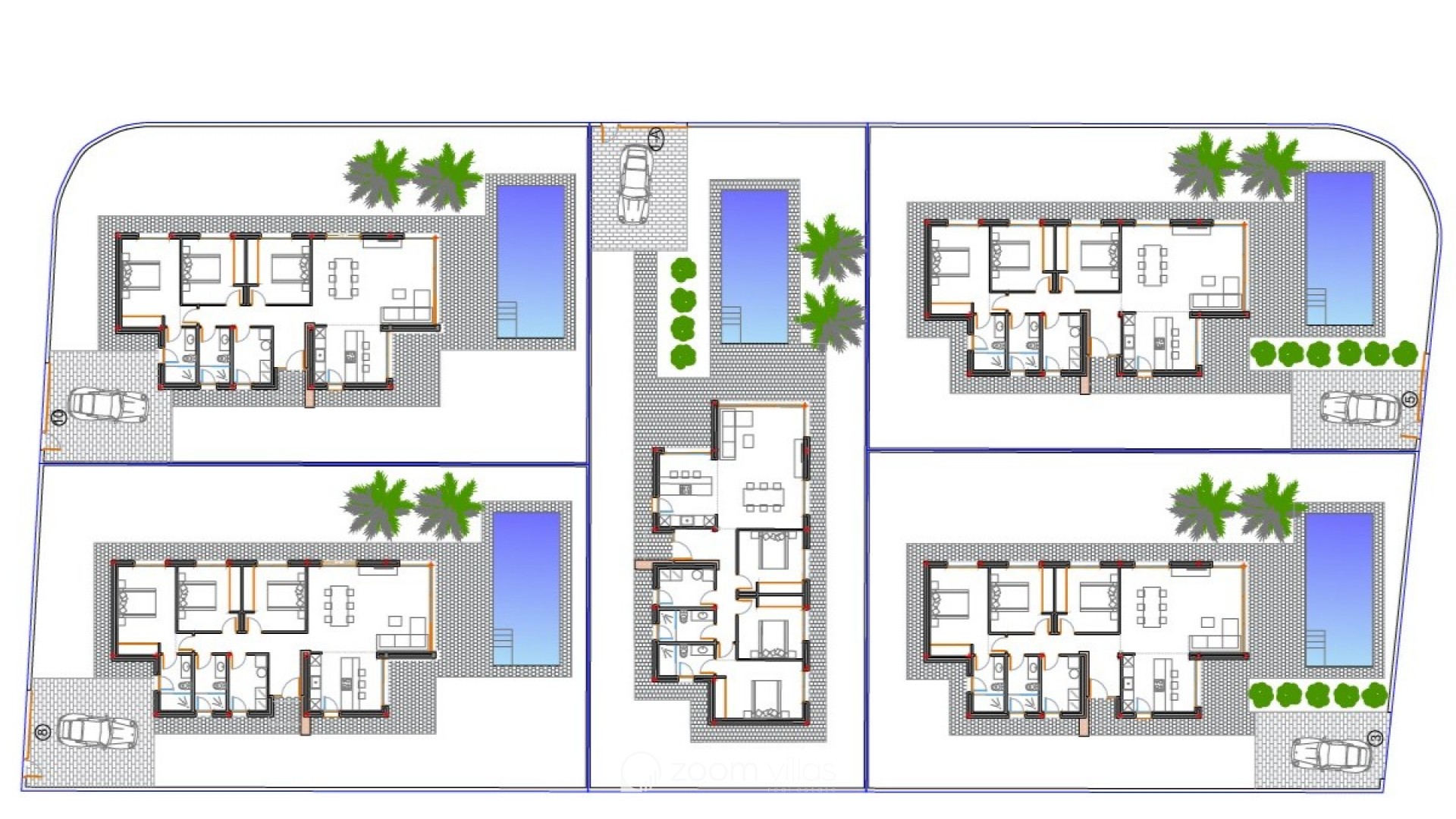This exclusive project consists of five detached villas with private swimming pools, with prices ranging from €585,000 to €610,000. All homes are completely single-storey and feature a hall, three double bedrooms with fitted wardrobes, two full bathrooms, one of which is en suite, an open-plan kitchen, a bright living room and a spacious utility room.
