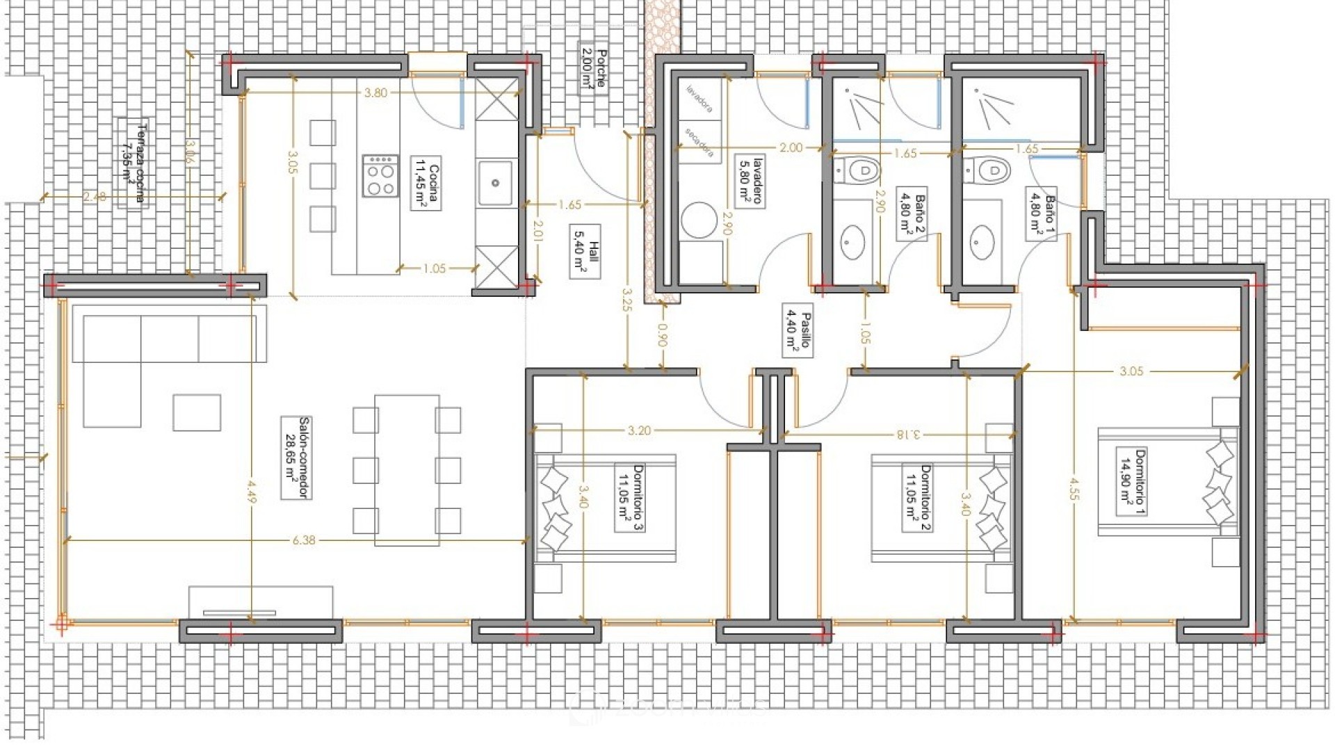 During construction, special attention is paid to sustainability and energy efficiency. Large aluminium windows with thermal breaks and double glazing with Guardiansun allow abundant natural light to enter without compromising the interior temperature. The entire property, including walls, floors and roof, is thermally insulated and finished with masonry details that add warmth and character to the design. The ducted air conditioning with Airzone system allows each room to be controlled individually, while automatic shutters and a mechanical ventilation system with heat recovery provide additional comfort and a pleasant indoor climate. In addition, each villa has a photovoltaic panel of approximately 550 W with a micro-inverter, which contributes to lower energy consumption.