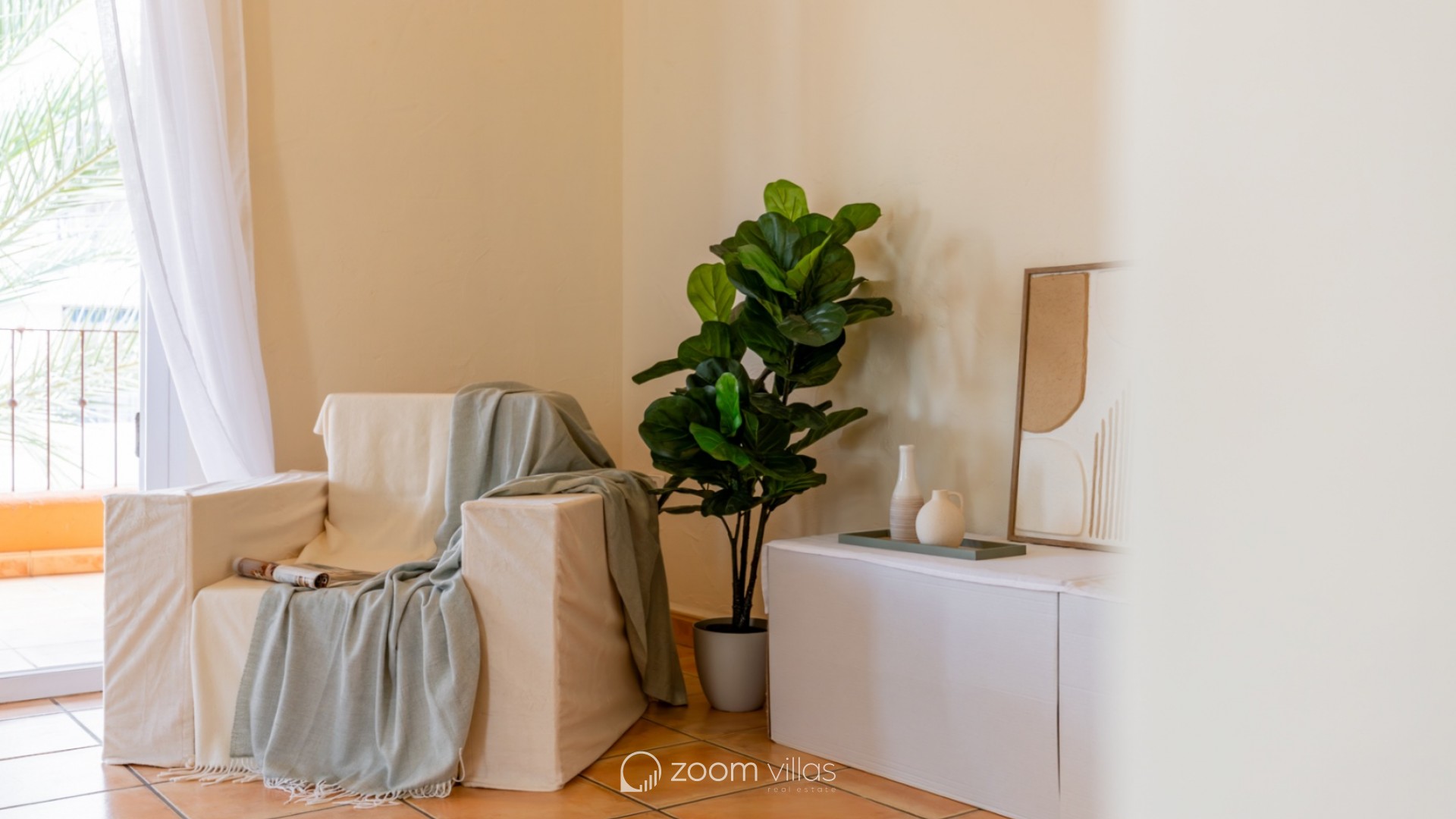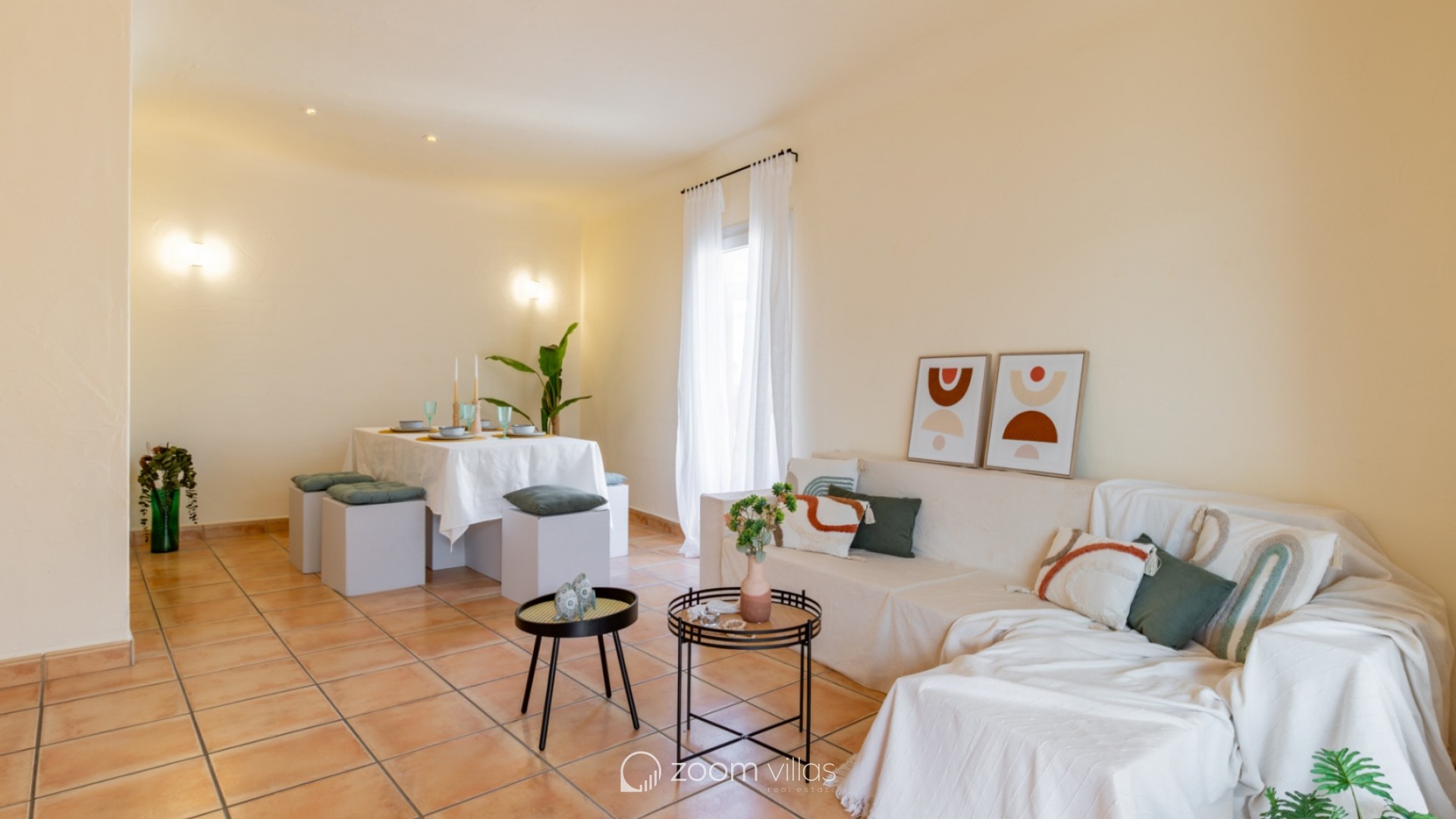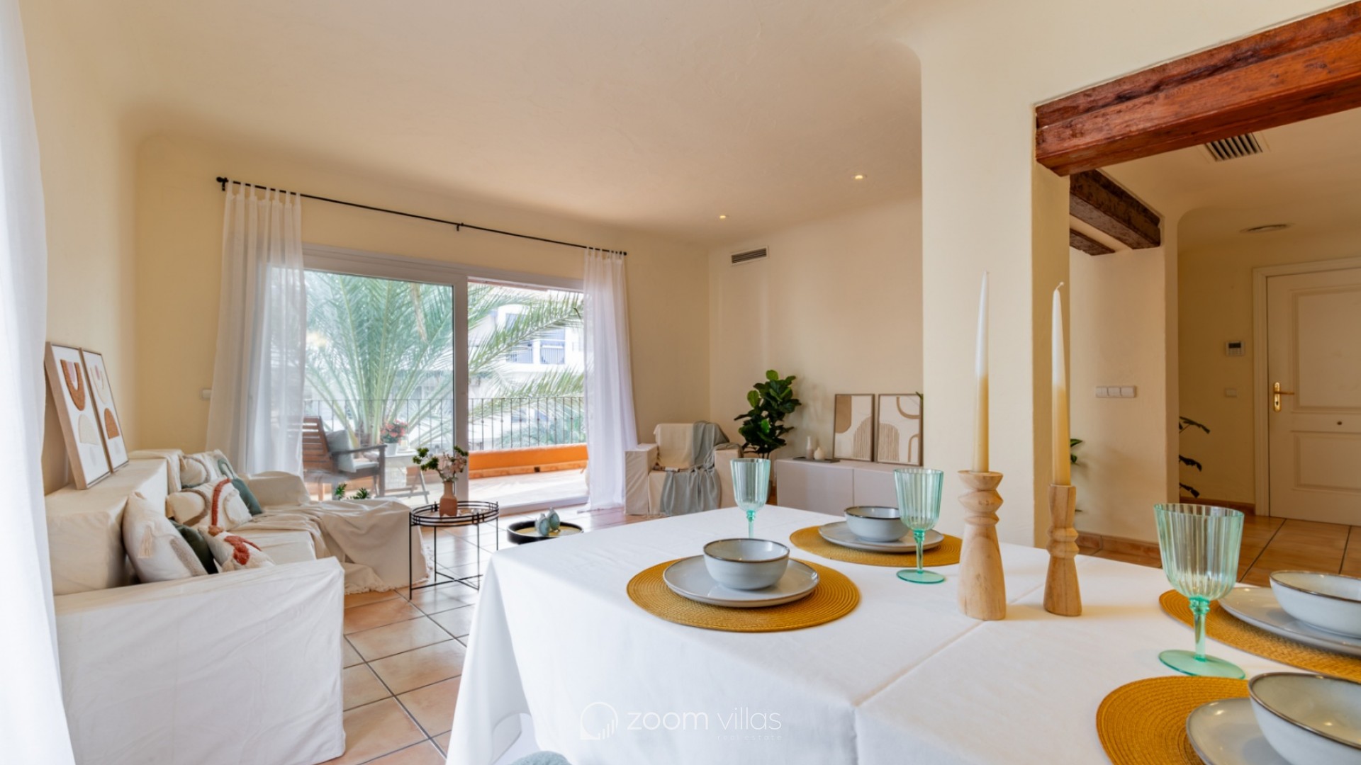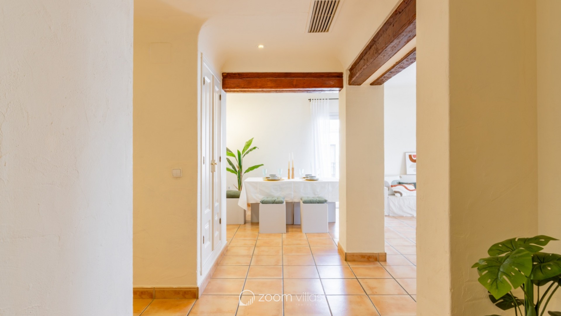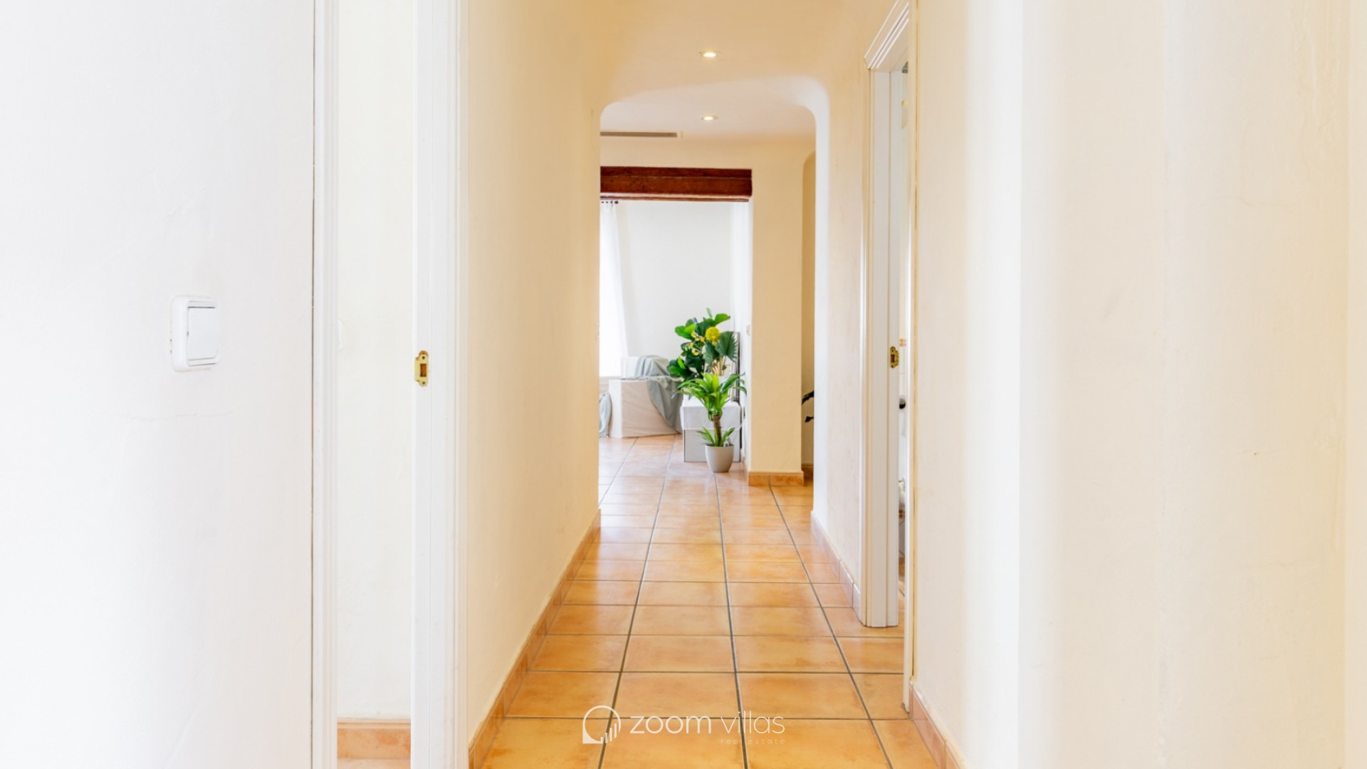 In a real estate market where standardized construction often prevails, finding a 150 square meter residence in the center of Moraira that retains the essence of traditional architecture is an exceptional discovery. This home, located on the third floor of one of the area's most solid and sought-after buildings, breaks the stigma of urban apartments: there are no dark corners here. Mediterranean Character and Views of the Blue Upon entering, you are enveloped by the warmth of the walls dressed in rustic stucco and exposed wooden beams, providing that visual nobility of homes with soul. The large living-dining room opens to a terrace framed by traditional arches, the perfect place for morning coffee. From here, the experience is complete: you not only feel the tranquil pulse of the village but also enjoy side views of the sea, a constant reminder that the Mediterranean is just steps away. A "Fully Exterior" Home What makes this property unique is its brightness. Unlike other central apartments, all rooms have windows to the outside, including the two full bathrooms. Light flows uninterrupted: thanks to its double orientation (East-West) and smart design, even the hallway is flooded with brightness through a window that opens to a very bright interior patio. It is a home that breathes. True luxury is space and order. From the entrance hall, the storage capacity with discretely integrated built-in wardrobes surprises, a comfort detail that is repeated in each of the three double bedrooms. Daily life is made easier with an independent, spacious, and fully equipped kitchen, designed for enjoying cooking without constraints. Under its artisanal skin beats a technologically comfortable heart. Silence is absolute thanks to double-glazed windows, and the climate is always perfect thanks to the ducted air conditioning (cool/heat). To top it off, the ultimate privilege in the center: a private parking space in the same building. A property for those seeking the light of a villa with the convenience of being in the center. Properties with this light and square meters do not last on the market. If you value waking up with the sun, seeing the sea from your terrace, and having real space for the whole family, this is your home. Shall we schedule a visit? Contact Hispania Homes By Keller Williams and come discover the brightest apartment in the center.
