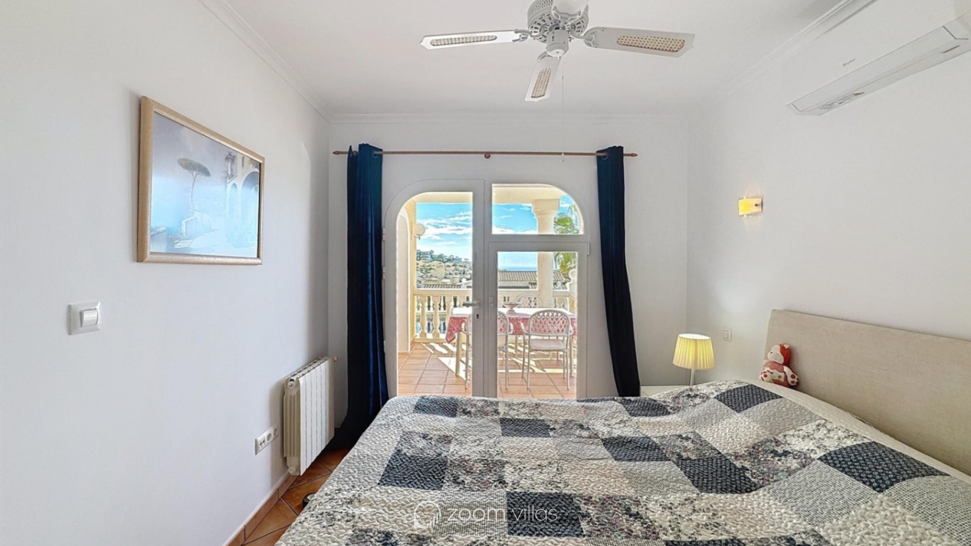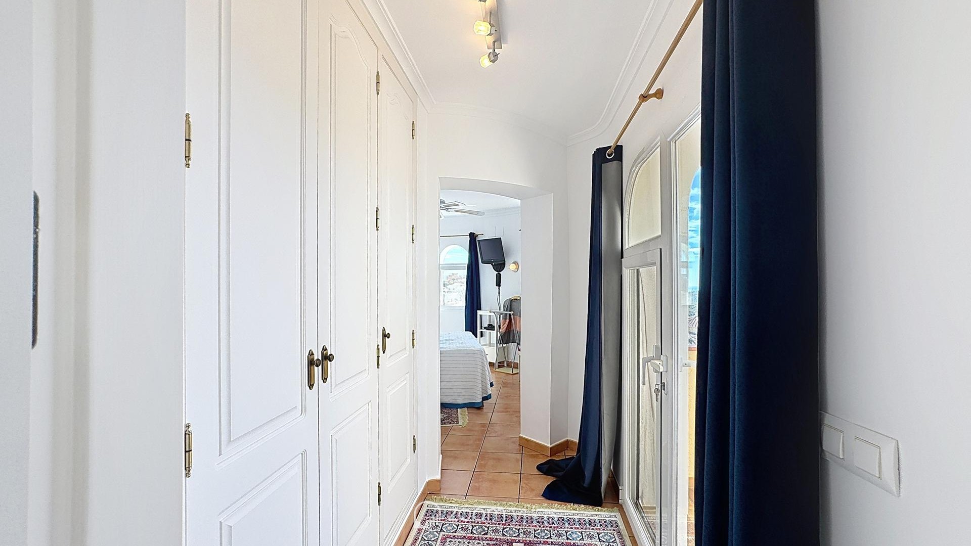 • A double bedroom with fitted wardrobes, sea views and direct access to the terrace.