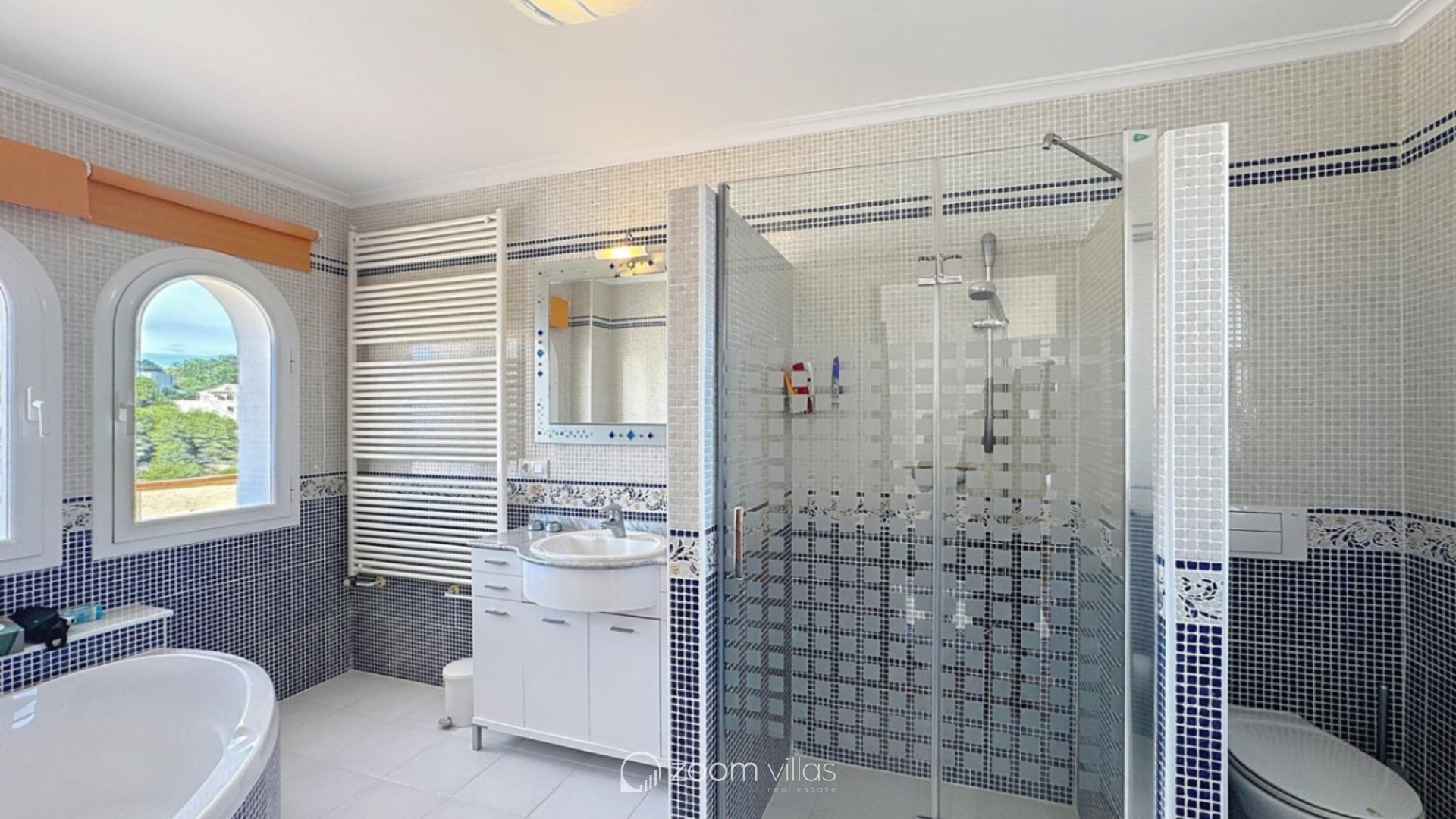 The villa stands out for its excellent condition and careful maintenance. From almost every room you can enjoy spectacular views of the sea and the surrounding mountains. It is equipped with central heating and split air conditioning in several rooms, ensuring maximum comfort throughout the year.