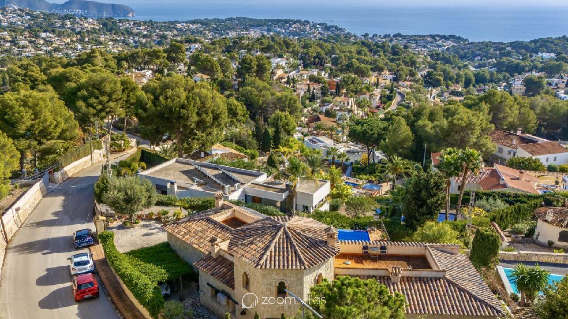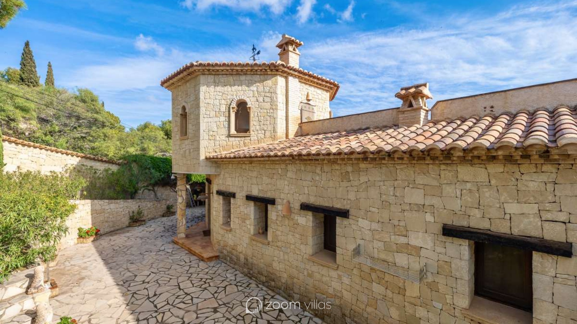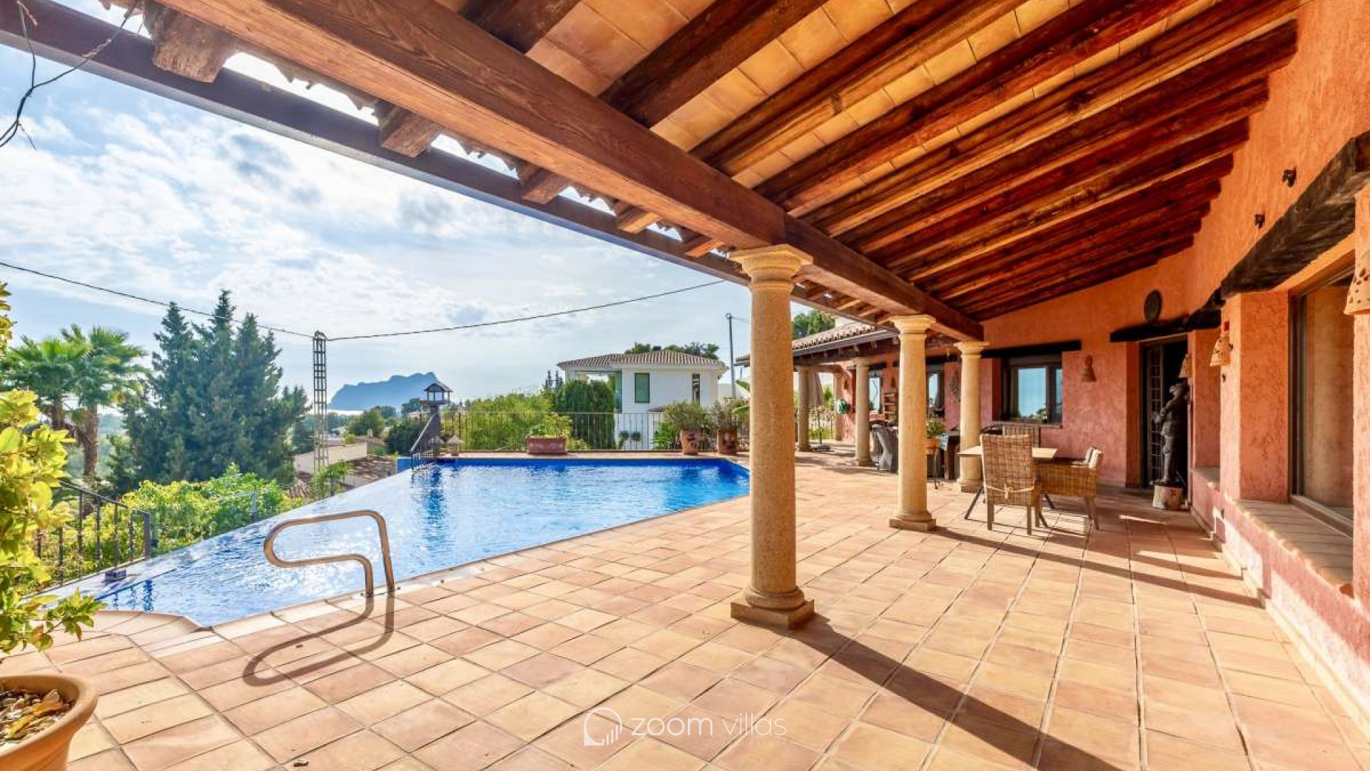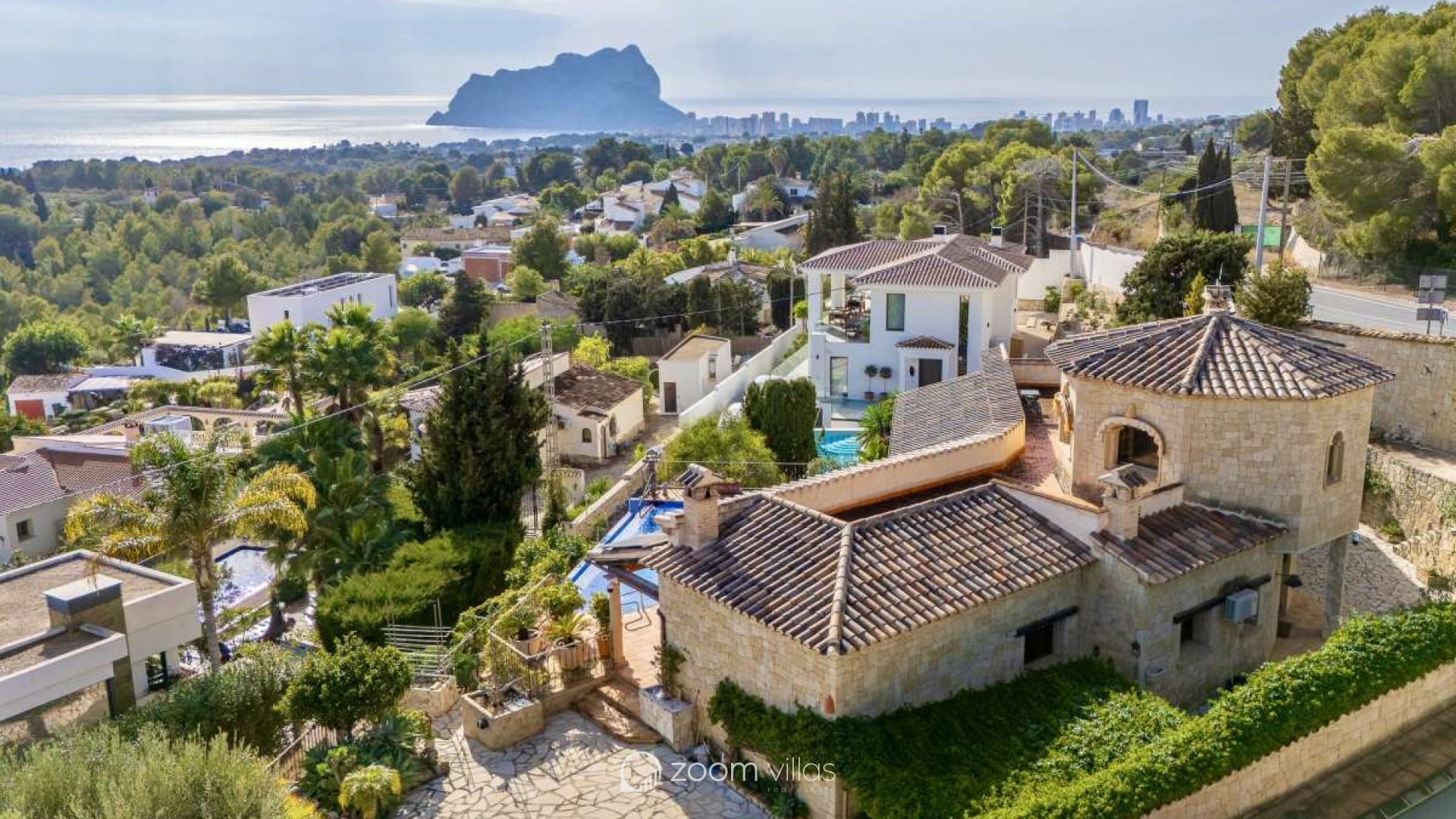 Bathed in Mediterranean light and surrounded by timeless natural beauty, this exceptional villa offers a rare sense of privacy, space, and effortless elegance. Set within a peaceful residential enclave, the property enjoys open views toward the sea and the iconic Peñón, creating a daily backdrop that feels both inspiring and serene.Built in 2010 on a generous 900 m² plot, the villa offers 387 m² of constructed area, thoughtfully designed in a Mediterranean country style using natural stone that blends harmoniously with its surroundings. The architecture combines authenticity with comfort, creating a home that feels warm, solid, and enduring.Outdoor living is at the heart of this property. Expansive terraces invite long lunches, sunset evenings, and relaxed moments overlooking the infinity pool, the sea, and the dramatic silhouette of the Peñón. Every angle has been designed to enhance the connection between indoor and outdoor spaces.The property offers excellent parking facilities, including private outdoor parking for several cars as well as a large private garage, ensuring both convenience and discretion.Interior LayoutThe main floor is dedicated to daily and evening living. A welcoming entrance hall leads into a bright open-plan living space with direct access to the terrace. The kitchen flows seamlessly into the living room, creating an ideal environment for entertaining and everyday life. The private sleeping area on this level is arranged along a quiet corridor and offers two bedrooms, a guest bathroom, and a master bedroom with its own en-suite bathroom and a spacious walk-in wardrobe, creating a comfortable and well-balanced private zone.The upper level features an additional private bedroom with its own bathroom and direct access to a terrace, where open sea views and views of the Peñón provide an exclusive and serene atmosphere — ideal for guests or as a private retreat. On the lower level, the villa reveals its more intimate side with a wine cellar and a spacious garage accommodating several vehicles.This is more than a house — it is a place designed for a refined Mediterranean lifestyle, where stone, light, views, and space come together in perfect balance. A property that offers privacy, character, and a quiet sense of luxury, ideal as both a permanent residence or an elegant second home.