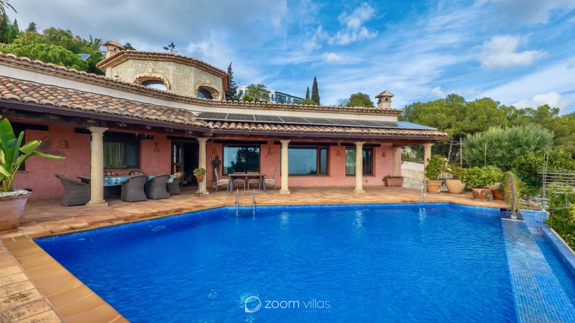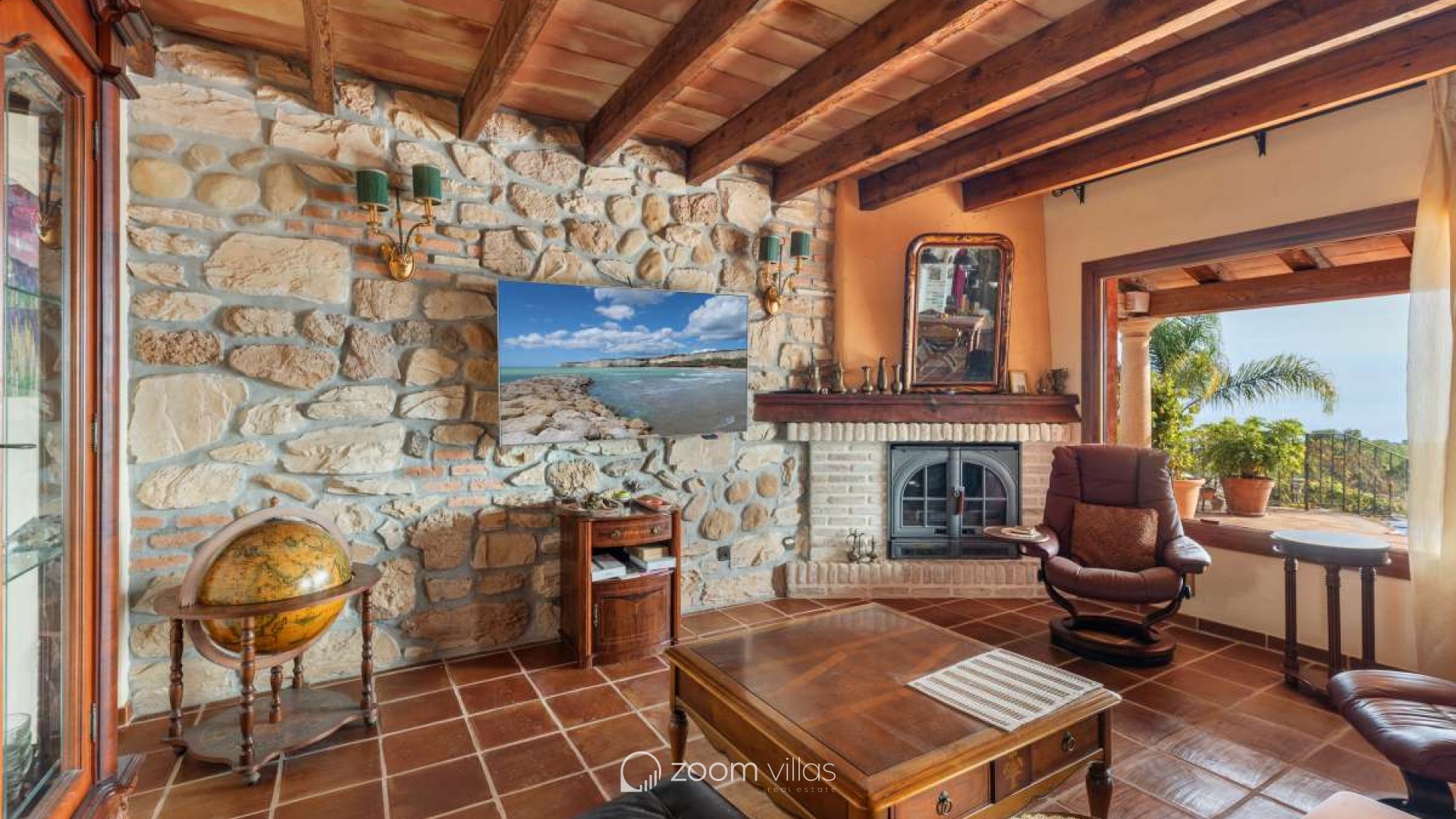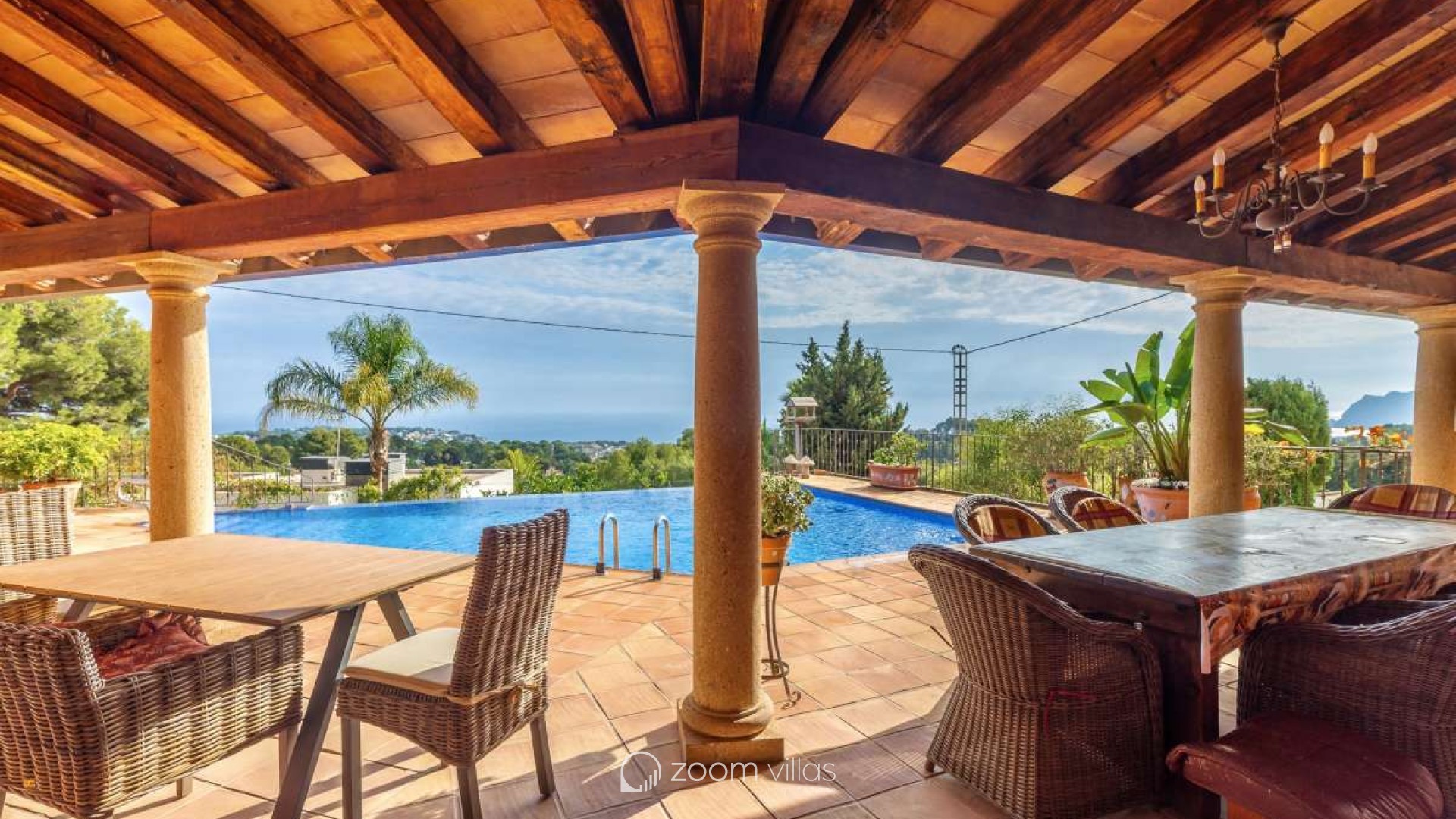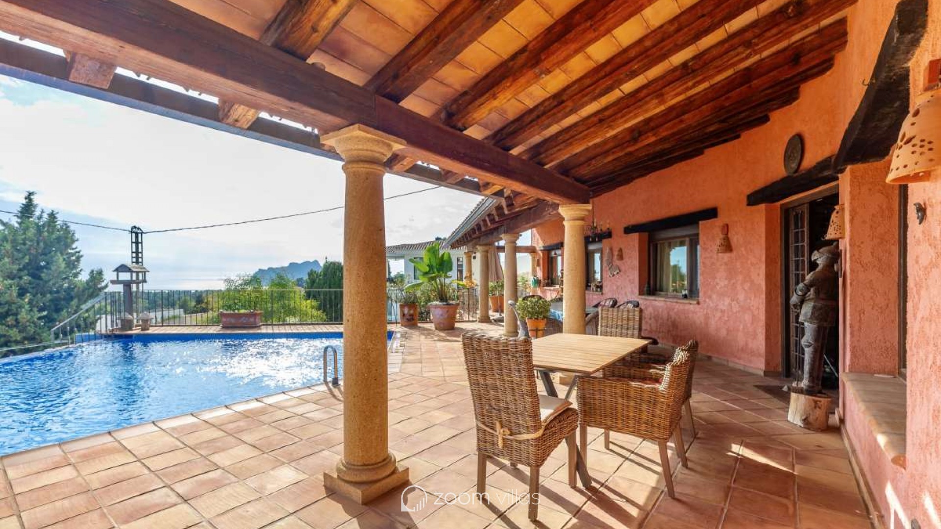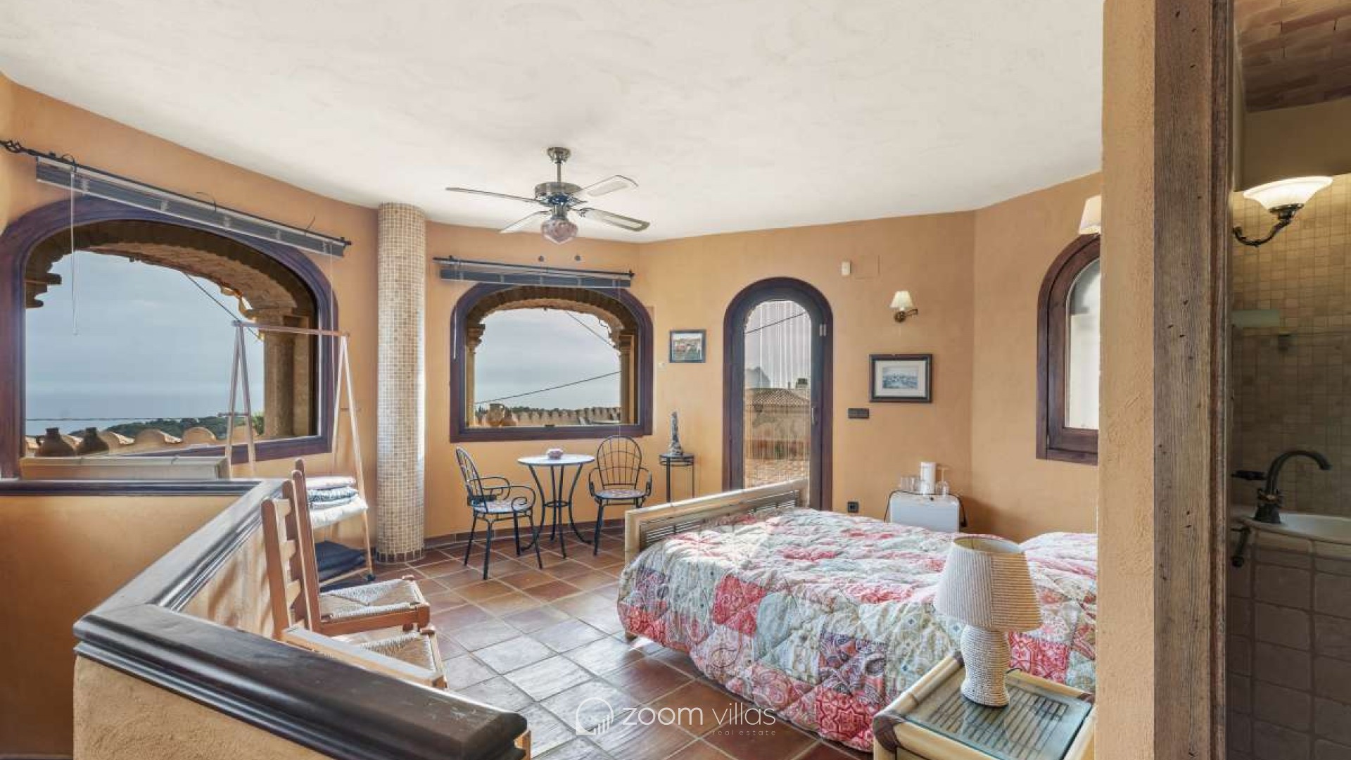 Bathed in Mediterranean light and surrounded by timeless natural beauty, this exceptional villa offers a rare sense of privacy, space, and effortless elegance. Set within a peaceful residential enclave, the property enjoys open views toward the sea and the iconic Peñón, creating a daily backdrop that feels both inspiring and serene.Built in 2010 on a generous 900 m² plot, the villa offers 387 m² of constructed area, thoughtfully designed in a Mediterranean country style using natural stone that blends harmoniously with its surroundings. The architecture combines authenticity with comfort, creating a home that feels warm, solid, and enduring.Outdoor living is at the heart of this property. Expansive terraces invite long lunches, sunset evenings, and relaxed moments overlooking the infinity pool, the sea, and the dramatic silhouette of the Peñón. Every angle has been designed to enhance the connection between indoor and outdoor spaces.The property offers excellent parking facilities, including private outdoor parking for several cars as well as a large private garage, ensuring both convenience and discretion.Interior LayoutThe main floor is dedicated to daily and evening living. A welcoming entrance hall leads into a bright open-plan living space with direct access to the terrace. The kitchen flows seamlessly into the living room, creating an ideal environment for entertaining and everyday life. The private sleeping area on this level is arranged along a quiet corridor and offers two bedrooms, a guest bathroom, and a master bedroom with its own en-suite bathroom and a spacious walk-in wardrobe, creating a comfortable and well-balanced private zone.The upper level features an additional private bedroom with its own bathroom and direct access to a terrace, where open sea views and views of the Peñón provide an exclusive and serene atmosphere — ideal for guests or as a private retreat. On the lower level, the villa reveals its more intimate side with a wine cellar and a spacious garage accommodating several vehicles.This is more than a house — it is a place designed for a refined Mediterranean lifestyle, where stone, light, views, and space come together in perfect balance. A property that offers privacy, character, and a quiet sense of luxury, ideal as both a permanent residence or an elegant second home.