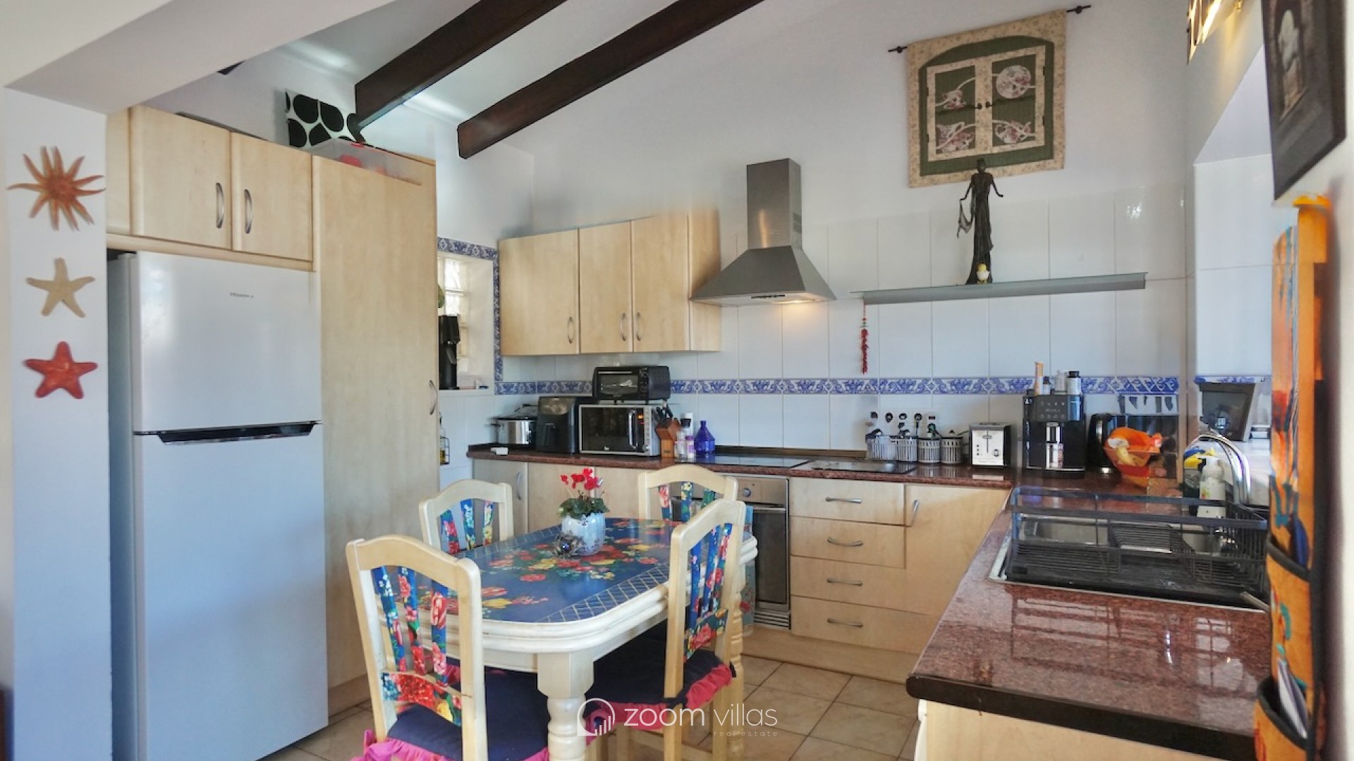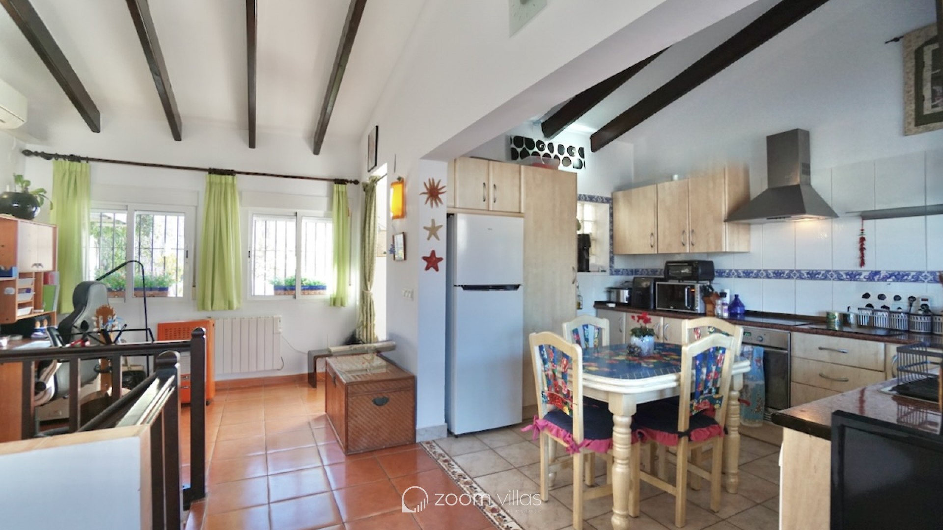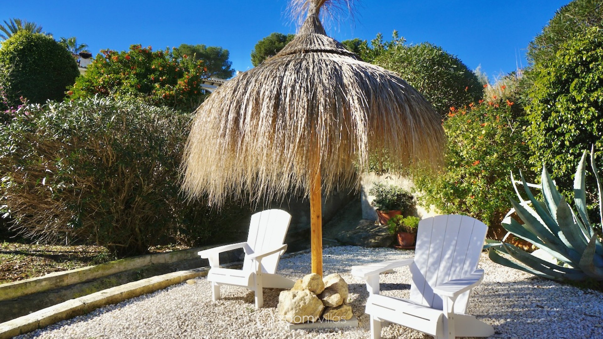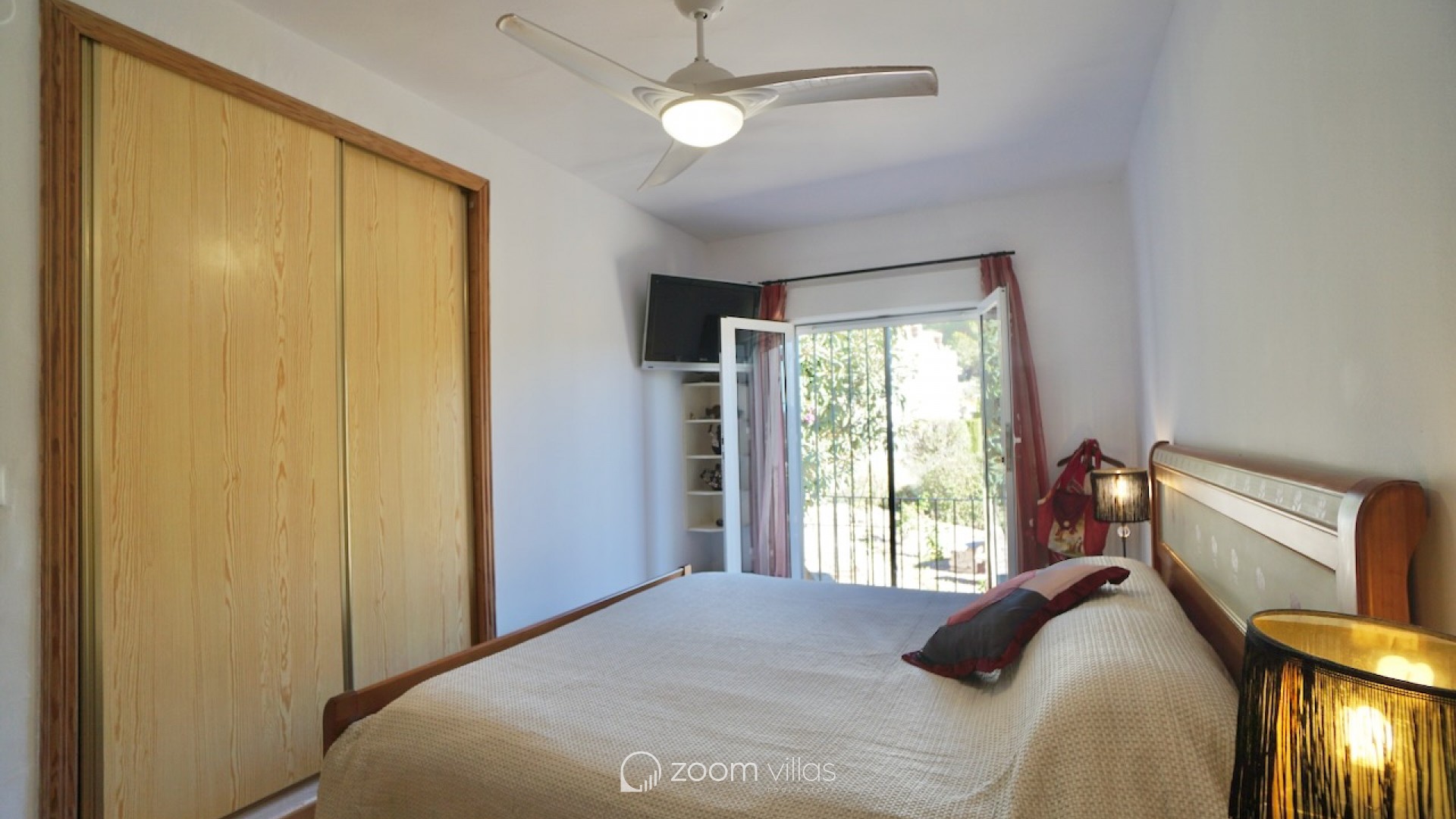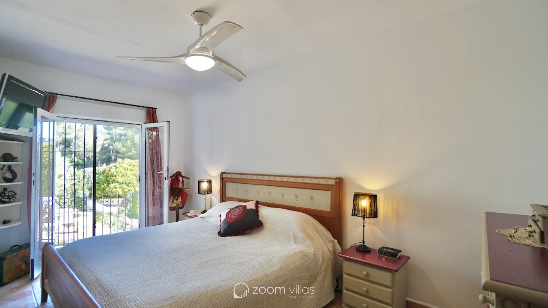 The property welcomes you on the upper level, where you enter a bright open-plan kitchen and living area filled with natural daylight thanks to its east-facing orientation. Large sliding doors connect the living space directly to a private balcony, creating a pleasant extension of the living area and the perfect spot to enjoy breakfast in the morning sun. From the living area, a staircase leads to the lower level, where you will find two comfortable bedrooms. One bedroom features opening doors with direct access to the communal terrace, allowing you to step outside and enjoy the outdoor space and nearby communal swimming pool. The second bedroom is fitted with a built-in wardrobe. This level also includes two bathrooms and a large indoor storage room, providing excellent flexibility and making it ideal for use as a home office, hobby room or additional functional space, depending on your needs. The property offers enjoyable outdoor living with access to a spacious communal terrace on the lower level. The surrounding semi-sloping plot is easy to maintain and complements the quiet residential setting. Additional features include private parking and a large well-maintained communal swimming pool, perfect for cooling off during the warmer months. All essential services are located within 600 metres, while the town centre and beaches are just 1.8 km away, offering an excellent balance between tranquillity and convenience. Built in 1987 in a traditional style, this bungalow is ideal as a holiday home or a comfortable permanent residence. It also offers a great opportunity for buyers looking for a property with potential to modernise or personalise in one of Moraira’s most desirable residential areas. Key features Walking distance to services: 600mWalking distance to Sea & Moraira centre: 1.8kmAirconditioning H/CBeautiful open views from living area and balconyLarge communal swimming pool with spacious sun terracePrivate parkingPotential to modernise or personalise