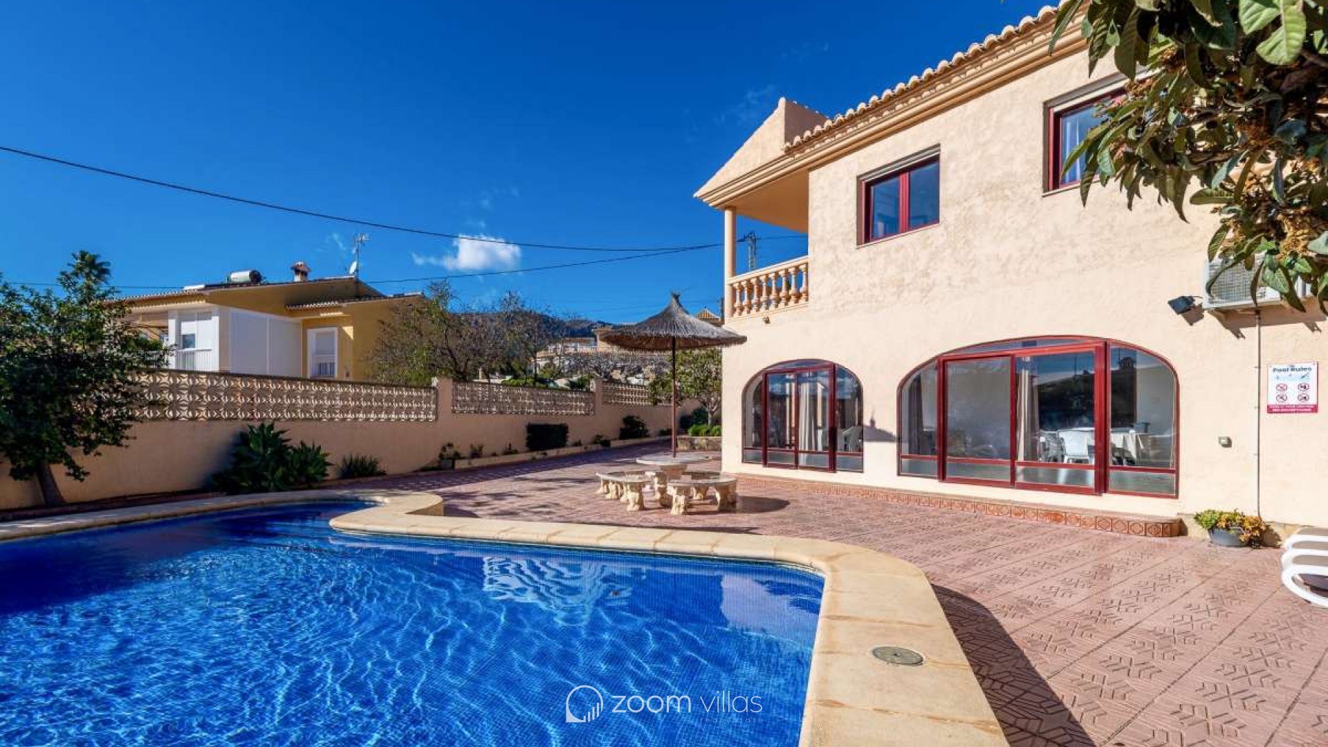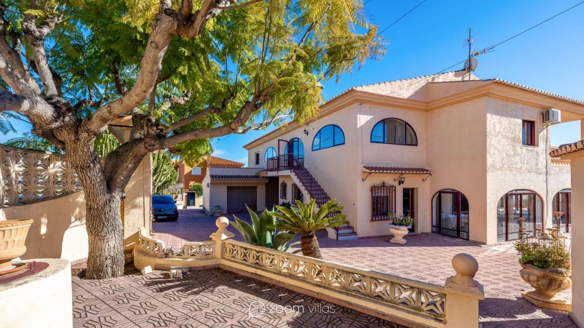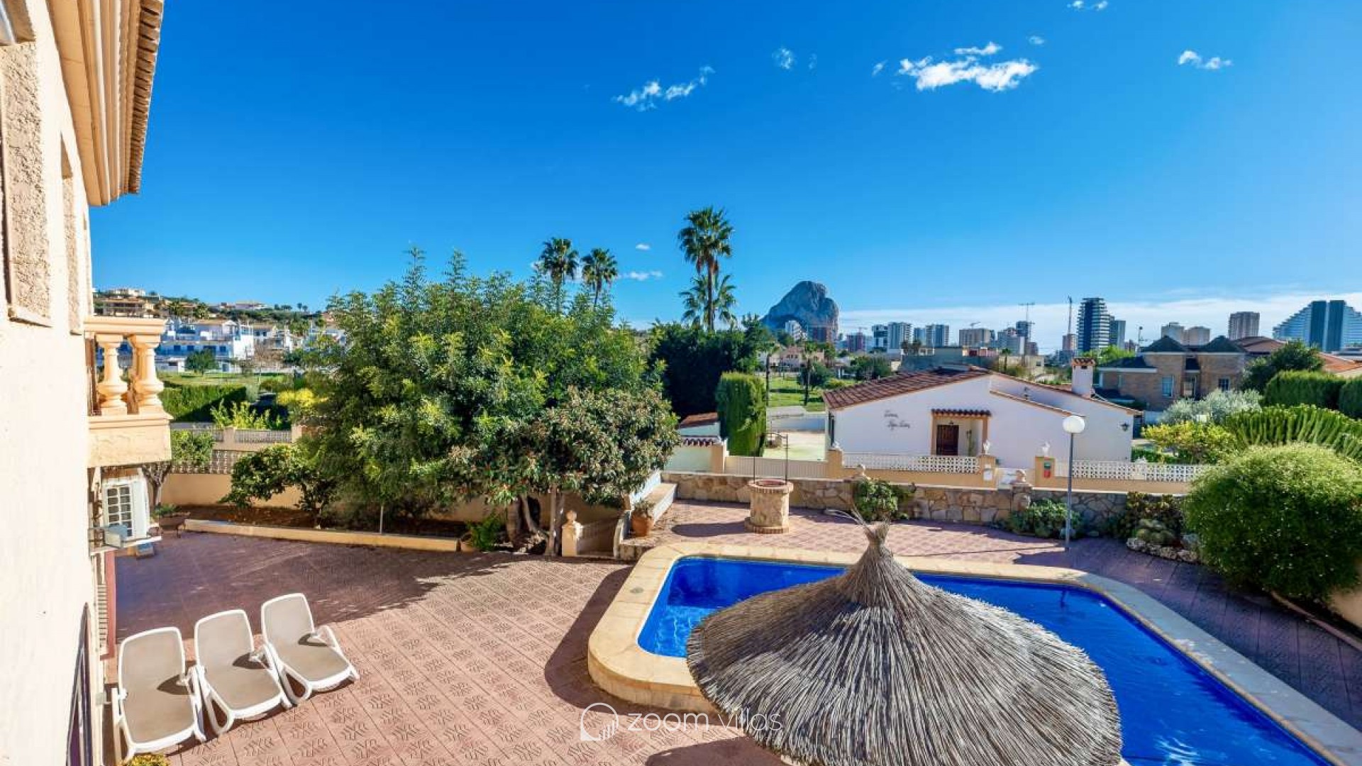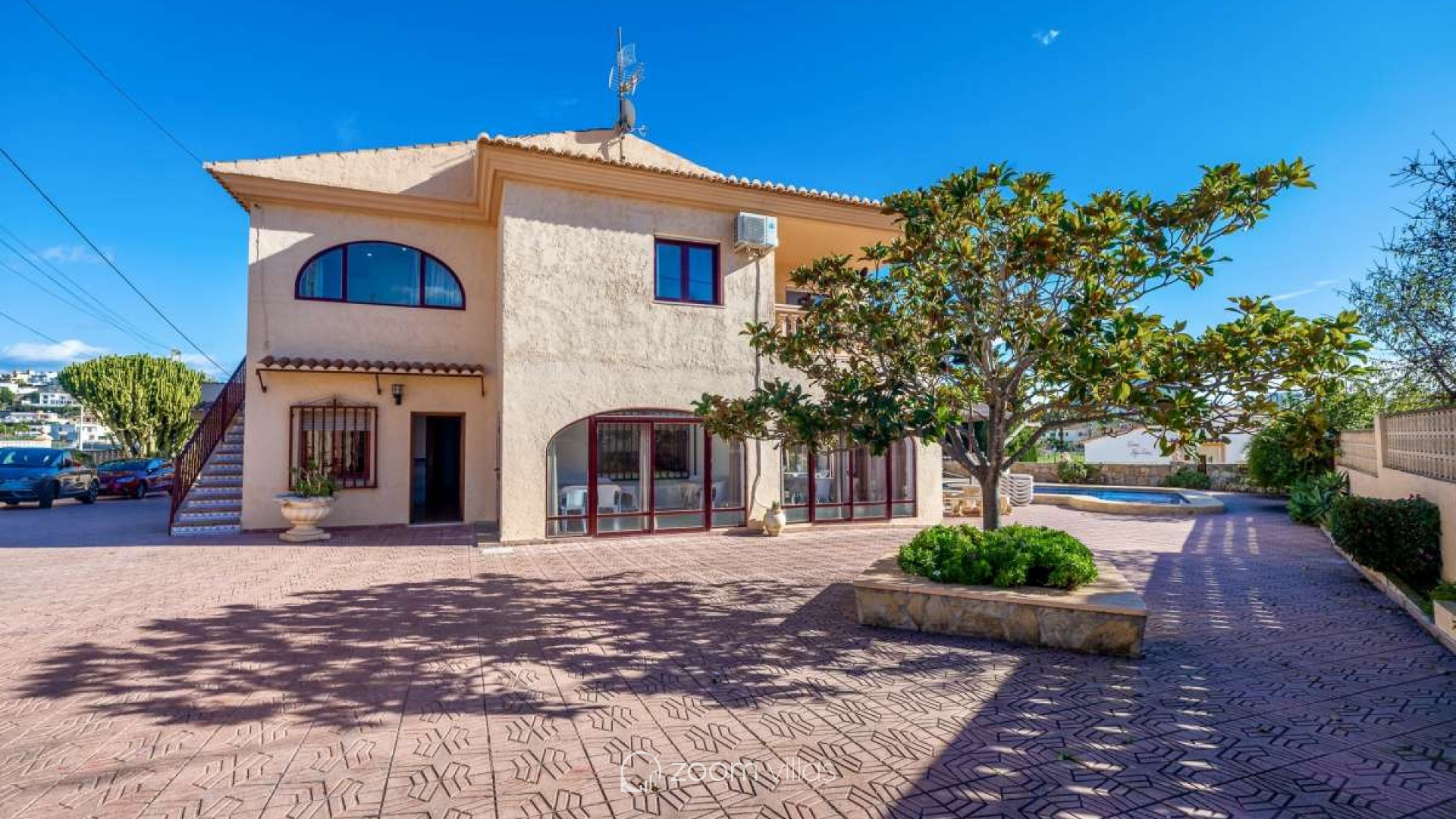 Surrounded by a peaceful residential atmosphere and bathed in natural light throughout the day, this exceptional villa offers open views over Calpe, the iconic Peñón de Ifach, and the surrounding mountains. Its strategic position provides easy access to schools, supermarkets, and the town center, making it ideal for both permanent living and investment.Built in 1985 on a generous 1,247 m² plot, the property features an impressive 611 m² constructed area and offers three completely independent entrances, making it perfect for large families, rental investment, or multi-generational living.✨ Touristic license included – a fantastic opportunity for holiday rentals and high profitability.Main FloorOn the main level, you will find a spacious living-dining room with air conditioning and direct access to a covered terrace and the spectacular swimming pool area. The independent kitchen also provides access to the garden.This floor includes:Four bedroomsOne full bathroom with bathtubCorridor with air conditioning All bedrooms offer comfort and privacy, making this level ideal for family living.Upper Floor – Two Independent ApartmentsApartment 1: A cozy living-dining room connected to a fully equipped separate kitchen.Three double bedroomsOne bedroom with twin bedsOne full bathroom with bathtubAir conditioning in the hallwayPrivate sunny terraceApartment 2: Features an elegant living-dining area and a fully equipped separate kitchen.Three double bedroomsOne bathroom with showerAdditional guest toiletAir conditioning in the hallwayPrivate sunny terraceOutdoor AreaThe exterior space is designed for true Mediterranean living:Rectangular 8x4 swimming pool with Roman stepsSummer kitchen with stone BBQ areaSpacious terraces perfect for outdoor dining and entertainingFully fenced plot ensuring privacyGarage and parking space for up to 6 vehiclesThis bright and versatile property combines comfort, privacy, and investment potential. With its touristic licence, it represents an excellent opportunity for holiday rentals while also being a perfect family home on the Costa Blanca.