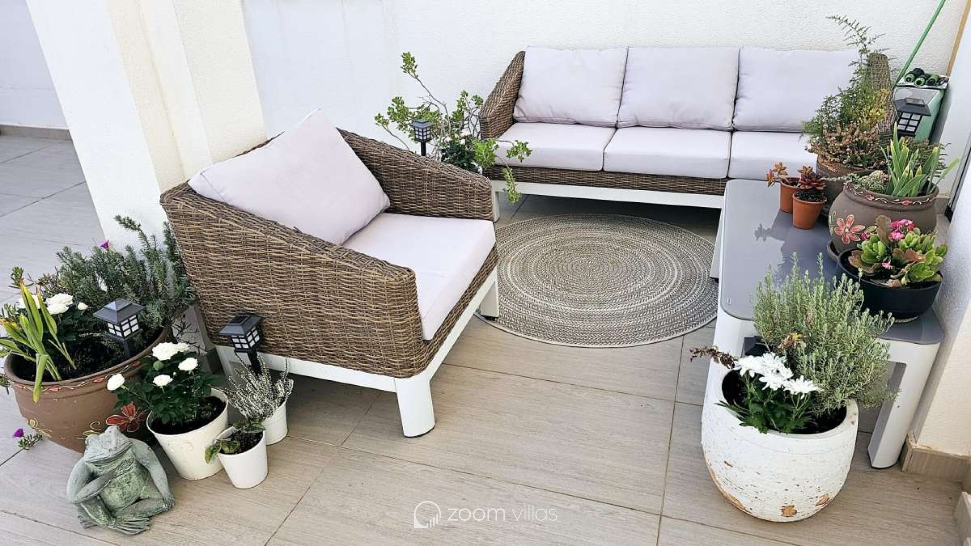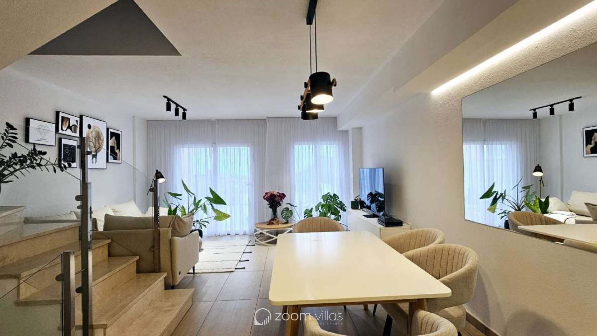 It has a total surface area of 200 m², distributed in 3 double bedrooms, 2 bathrooms, 1 toilet, kitchen, parking space for one car, reinforced door, air conditioning (hot/cold), south-east exposure, communal pool, chill out terrace with nice sea views, certification status: in process.
