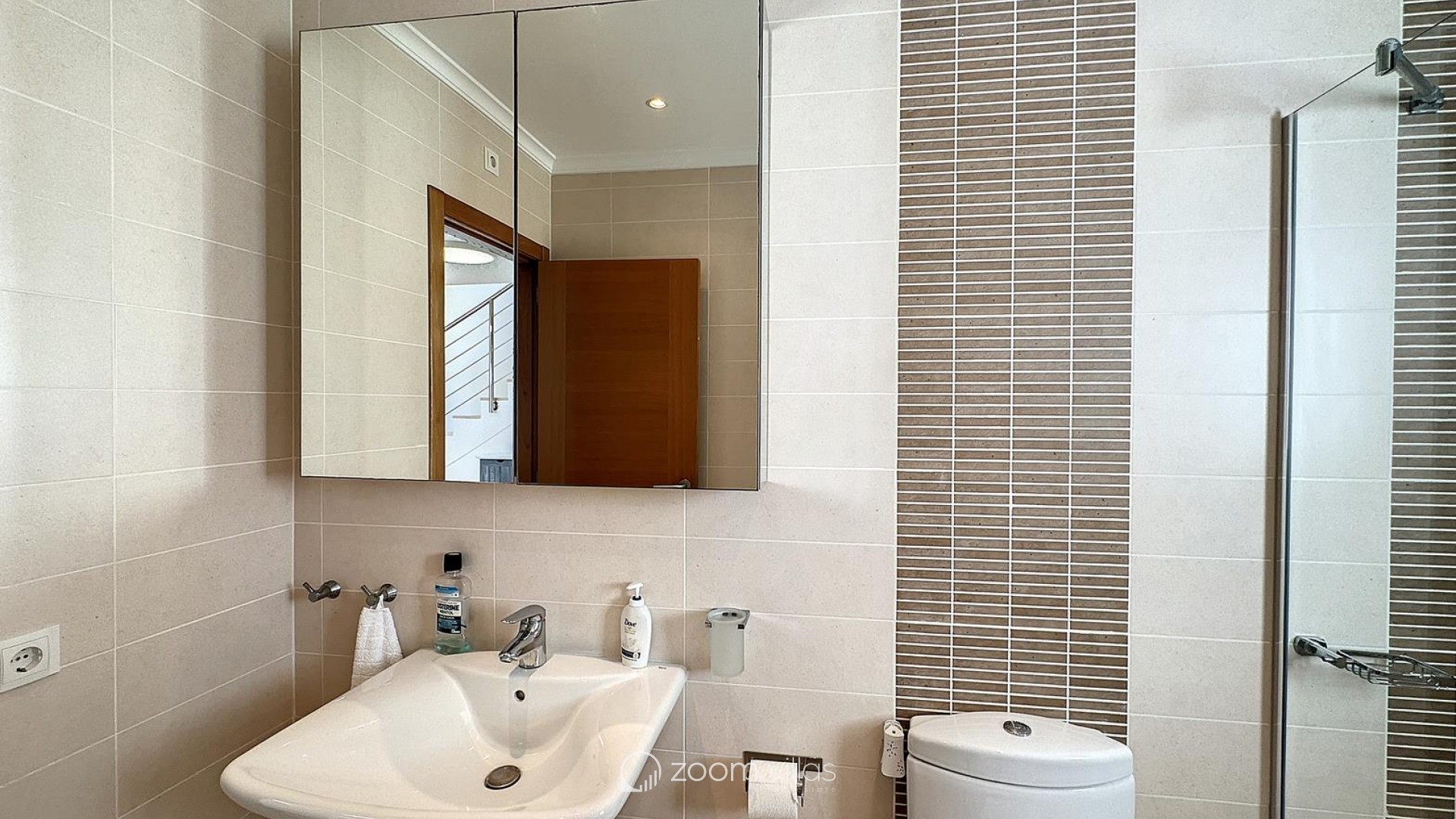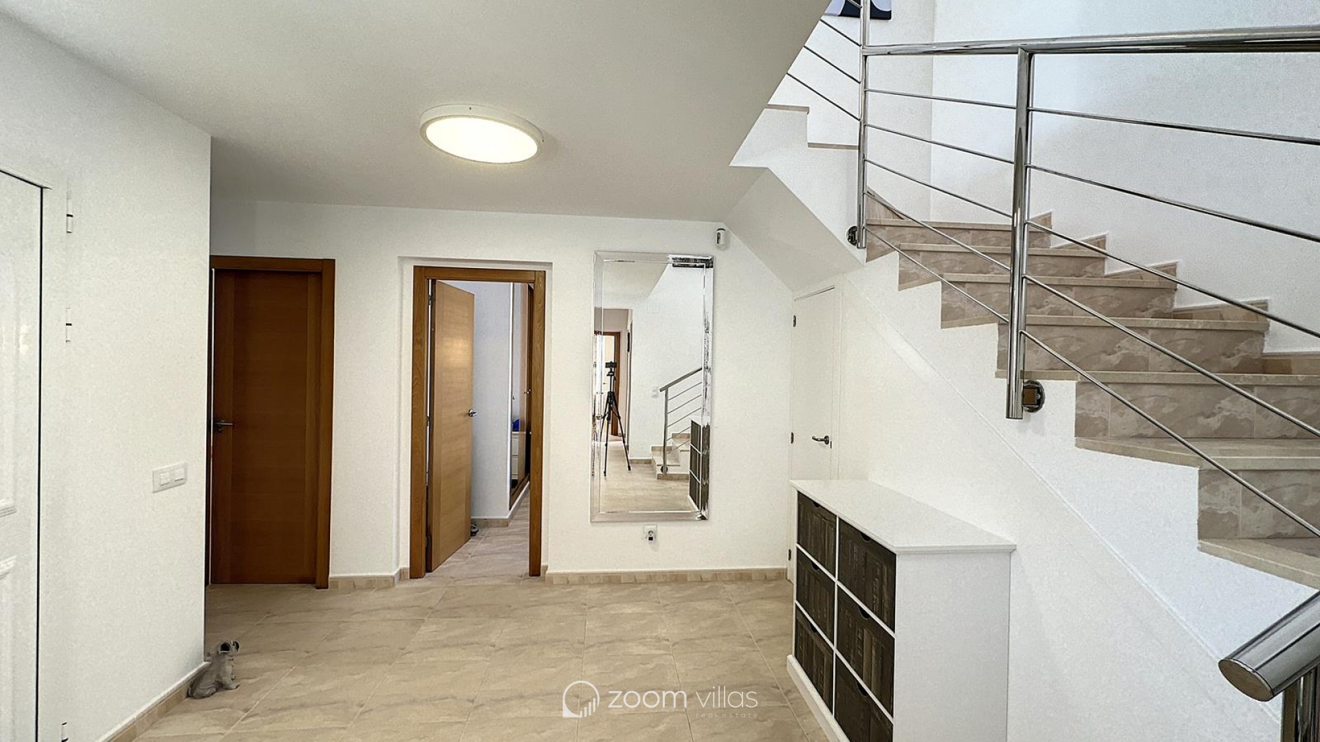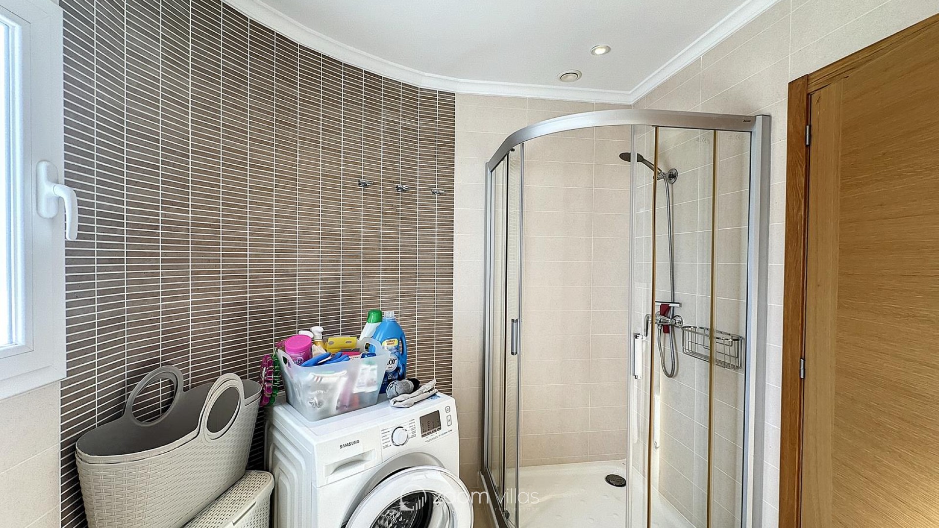 The interior offers five double bedrooms with fitted wardrobes, three full bathrooms and a guest toilet. The spacious living-dining room, with panoramic windows, connects to a modern open-plan kitchen, creating a comfortable and functional space perfect for everyday living.