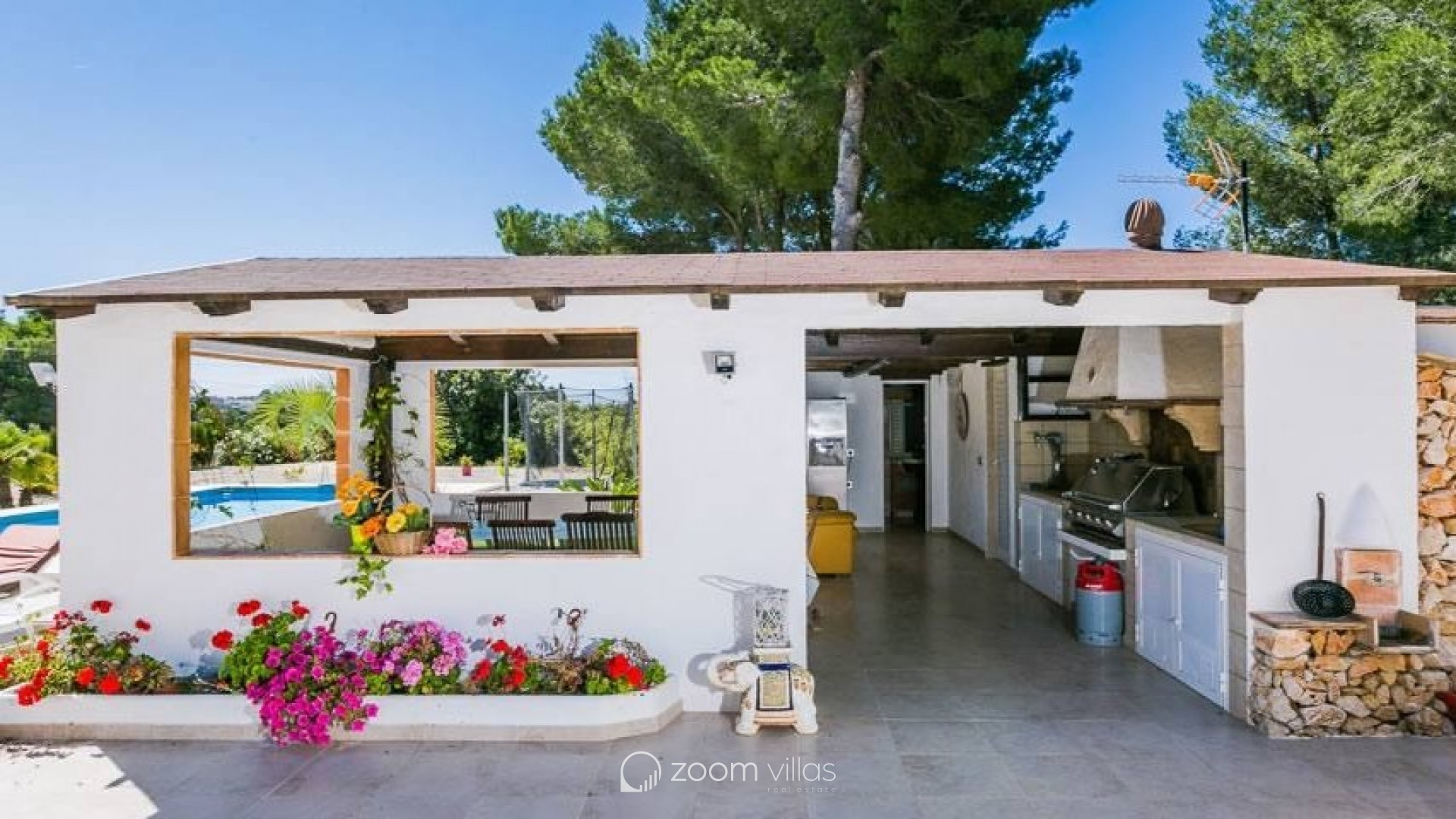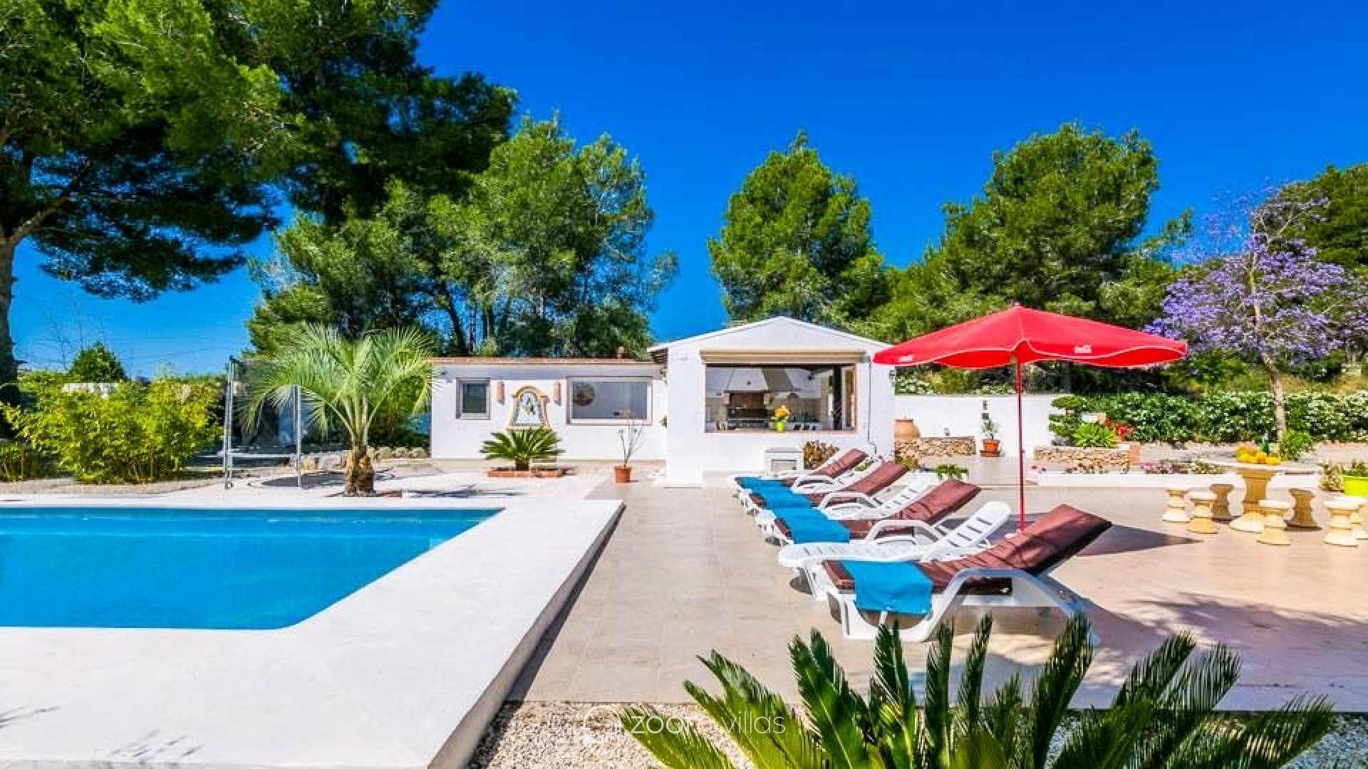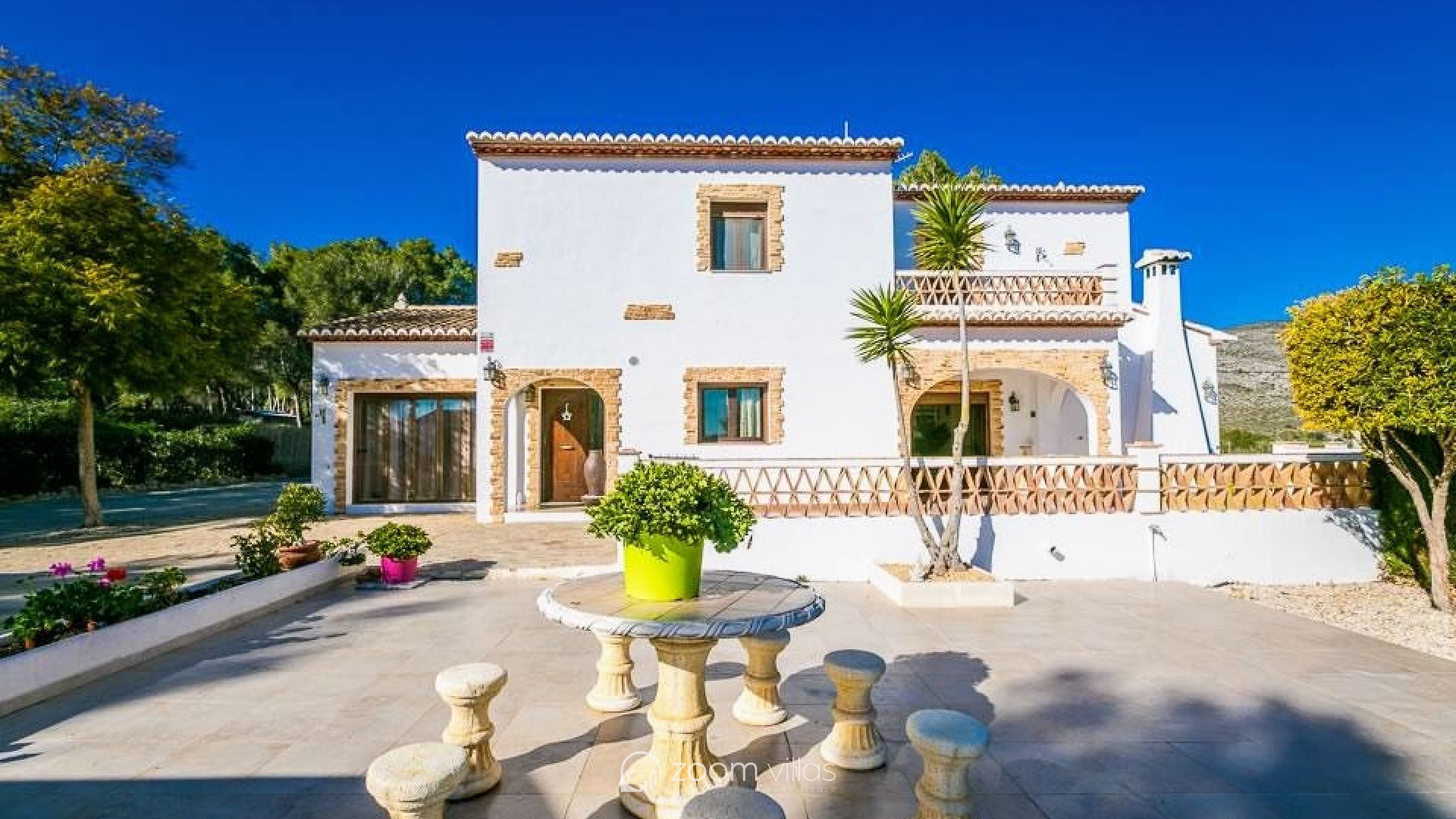 Charming rustic villa four-bedroom, three-bathroom located in Teulada. This stunning rustic finca is situated in the Canor area of Teulada, a peaceful location just 1.5 km from the town centre and approximately 7 km from Moraira. Built in 2005, the property enjoys a south-facing orientation with open views of the mountains and the picturesque village of Teulada. The 10,500 m² plot is flat and fully fenced. The 250 m² house is distributed over two floors. The ground floor features a spacious living-dining room with a fireplace, access to the terrace and pool area, a kitchen, a guest toilet, an office, and a small studio with its own kitchenette. The upper floor consists of three bedrooms, two bathrooms, including a master suite with a private bathroom, a large dressing room, and a balcony. The house is equipped with built-in wardrobes, central heating, air conditioning. Outside, there is a barbecue area with a wooden pergola, an outdoor toilet and shower, and a storage room. The property is surrounded by olive trees, almond trees, and vineyards, and the entrance has a modern automatic gate. Teulada is a charming town on Spain´s Costa Blanca, known for its rich history, stunning landscapes, and excellent Mediterranean climate. The nearby town of Moraira offers beautiful beaches, a marina, and a wide selection of fine dining restaurants, making it an ideal location for those seeking tranquillity without compromising on modern conveniences. Why we love this property: We absolutely love this property for its perfect balance of rustic charm and modern comfort. The spacious interiors, beautiful mountain views, and serene surroundings make it the perfect retreat. With its stunning outdoor spaces, including a poolside terrace and a charming barbecue area, this villa is ideal for enjoying the Mediterranean lifestyle. Whether you are looking for a family home or a holiday getaway, this finca has it all!