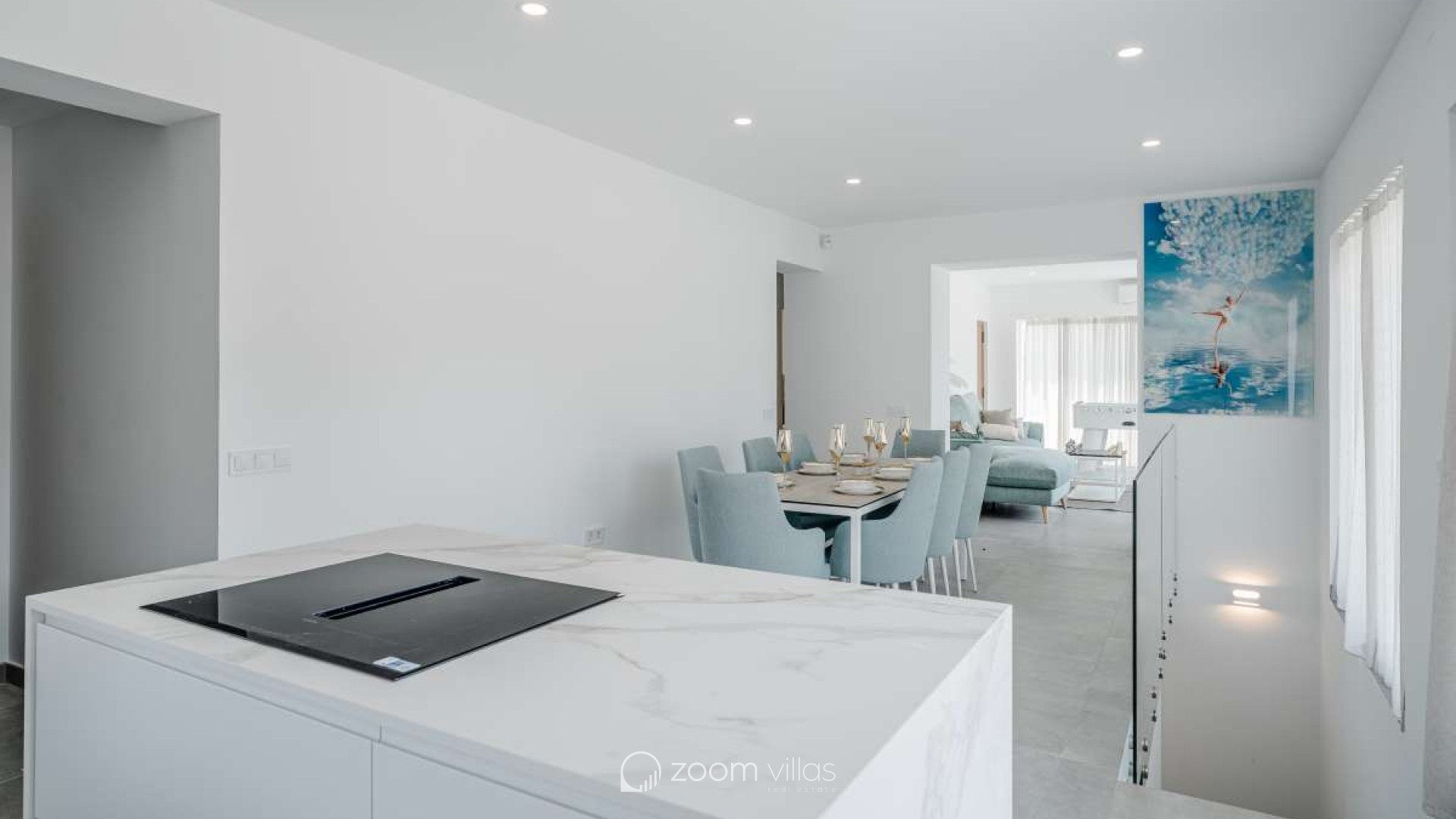 Imagine your life in this Mediterranean villa, fully furnished and decorated, ready for you to move in. Its the perfect setting for an unforgettable vacation or your dream home.br>br> Located just steps from the idyllic Puerto Blanco Beach and the new Marina Port Blanc in Calpe, youll enjoy the tranquility of the Mediterranean Sea and an exceptional setting. From its terrace and porch, the stunning sea and mountain views will invite you to relax in the large pool or enjoy a barbecue with your loved ones.br>br> The villa offers spaces designed for enjoyment: a living room with a foosball table ideal for all ages, a modern open kitchen with an island, and a dining table for eight, all with direct access to the terrace. The main floor features two bedrooms and a spacious bathroom. Downstairs, youll find a spacious suite with direct access to the pool, as well as another bedroom and bathroom.br>br> Ample parking with a shaded area for your comfort and private outdoor parking for your visitors.br>br> Dont think twice. This villa is the ideal place to create lasting memories. Plus, if youre looking for an investment, it comes with a tourist license, ready to generate income.br>br> Contact us today for more information and to schedule your visit!