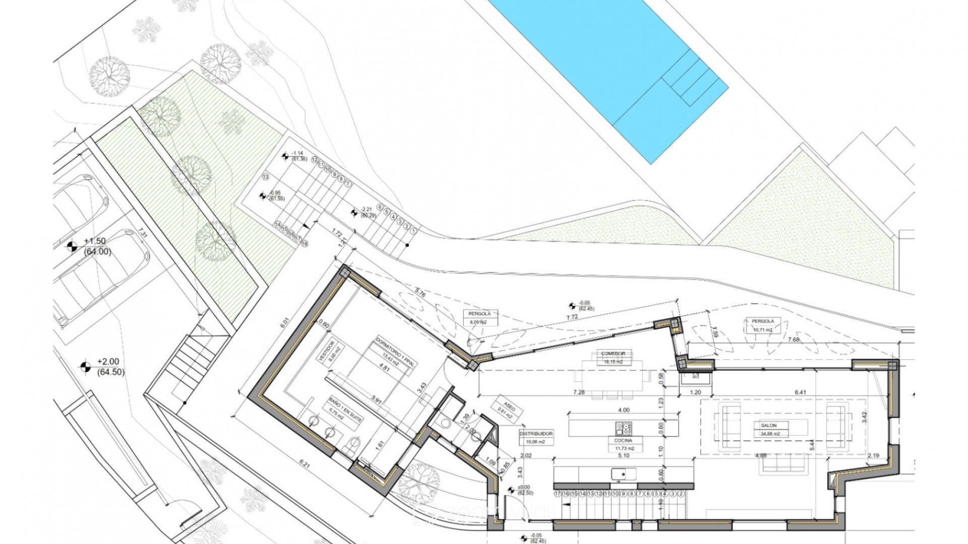 Located in a coveted residential area of Jávea, this spectacular contemporary-style villa is currently under construction and will be ready for occupancy in 2026. With an architectural design that combines clean lines and elegant curves with high-quality materials, this property represents a perfect fusion of modernity, comfort, and exclusivity. Future owners will have the unique opportunity to customize several key finishes to their liking, thus creating a truly bespoke home. From its elevated position, the villa offers stunning open views that extend from the green hills to the Mediterranean Sea. On the main floor, there is a spacious and bright living-dining room with an integrated kitchen, a guest toilet, and a spacious master suite with a private bathroom. The lower floor, with direct access to the garden, houses two additional bedrooms, a full bathroom, a laundry room, and a flexible space that can be converted into a fourth bedroom with an en-suite bathroom. The outdoor areas have been designed to fully enjoy the Mediterranean climate: a large covered terrace with a barbecue area, a designer pool with wide steps and nighttime lighting, and a terraced garden adorned with native flora and natural stone walls. The entire plot is completely fenced for greater privacy and security. As for amenities, the villa will feature a fully equipped high-end kitchen, a radiant floor heating system powered by a heat pump with solar support, air conditioning in all rooms, a charging point for electric vehicles, smart lighting, an alarm system, and video surveillance. The property is accessed via an elegant double garage with an electric gate or directly from the street through the main entrance. Situated just 5 minutes from Arenal beach and 10 minutes from a prestigious international school, this villa combines privacy, accessibility, and lifestyle. With easy connections to Alicante (1 hour) and Valencia (1 hour and 20 minutes), it is an ideal option both as a permanent residence and as a luxury investment. An exceptional opportunity to acquire a modern, sustainable, and fully customizable villa in one of the most exclusive locations on the Costa Blanca.