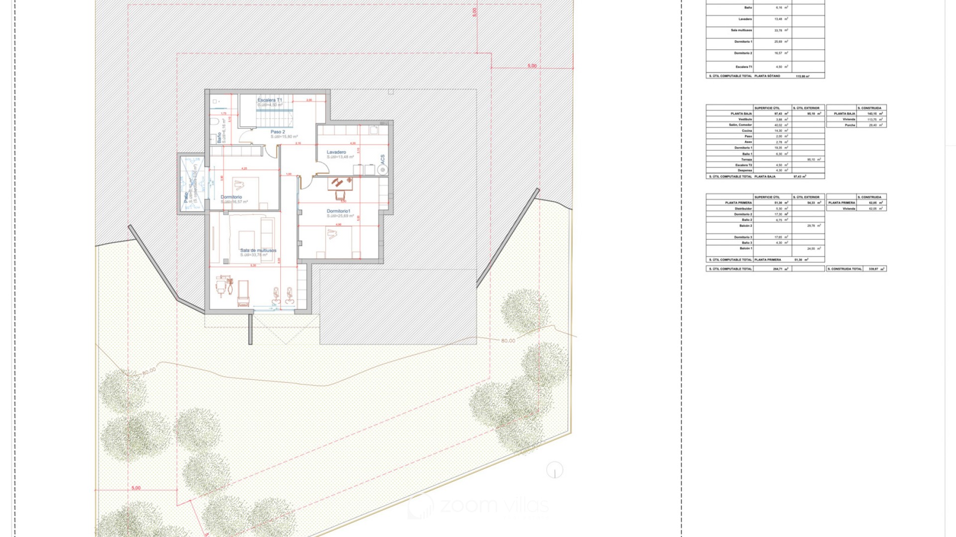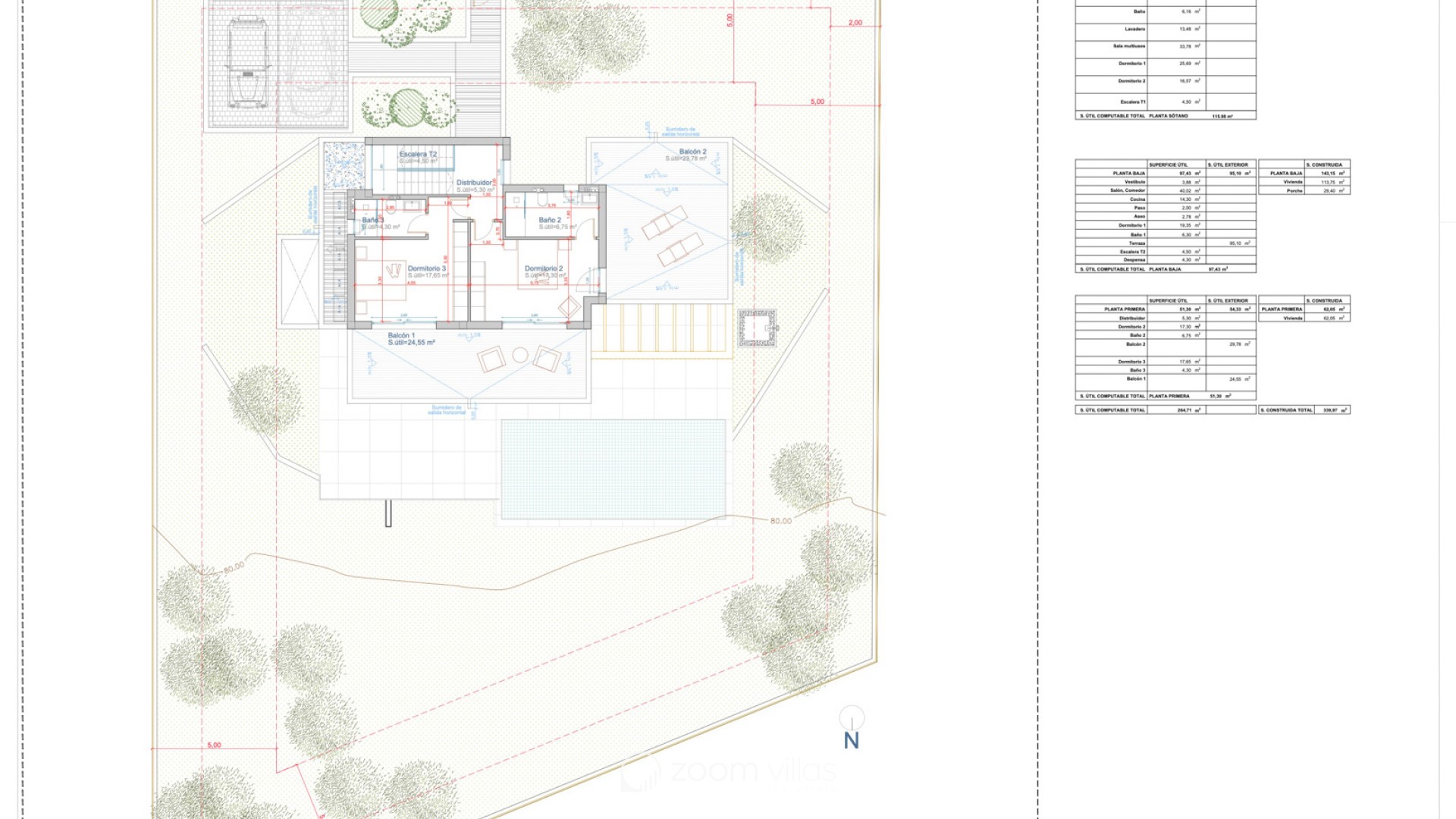 The first floor offers two spacious bedrooms, both with access to a large balcony, and two bathrooms. Thanks to the generous outdoor spaces and large windows, the villa enjoys plenty of natural light and privacy.