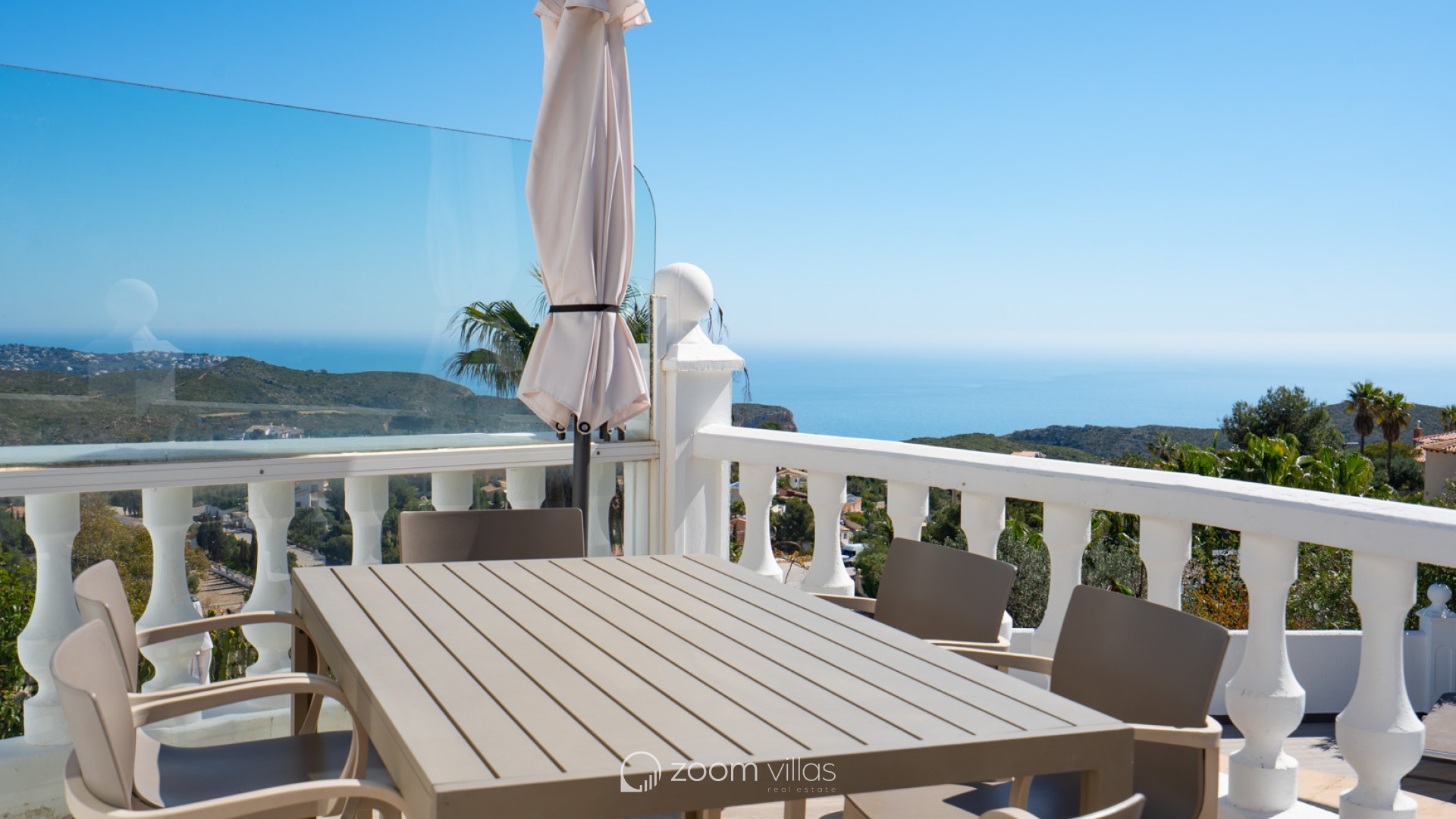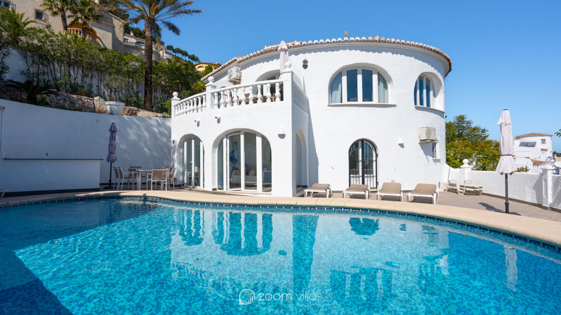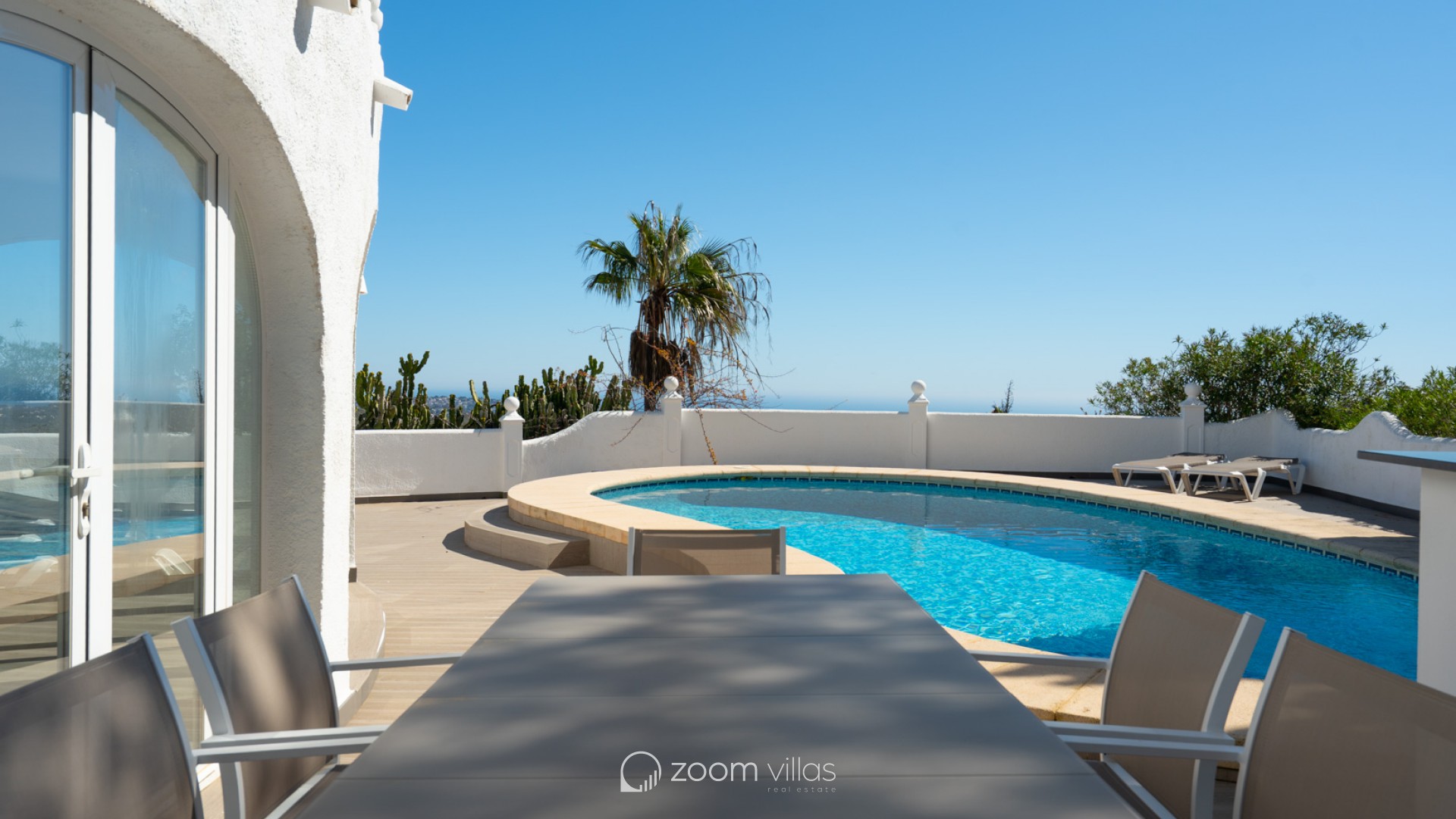 Beautiful traditional villa with panoramic sea views for sale in Cumbre del Sol This villa is located in the peaceful urbanisation of Cumbre del Sol and offers breathtaking views over the Granadella Natural Park, the impressive cliffs of Cumbre del Sol and the Mediterranean Sea. The property is distributed over two floors. The upper floor consists of a spacious living-dining room with fireplace and a fully equipped semi-open kitchen. From the living room there is access to a south-facing terrace, ideal for outdoor dining all year round. This level also features a spacious double bedroom and a bathroom. The lower floor hosts the master bedroom with en-suite bathroom and two double bedrooms sharing a bathroom. There is also a glazed naya with direct access to the swimming pool. The heated pool is surrounded by a spacious sun terrace with outdoor kitchen, perfect for enjoying the Mediterranean climate. The villa is further equipped with central heating via radiators, air conditioning in all rooms, shutters, solar panels for hot water and private parking. Cumbre del Sol is known for its peaceful surroundings, beautiful nature and excellent amenities, including an international school, supermarket and several restaurants. The villa is conveniently located just approx. 10 minutes from Moraira and Jávea, and a short distance from beaches and all necessary facilities.