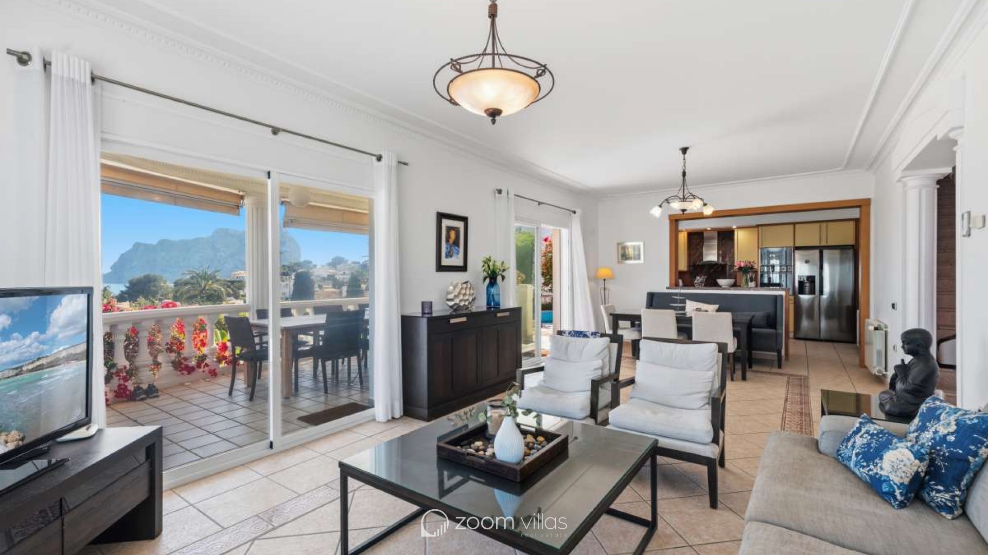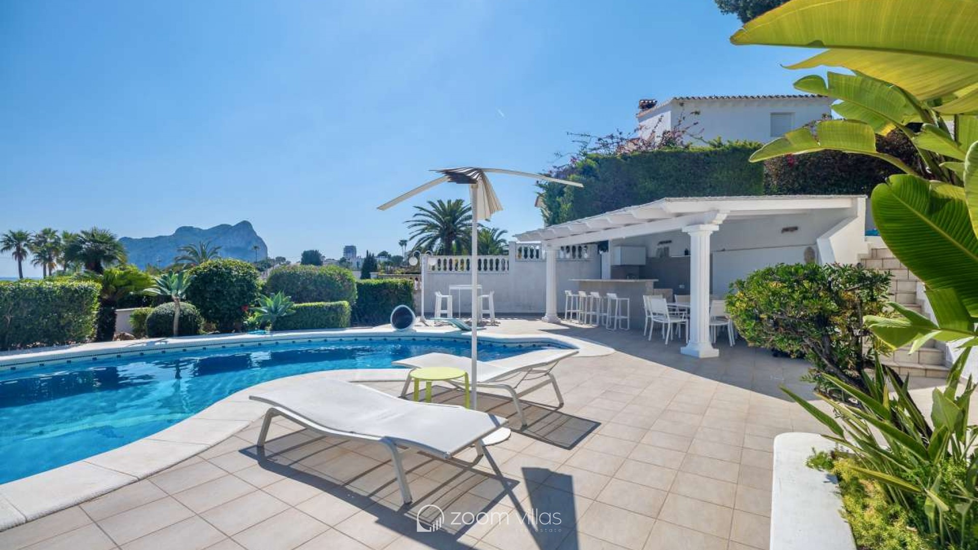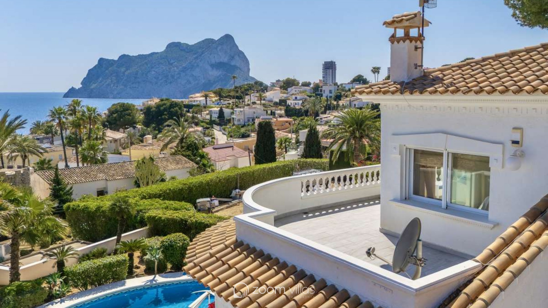 Located in a peaceful and elevated residential area of Calpe, this charming villa offers beautiful open views of the sea, the iconic Peñón de Ifach, and the town. The area is known for its tranquility and privacy, while still being just a short drive from beaches, supermarkets, restaurants, and the vibrant town center. This makes the property ideal both for permanent living and as a holiday home or rental investment.Built in 1999 on a plot of 937 m², the villa offers a total constructed area of 243 m² and is distributed over three levels, providing flexibility and excellent rental potential.The outdoor spaces are designed for enjoying the Mediterranean lifestyle, featuring a private chlorine swimming pool with sea views, several chill-out areas perfect for sunbathing and relaxing, a summer kitchen, and an outdoor shower.The main floor includes a bright living room with an open-plan kitchen and direct access to a terrace with stunning views of the sea, Calpe, and the Peñón de Ifach. From here, you can easily access the pool area and summer kitchen. This level also offers two bedrooms and a shared bathroom.The upper floor is dedicated to the master suite, featuring a private bathroom and a large terrace with panoramic views — an ideal space to enjoy sunrise and sunset over the Mediterranean.The lower level offers a separate living area with its own independent entrance, including three bedrooms, one bathroom, a storage room, and a chill-out area. This space can be used for guests or as a rental unit, while still being connected to the main house by internal stairs.The property is equipped with a gas heating system with radiators, ensuring comfort throughout the year. It also includes a private garage and additional parking space.This villa combines views, privacy, and versatility, making it a perfect choice for those looking for a comfortable home with strong rental potential in one of the most desirable areas of the Costa Blanca.
